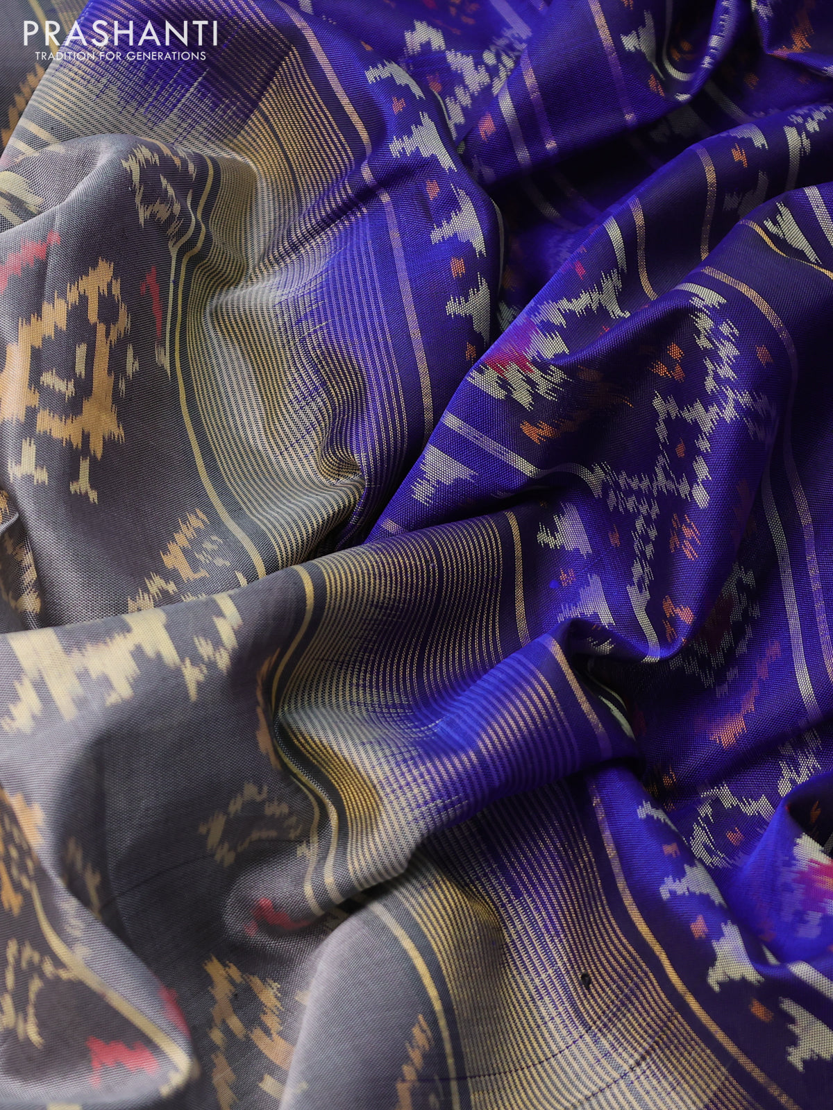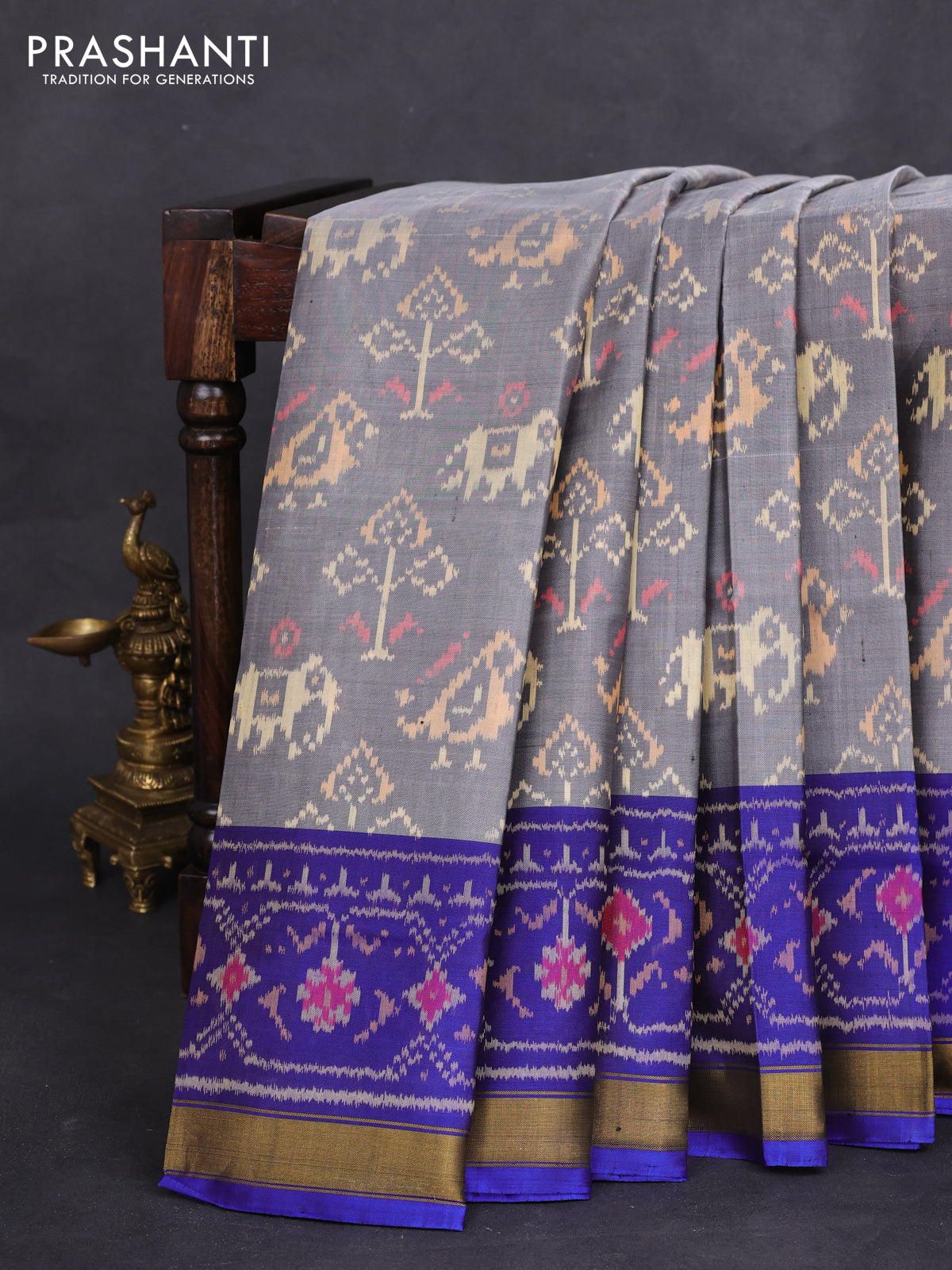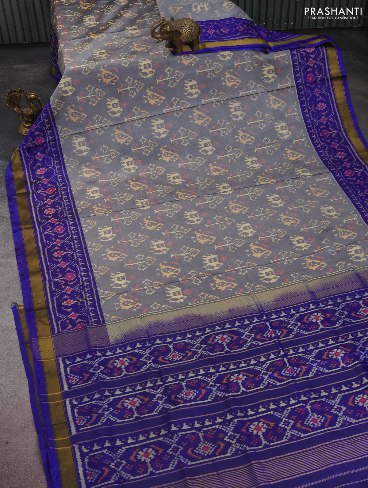 Rajkot patola silk saree grey and blue with allover ikat weaves and zari woven border