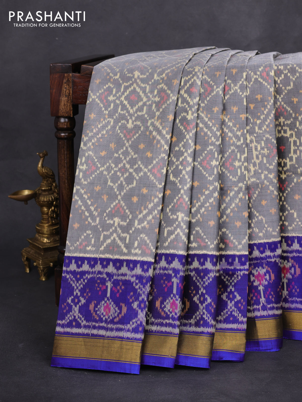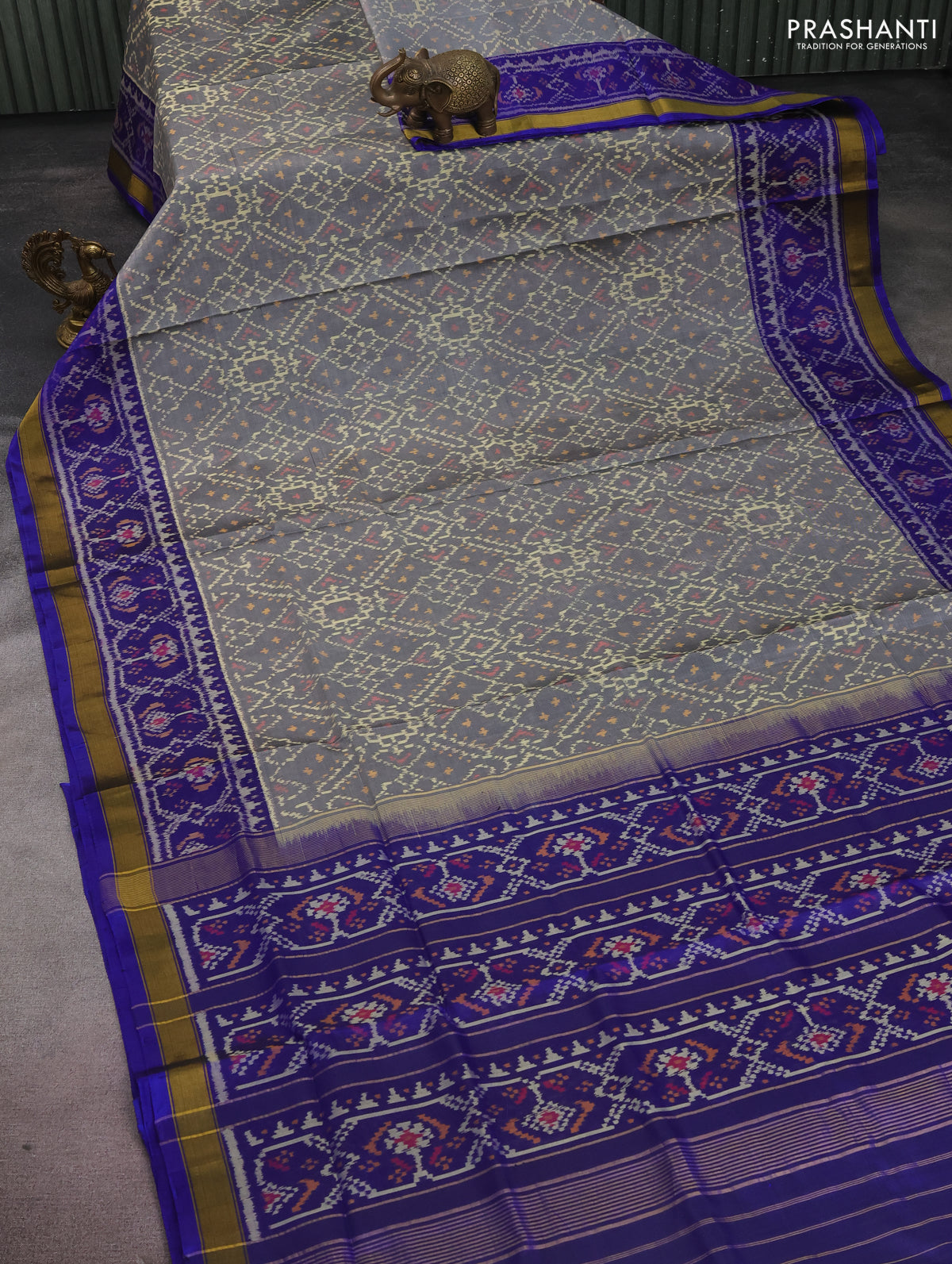 Rajkot patola silk saree grey and blue with allover ikat weaves and zari woven border