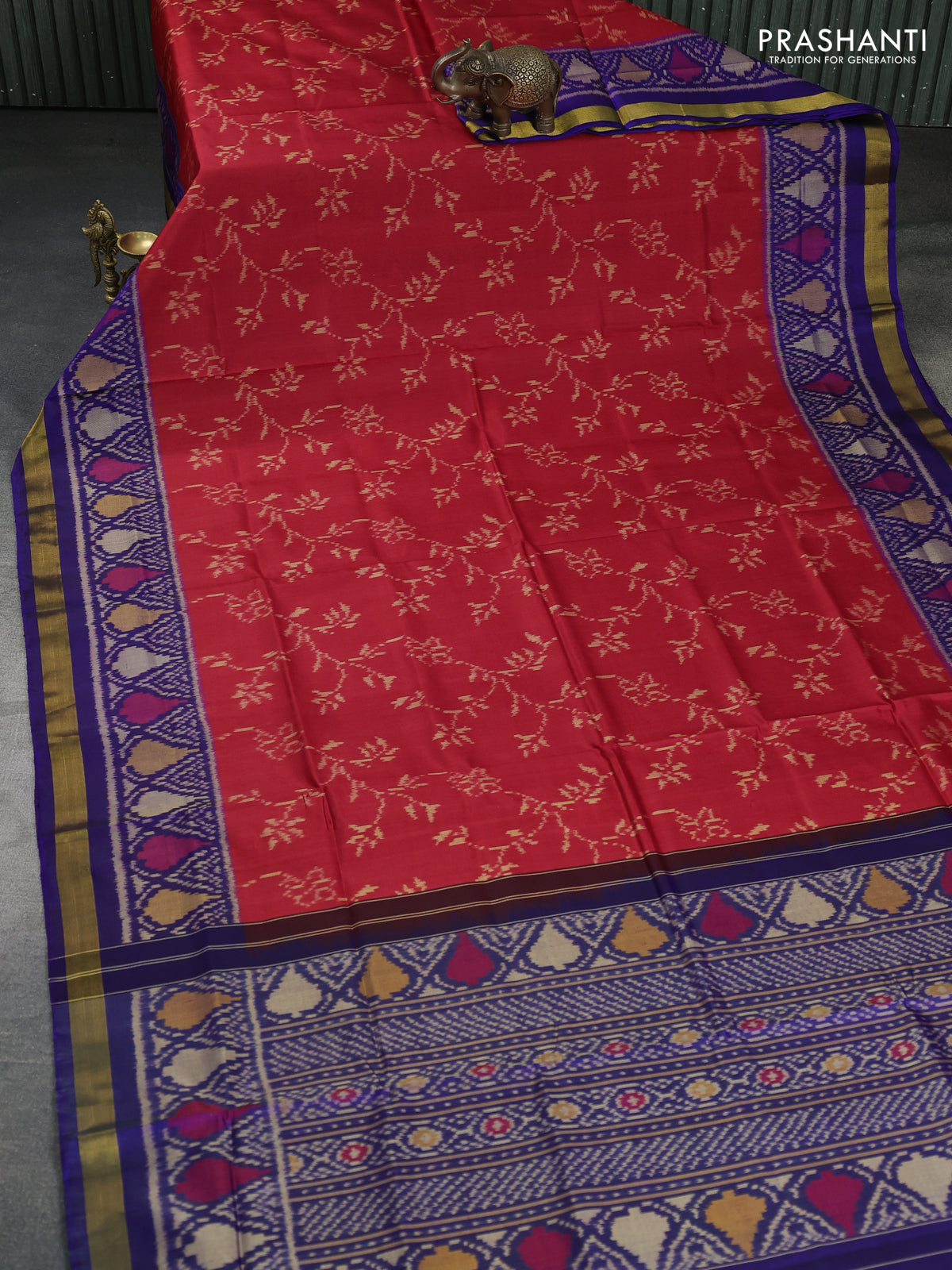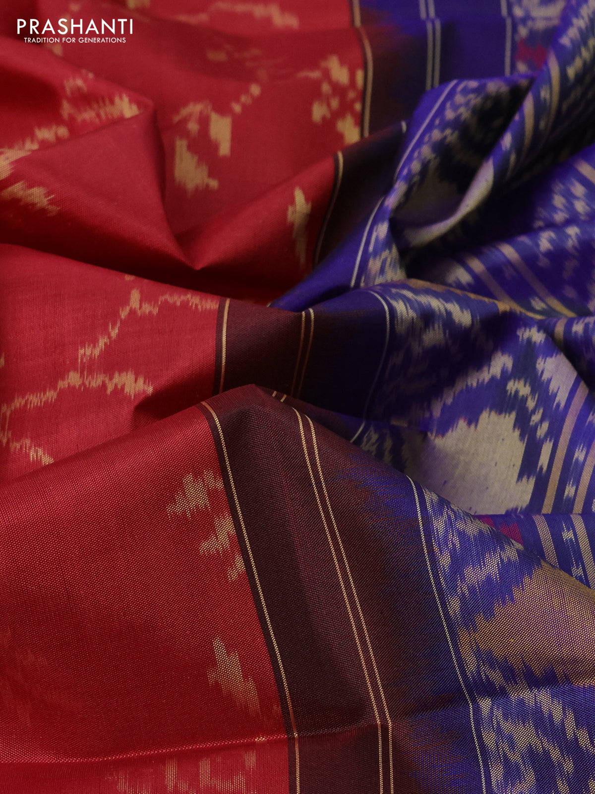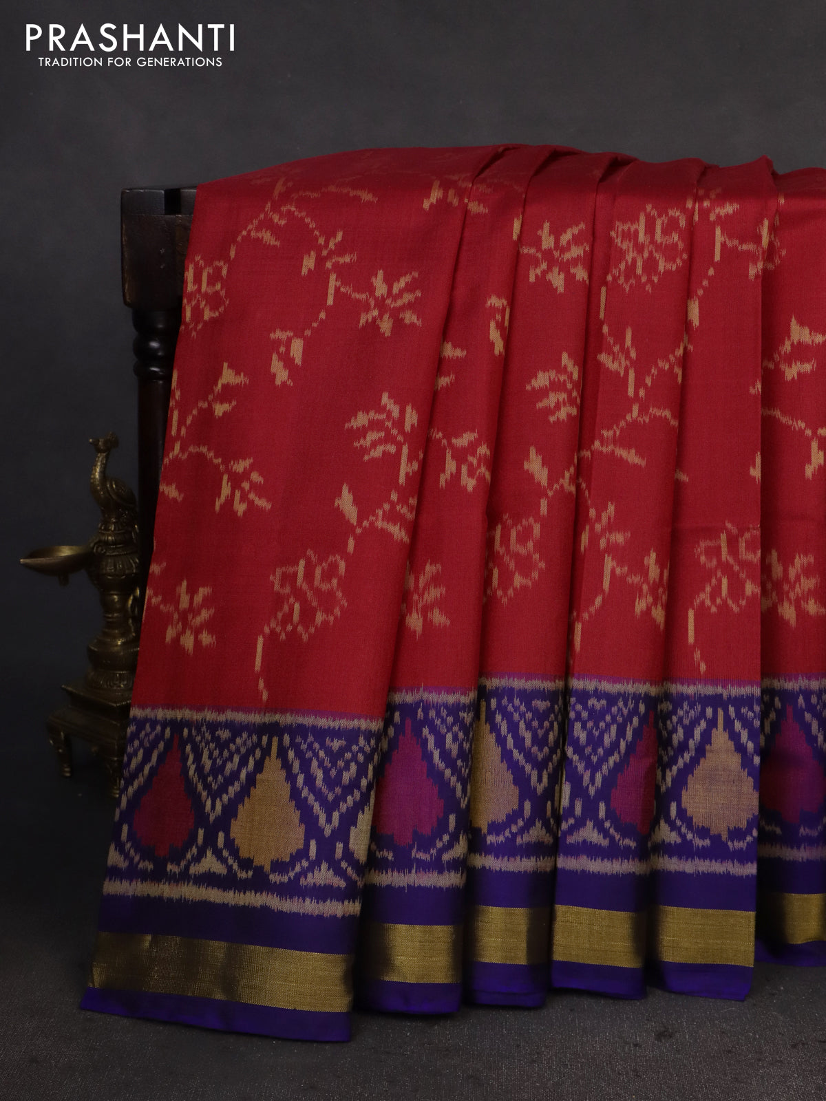 Rajkot patola silk saree maroon and blue with allover ikat weaves and ikat woven zari border