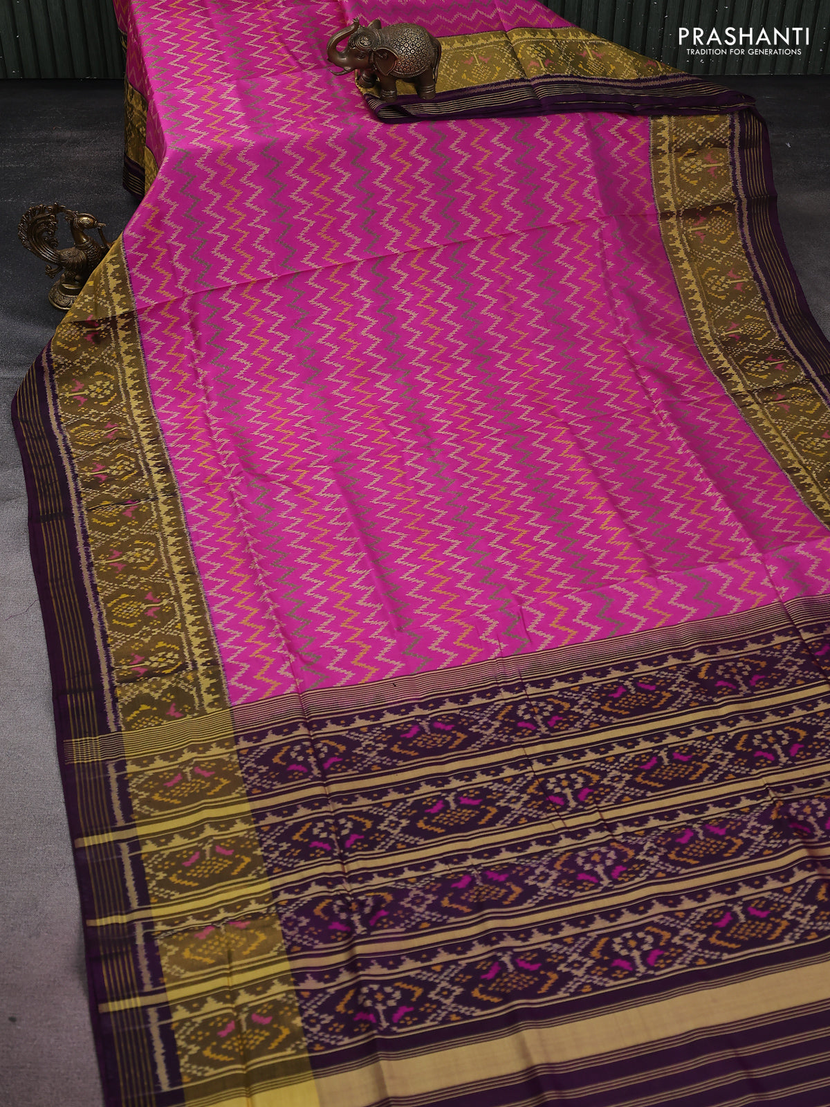 Rajkot patola silk saree pink and deep purple with allover ikat weaves and long zari woven border