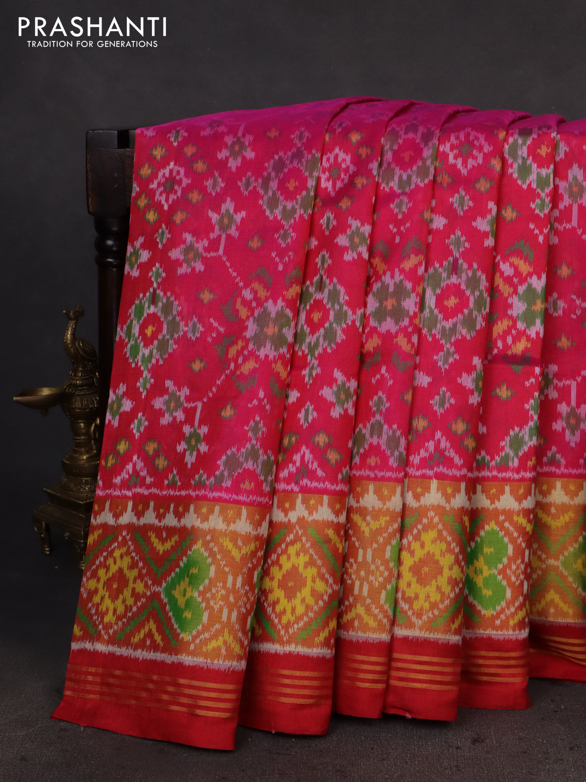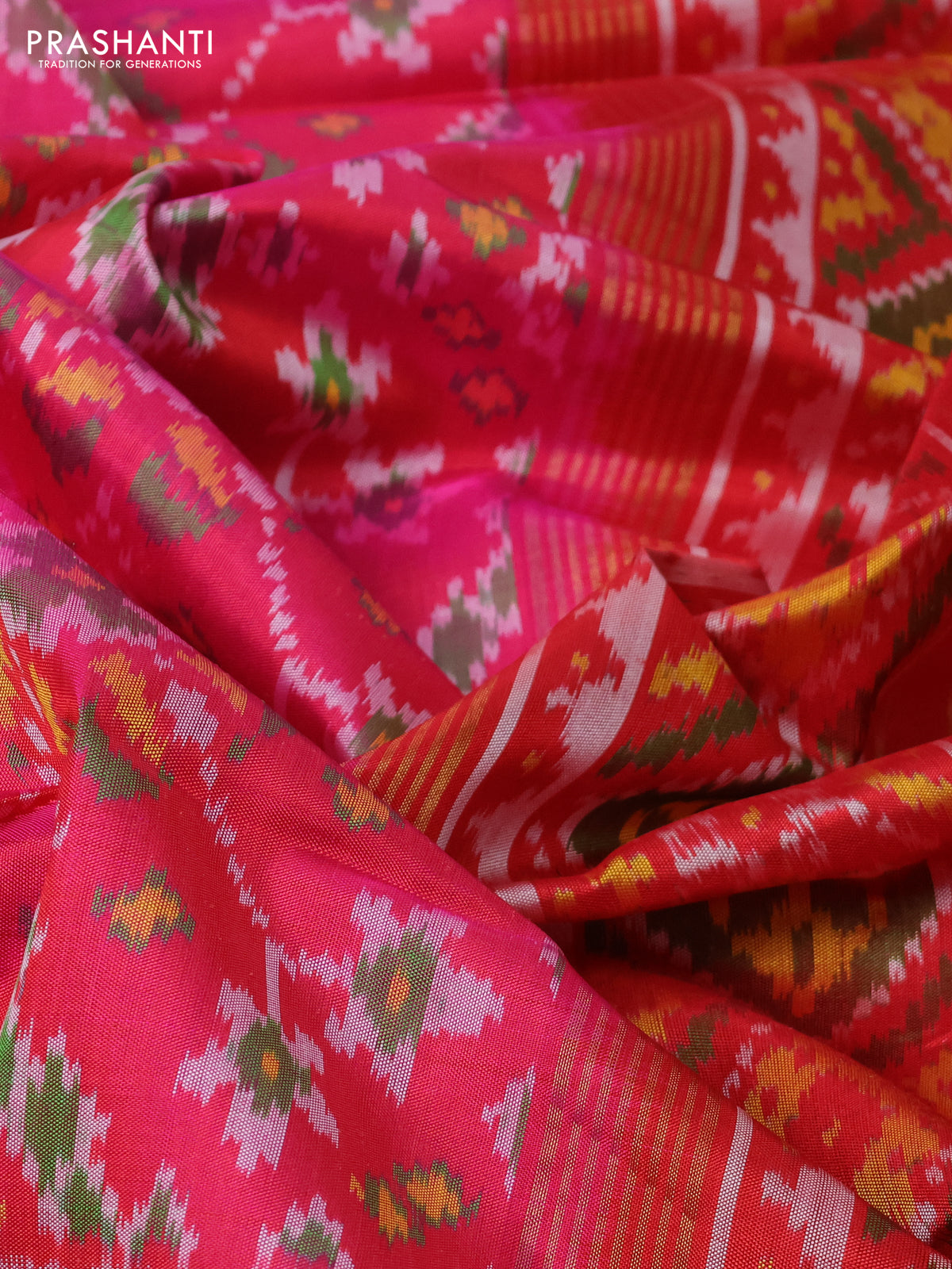 Rajkot patola silk saree pink and red with allover ikat weaves and ikat woven zari border