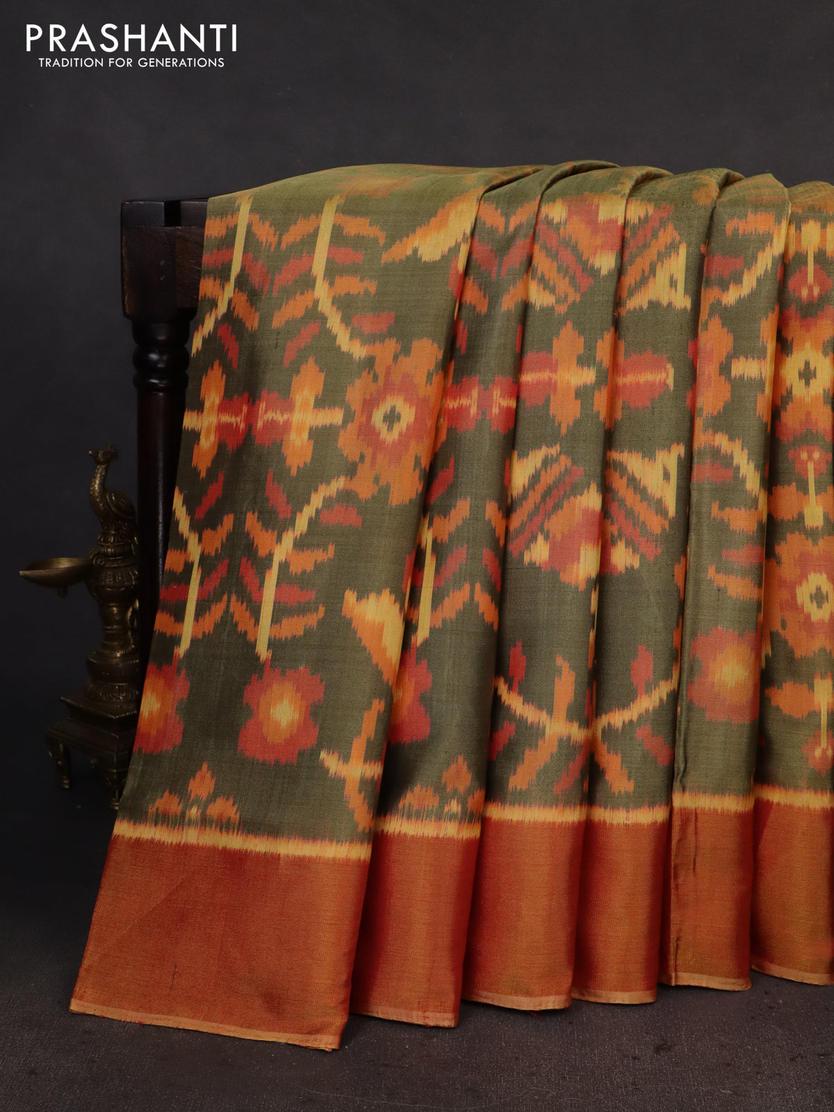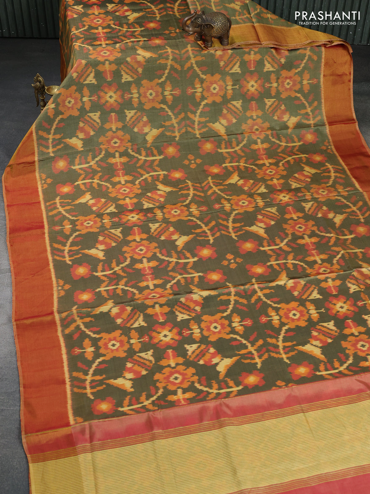 Rajkot patola silk saree sap green shade and pink shade with allover ikat weaves and zari woven border