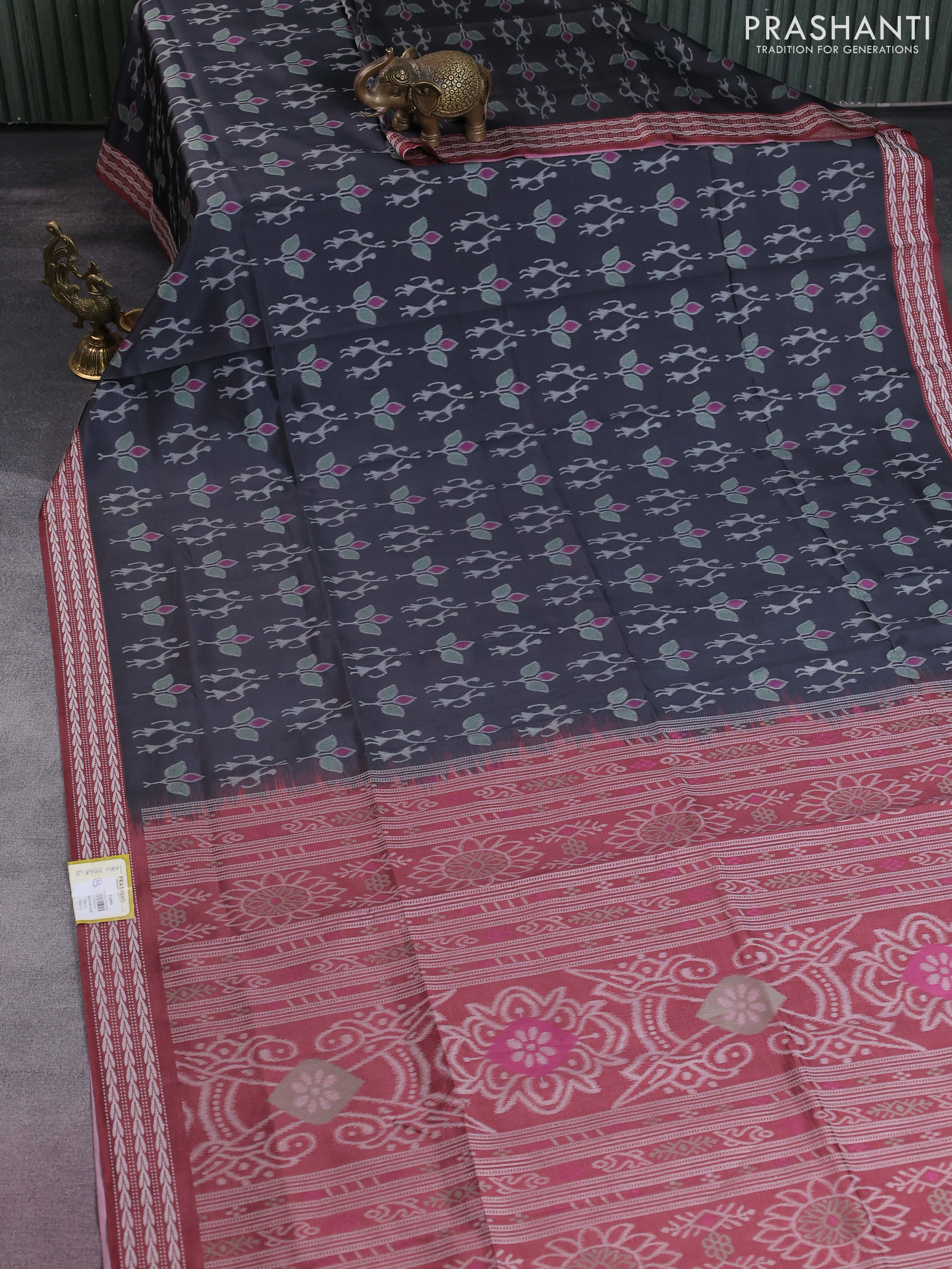 Sambalpuri semi silk saree black and brown with allover ikat weaves and thread woven border