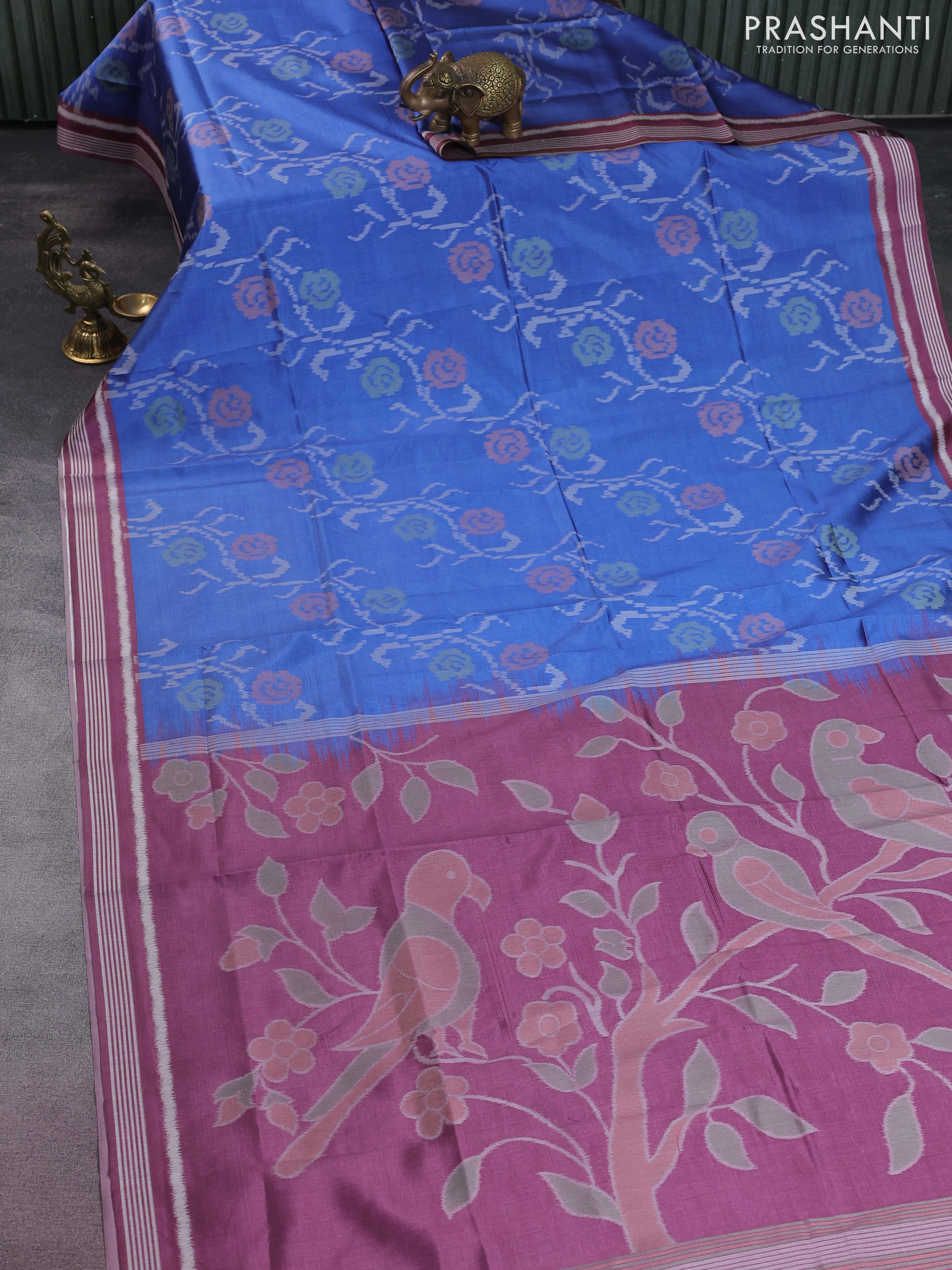 Sambalpuri semi silk saree blue and mauve pink with allover ikat weaves and thread woven border