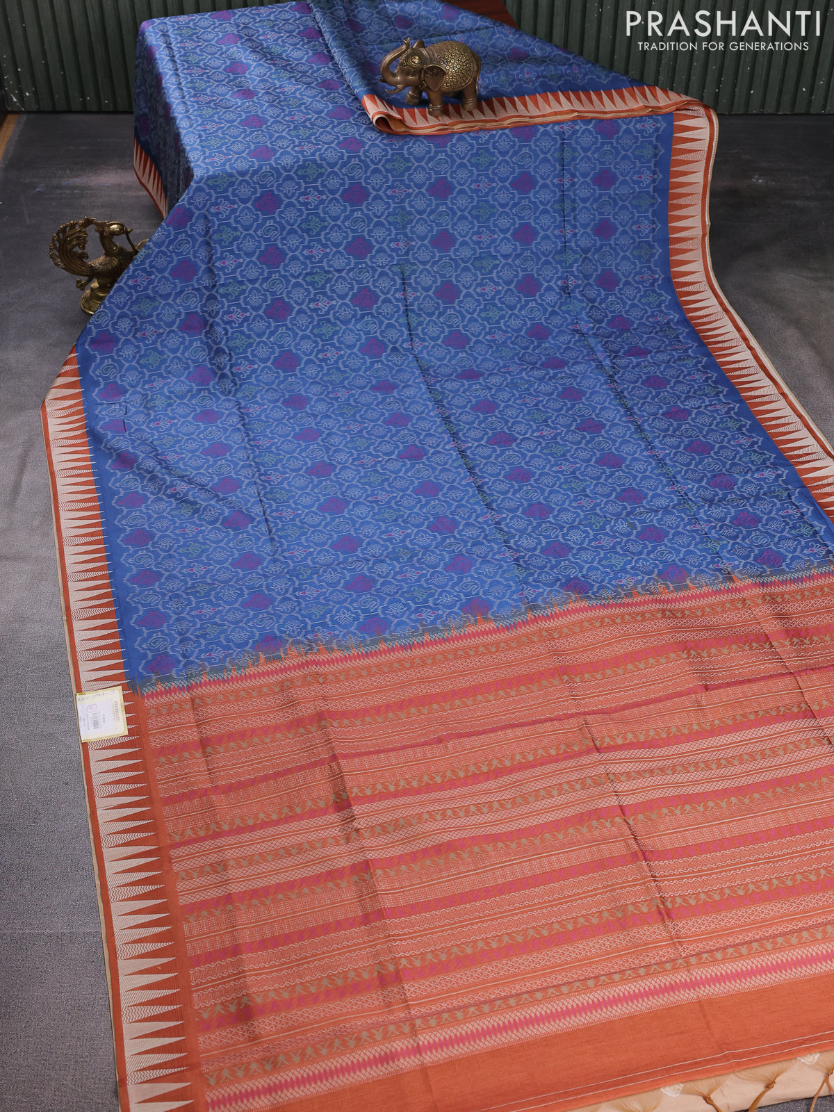 Sambalpuri semi silk saree blue and orange with allover ikat weaves and thread woven border