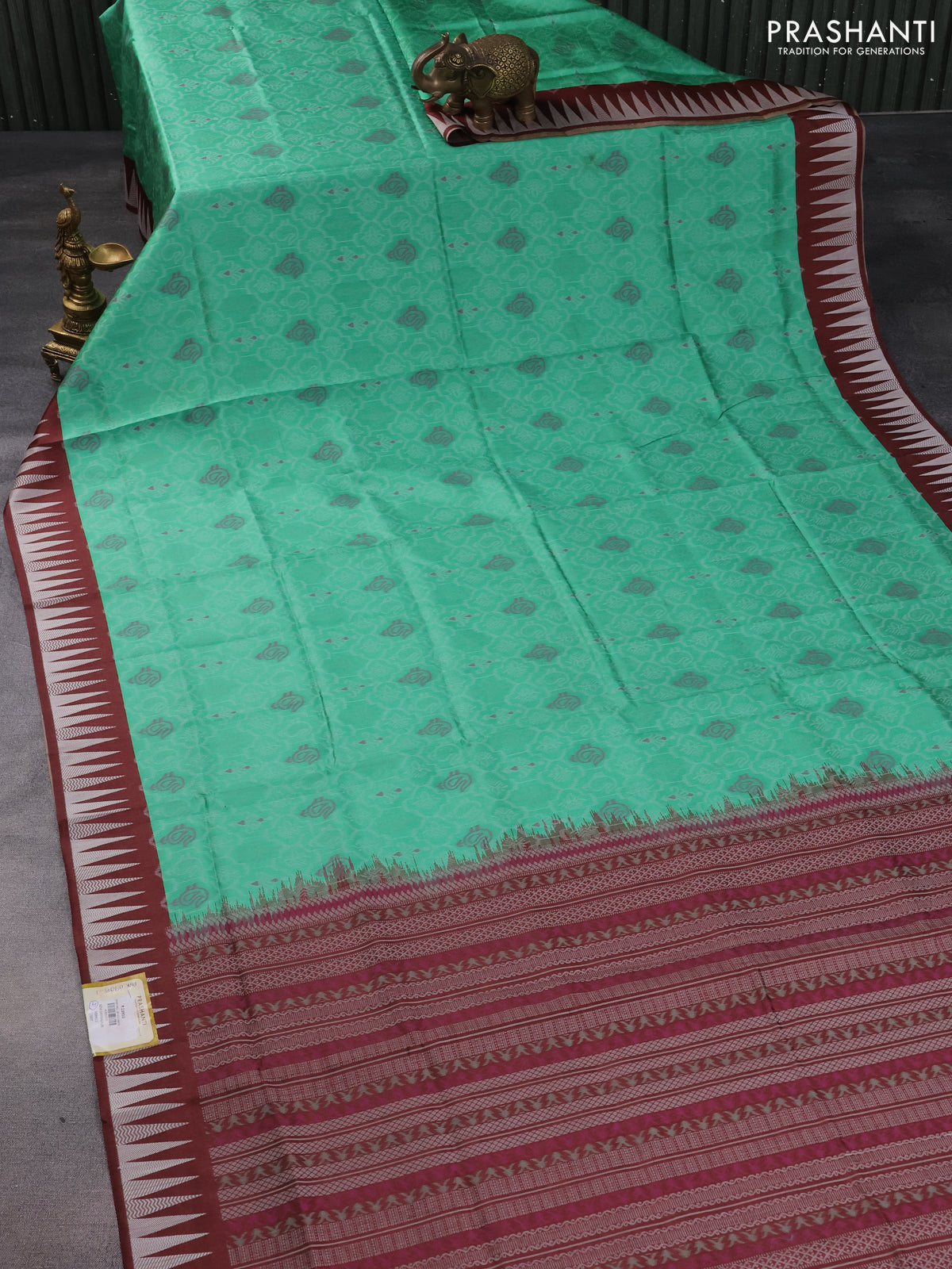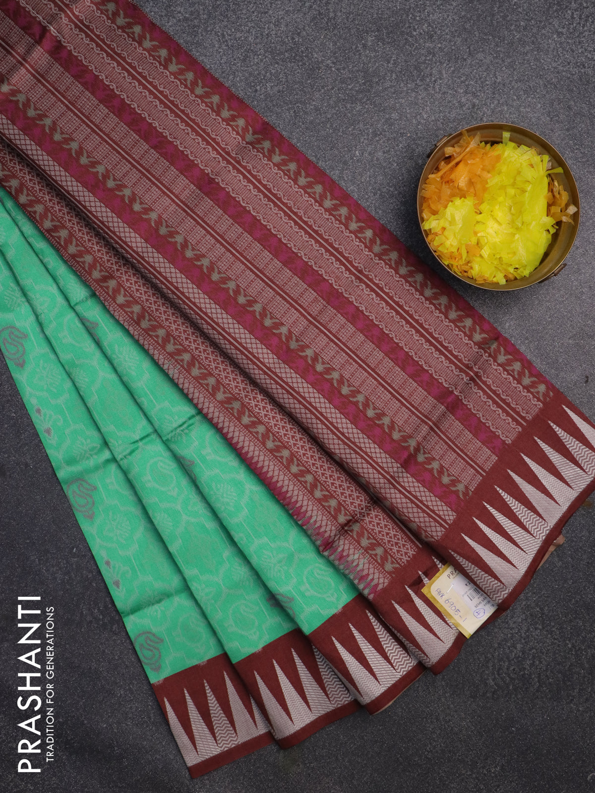Sambalpuri semi silk saree green and brown with allover thread woven ikat weaves and temple woven border