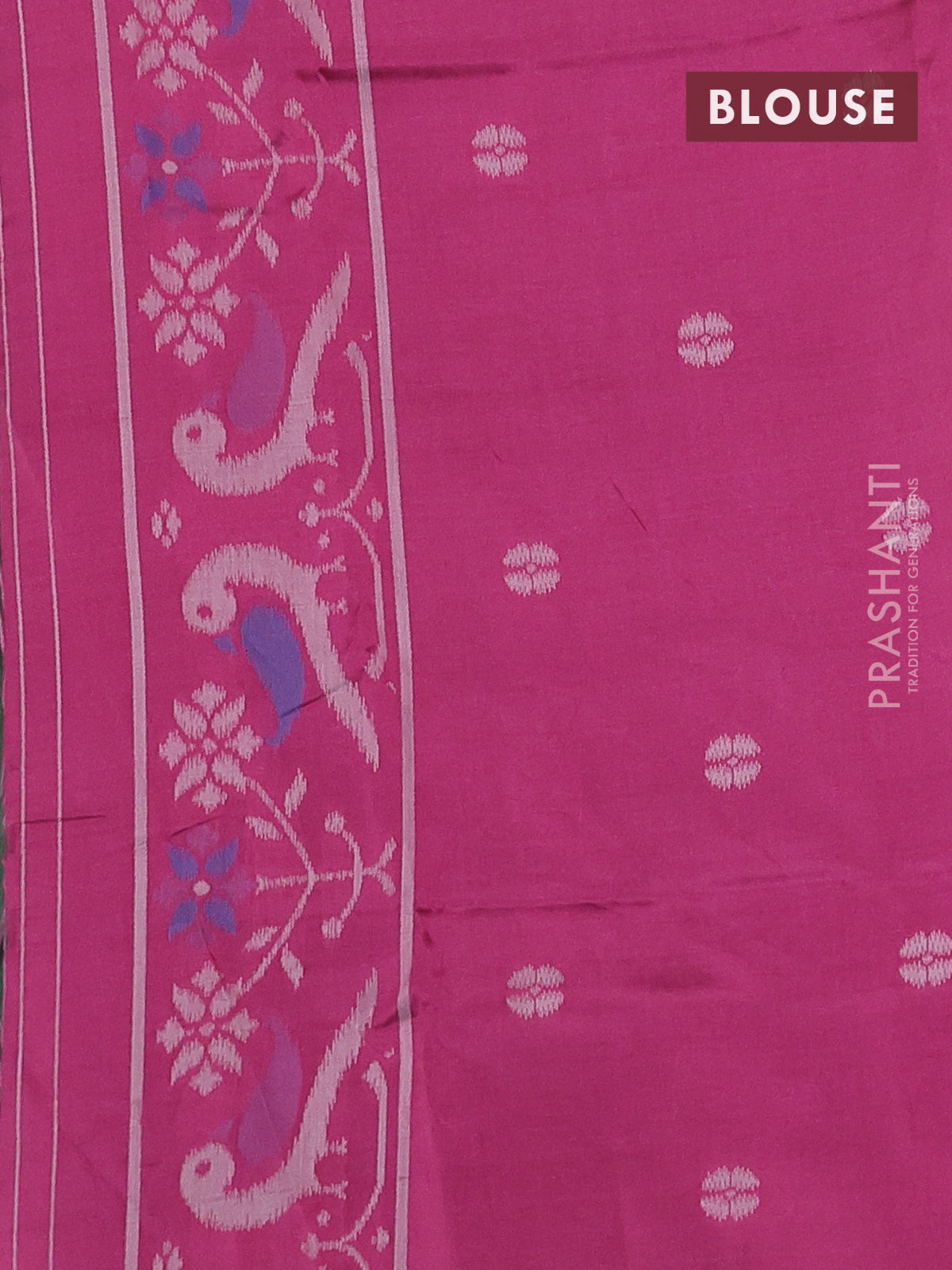Sambalpuri semi silk saree green and pink with allover ikat weaves and thread woven border