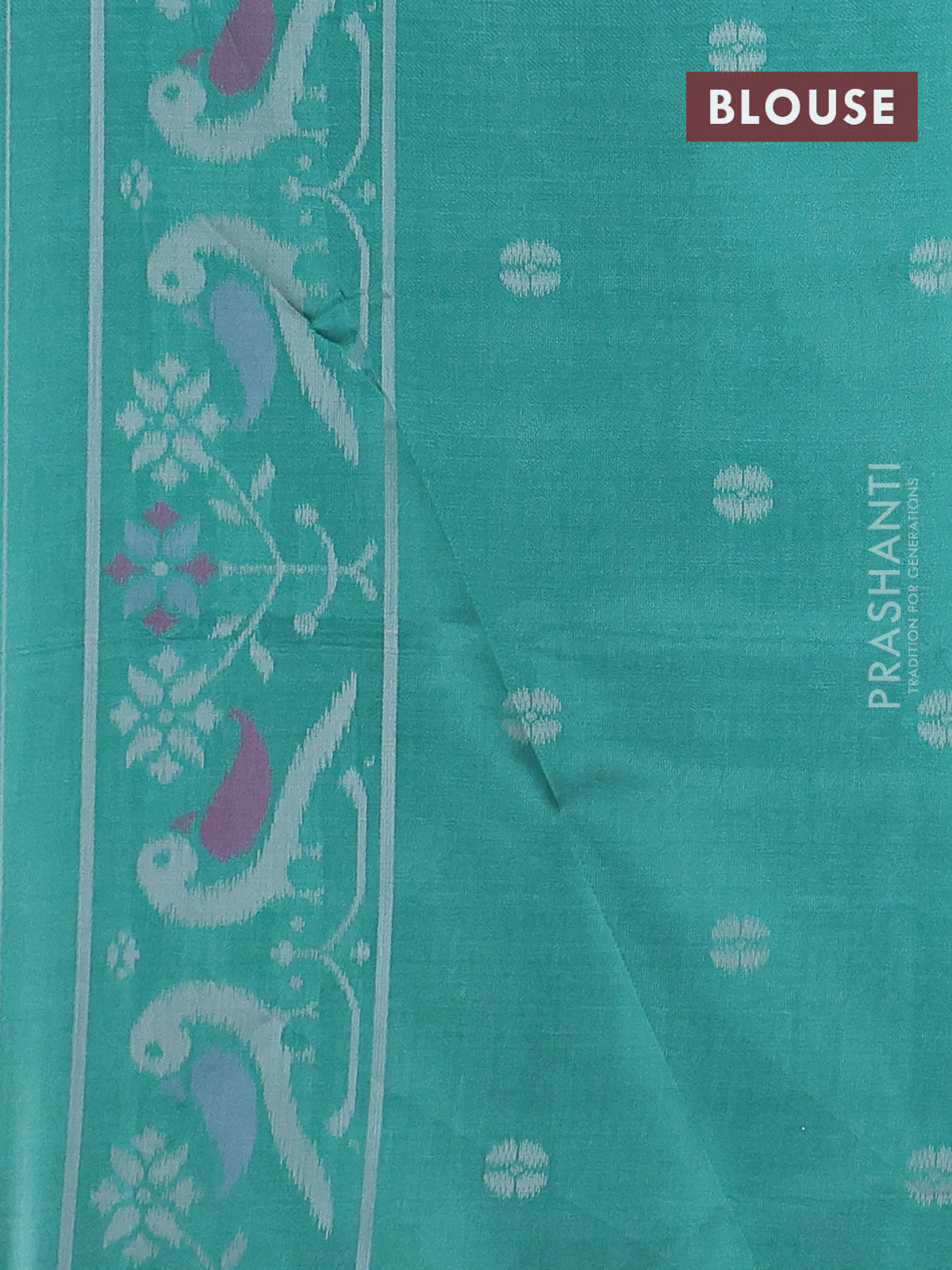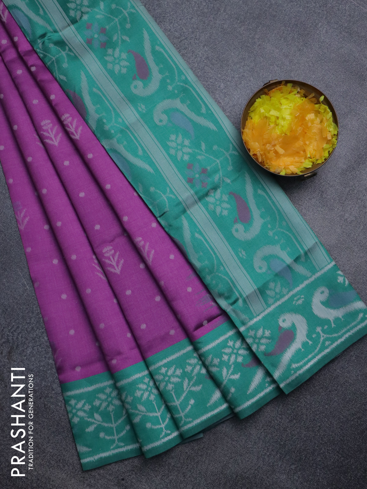 Sambalpuri semi silk saree magenta pink and green with allover ikat weaves and thread woven border