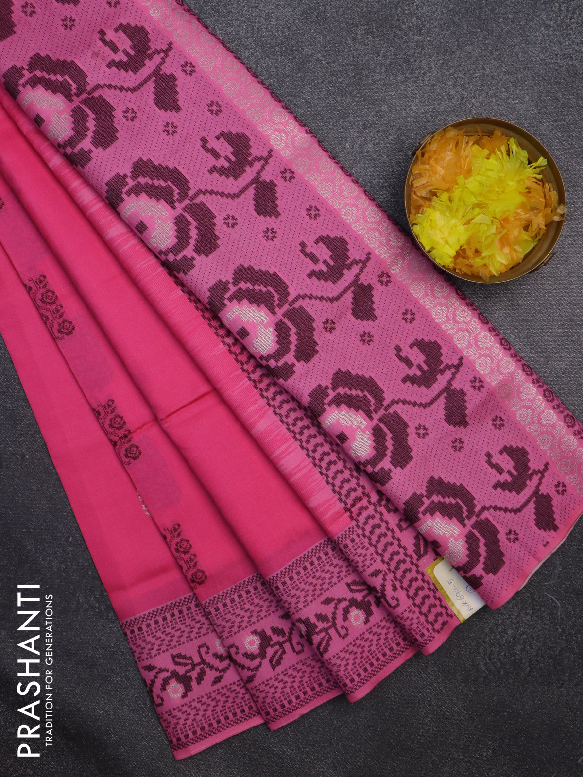 Sambalpuri semi silk saree pink with thread woven ikat buttas and thread woven border