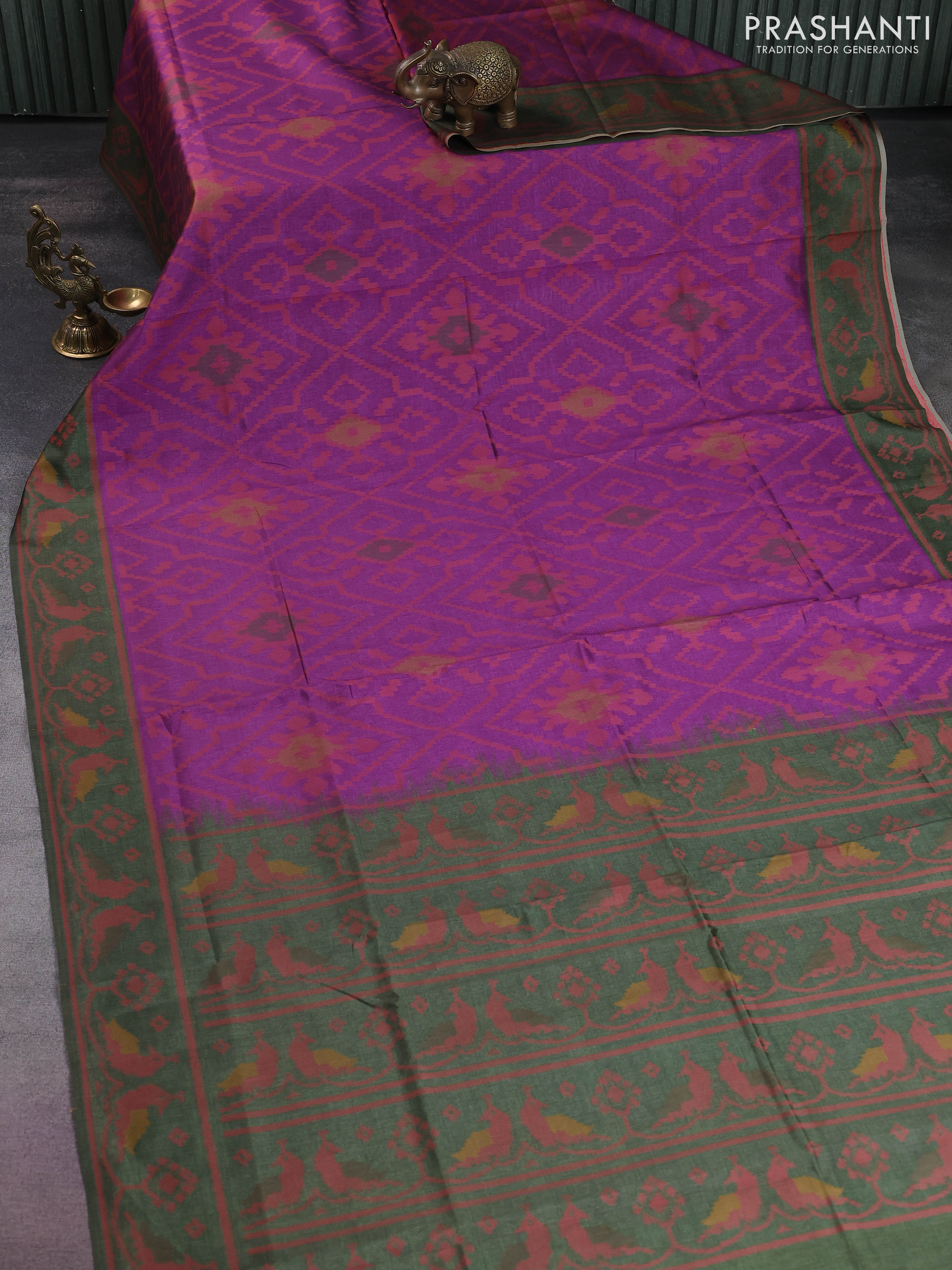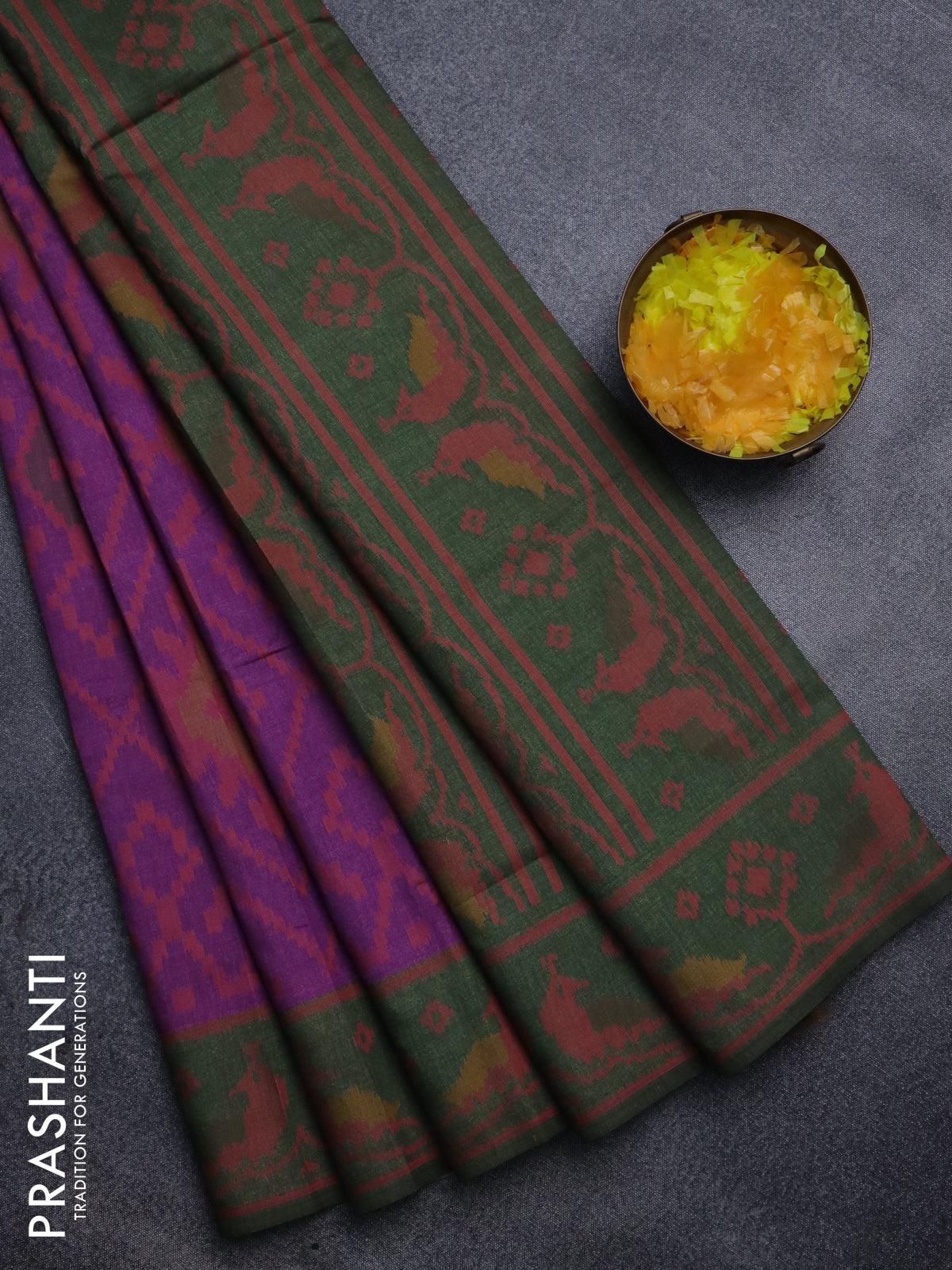 Sambalpuri semi silk saree purple and sap green with allover ikat weaves and thread woven border