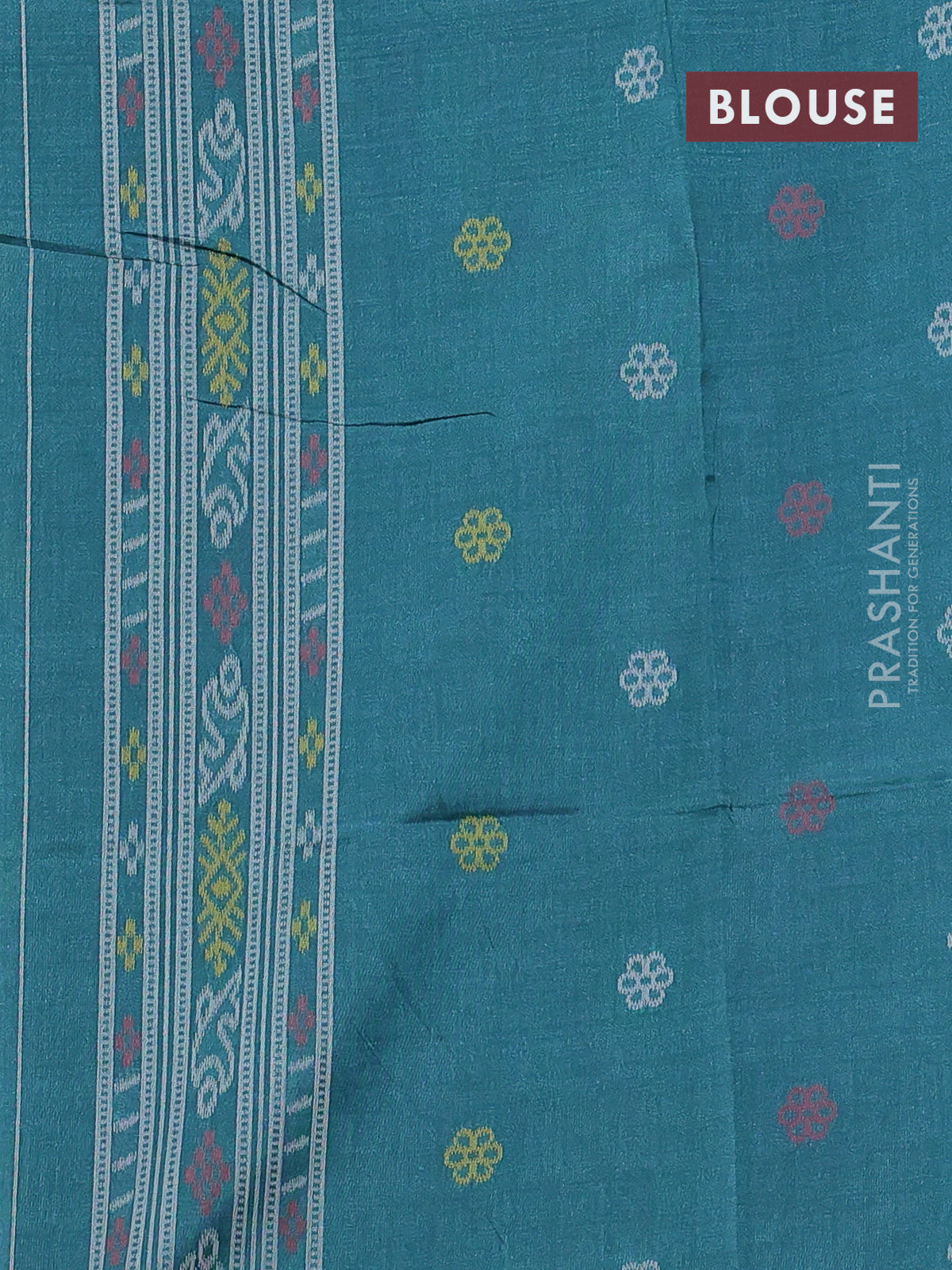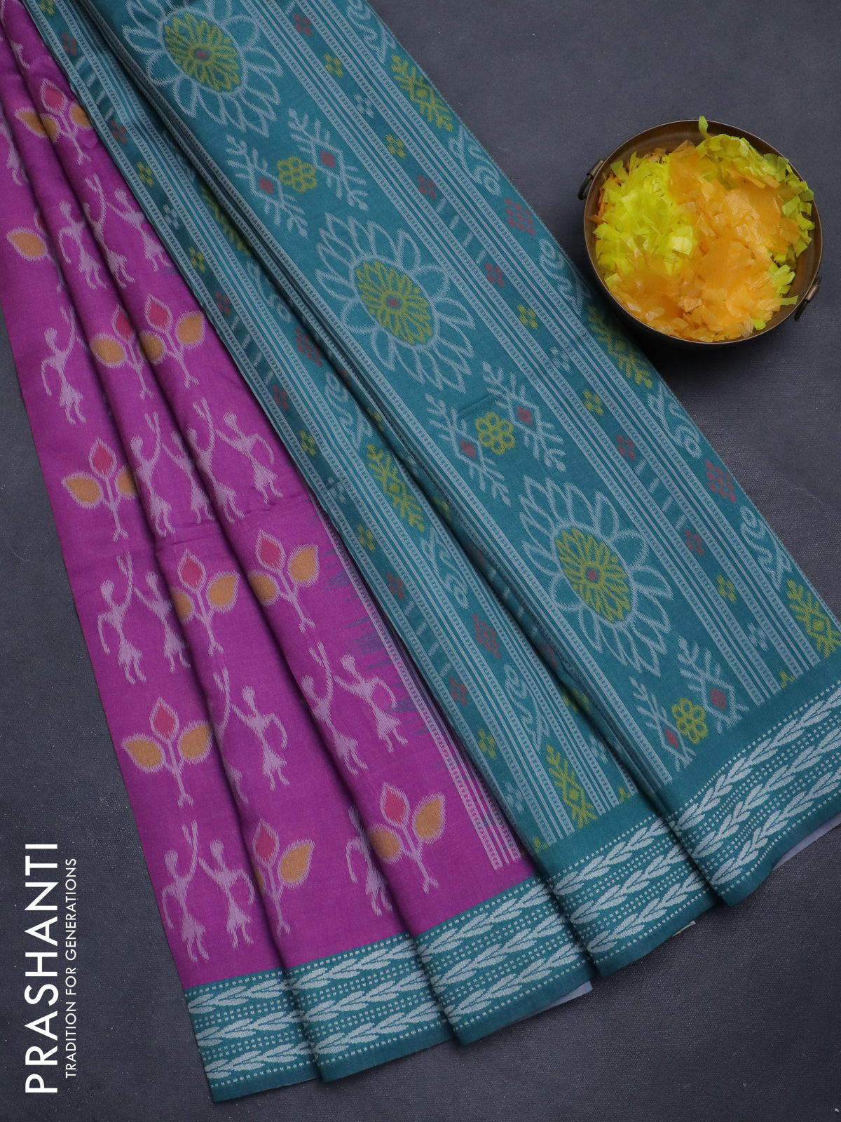 Sambalpuri semi silk saree purple and teal green with allover ikat weaves and thread woven border