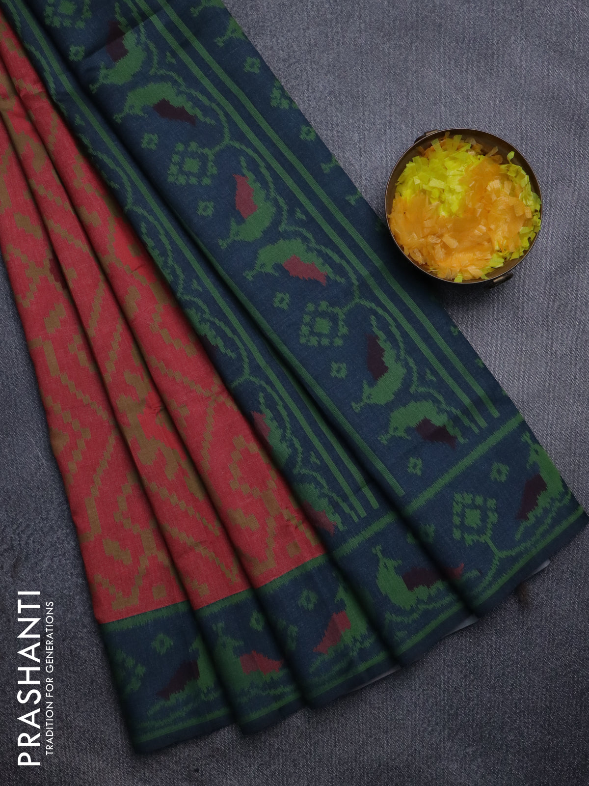 Sambalpuri semi silk saree red shade and elephant grey with allover ikat weaves and thread woven border