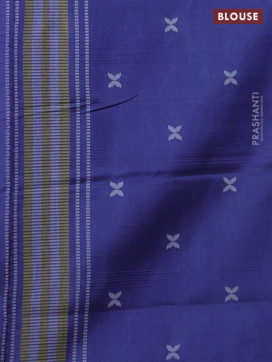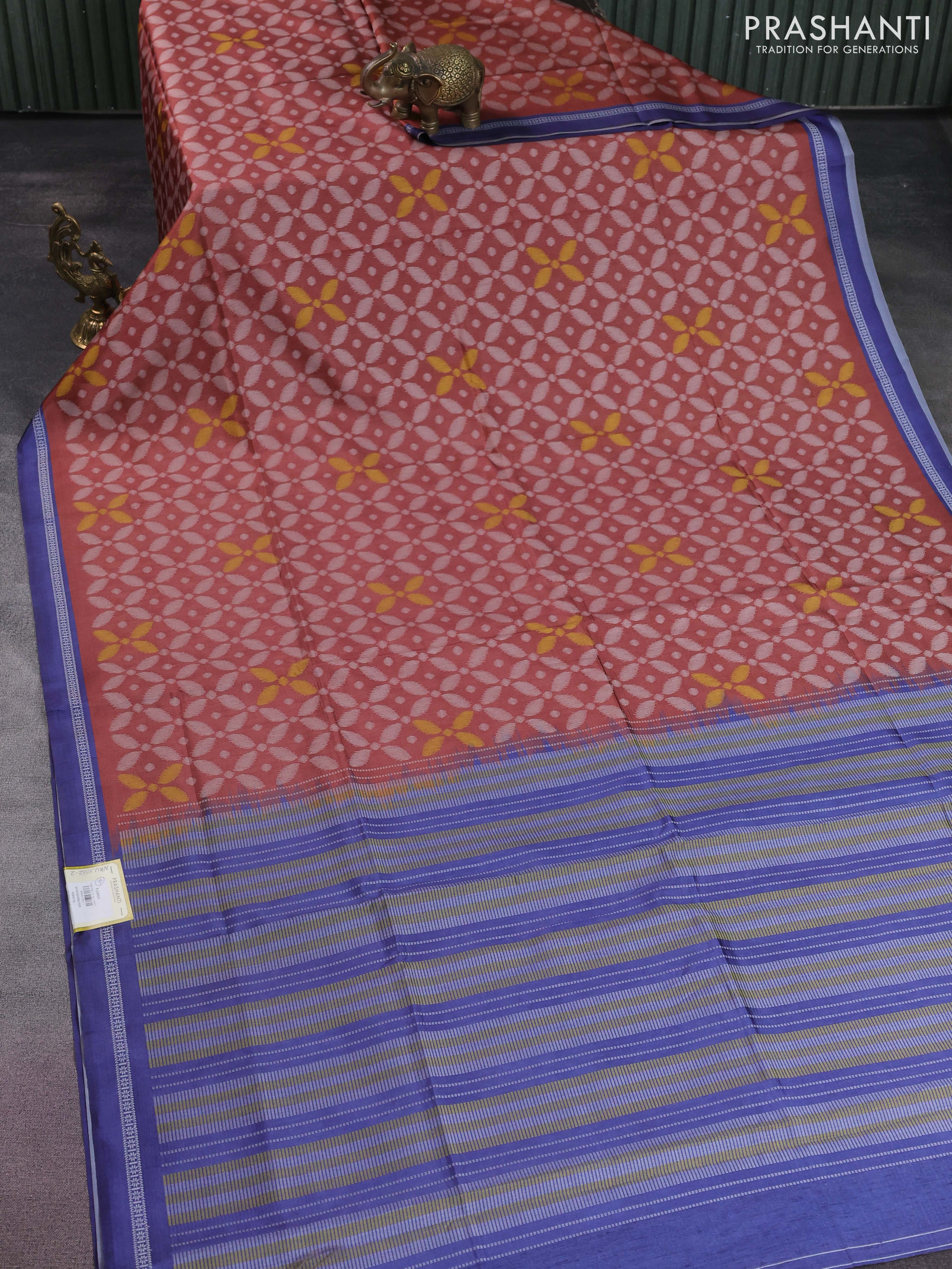 Sambalpuri semi silk saree rust shade and blue with allover ikat weaves and thread woven border