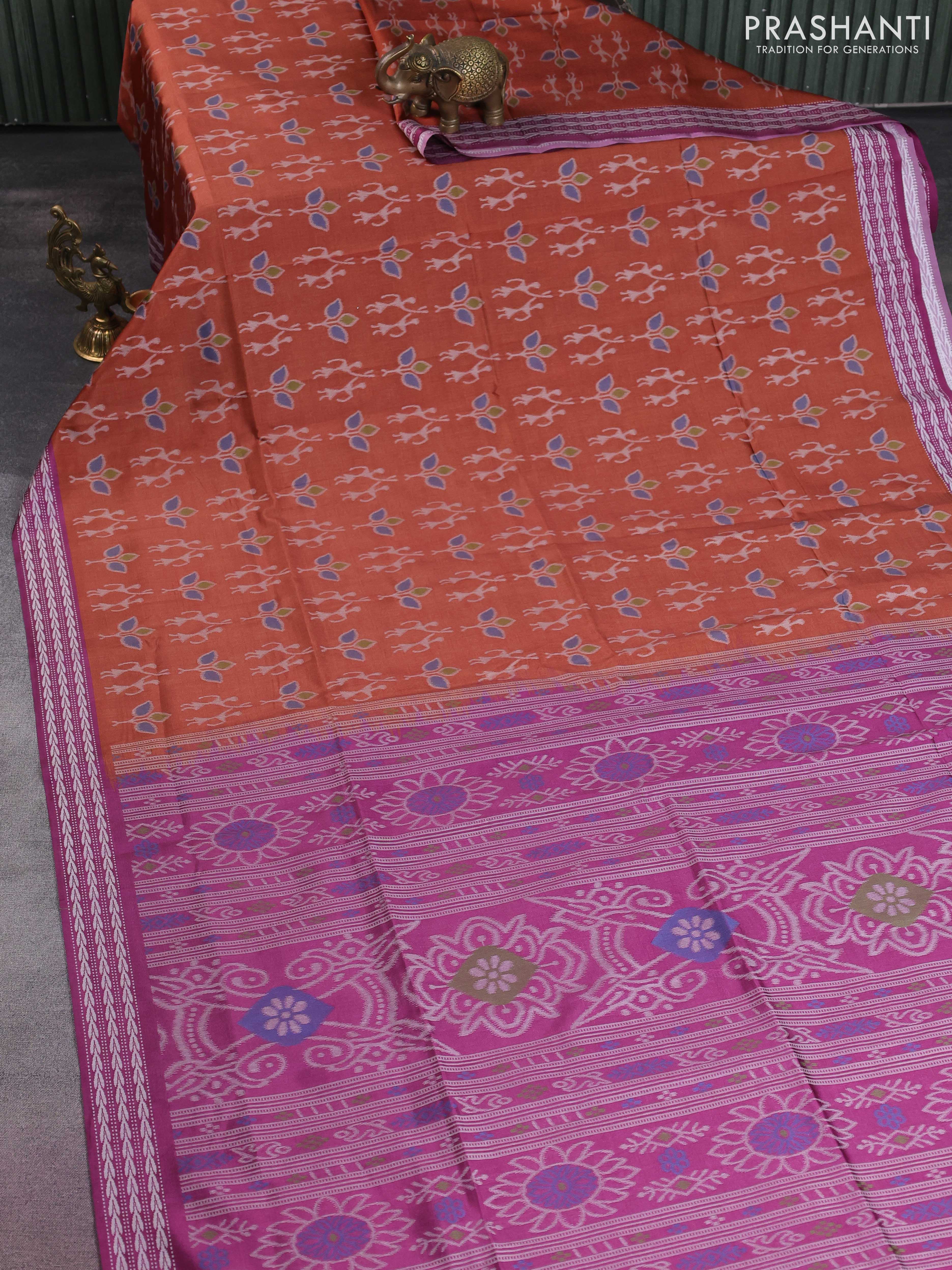 Sambalpuri semi silk saree rust shade and purple with allover ikat weaves and thread woven border