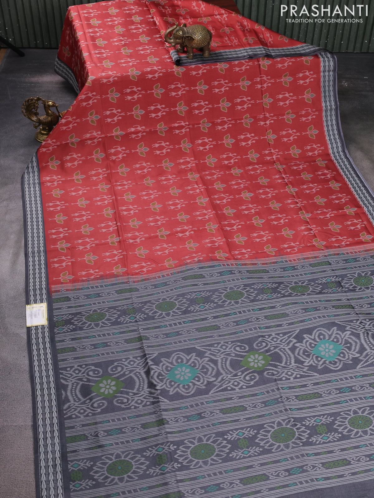Sambalpuri semi silk saree rustic orange and grey with allover ikat weaves and thread woven border