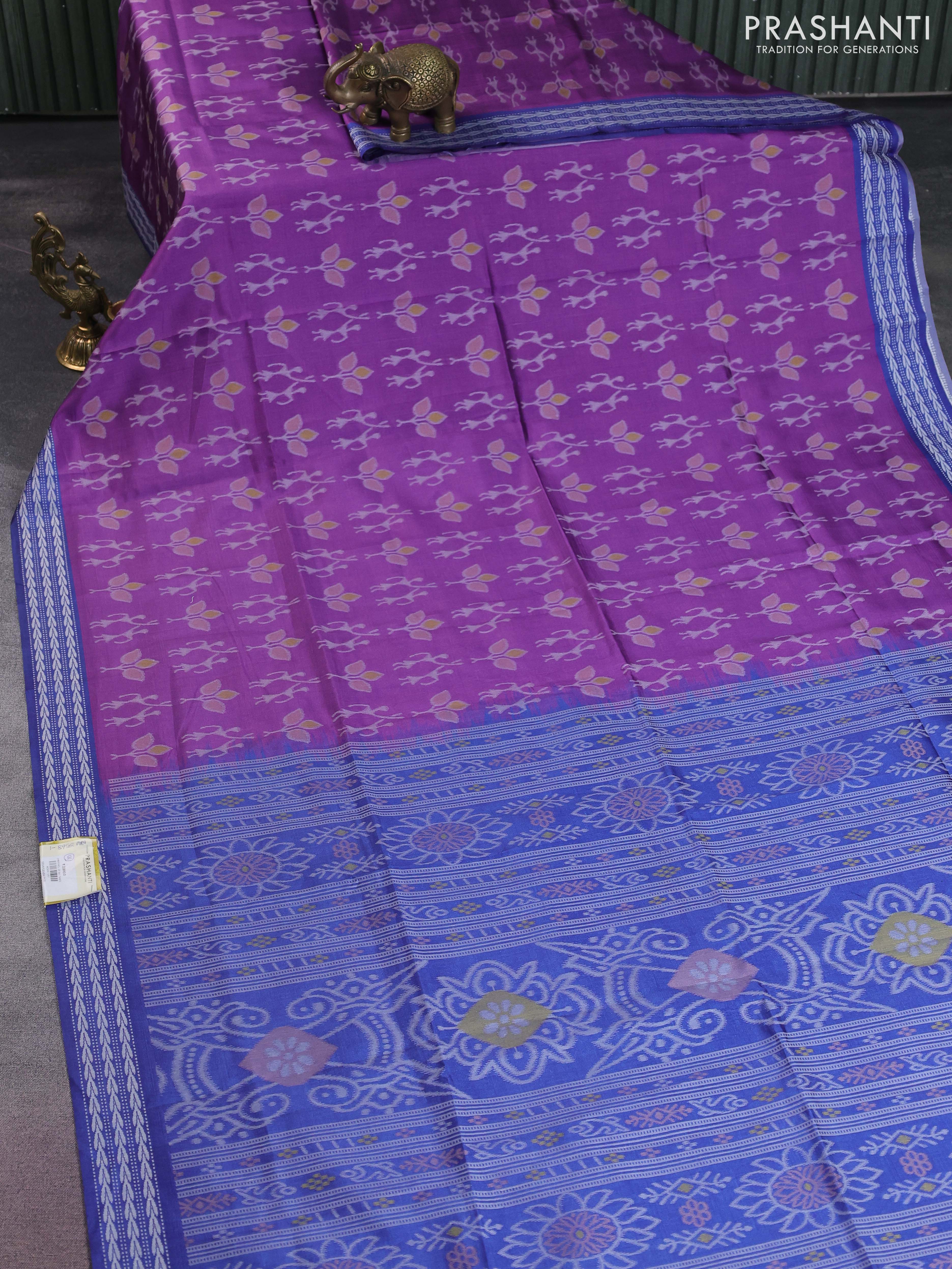 Sambalpuri semi silk saree violet and blue with allover ikat weaves and thread woven border