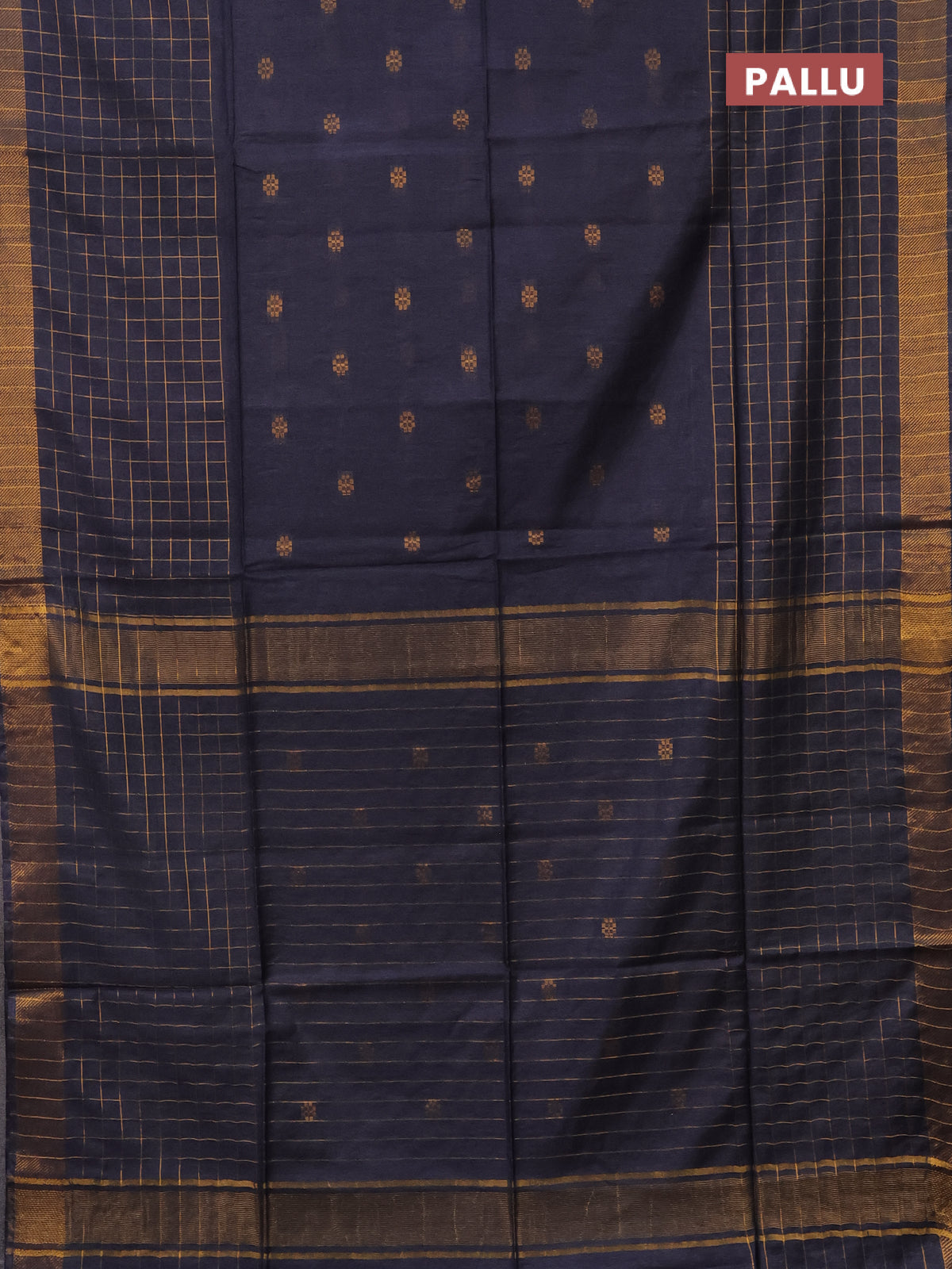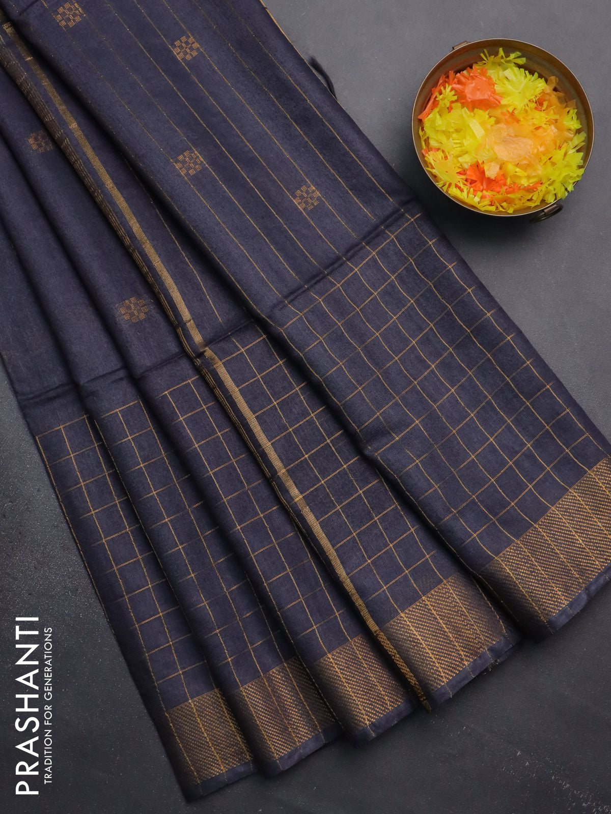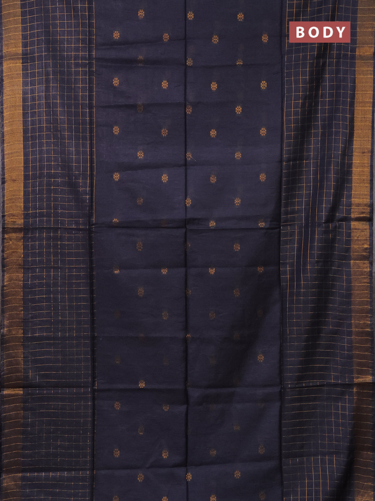 Semi bamboo saree bluish grey with allover zari checked pattern and zari woven border