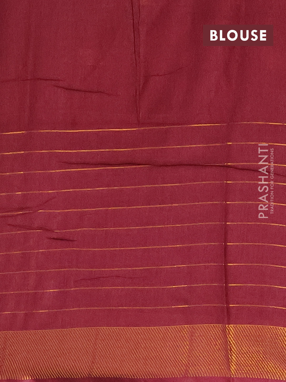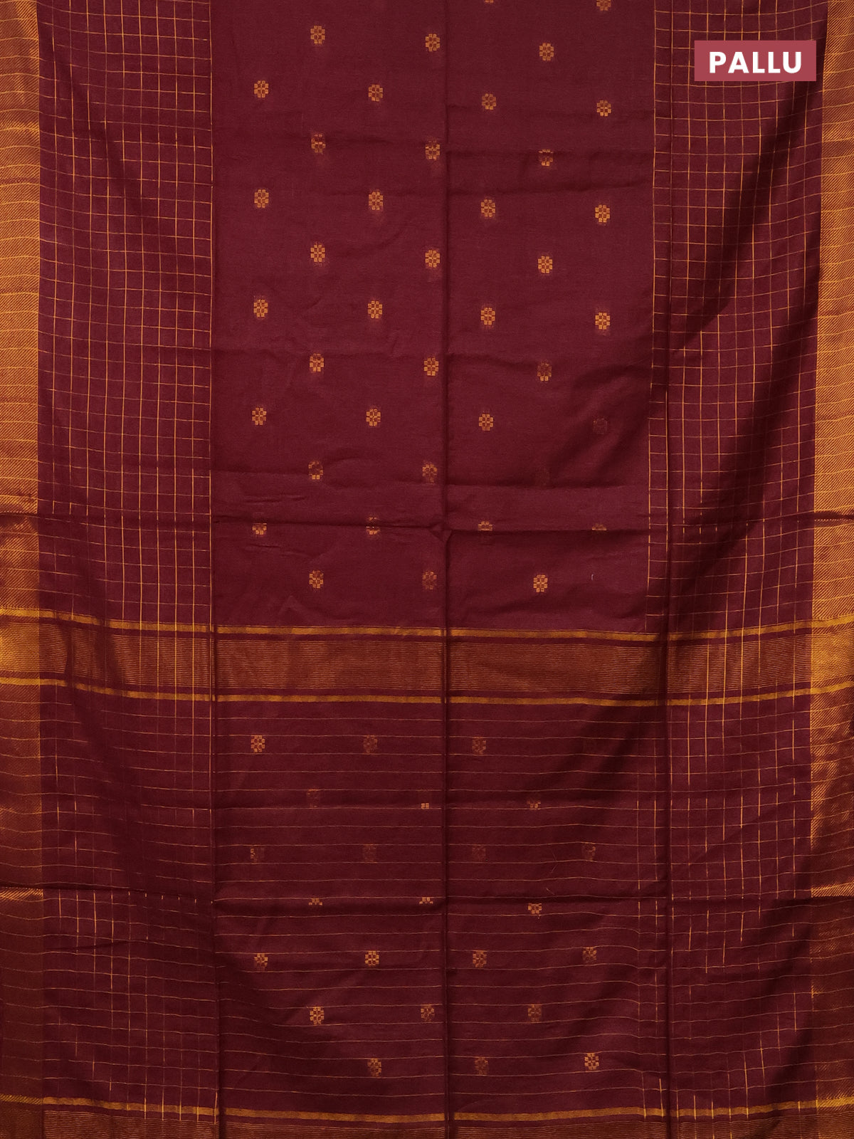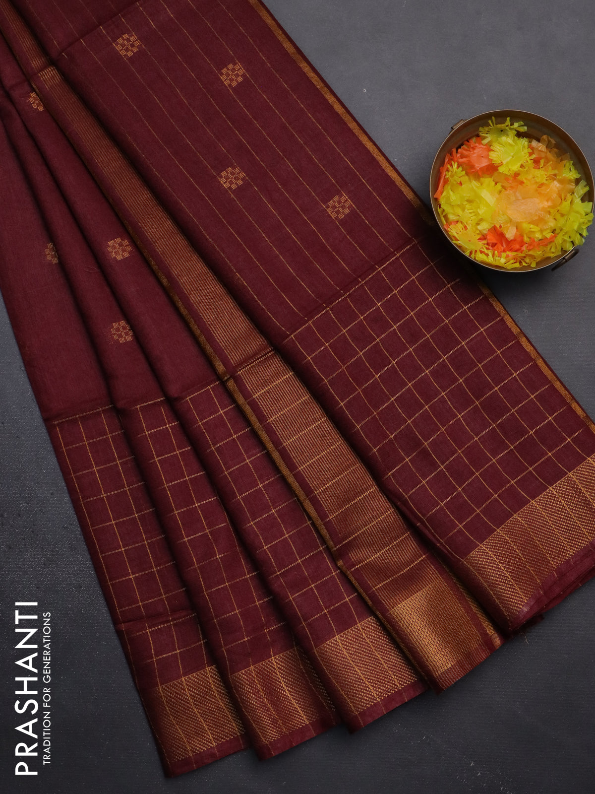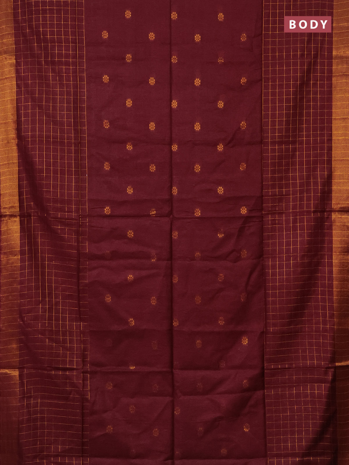 Semi bamboo saree deep maroon with allover zari checked pattern and zari woven border