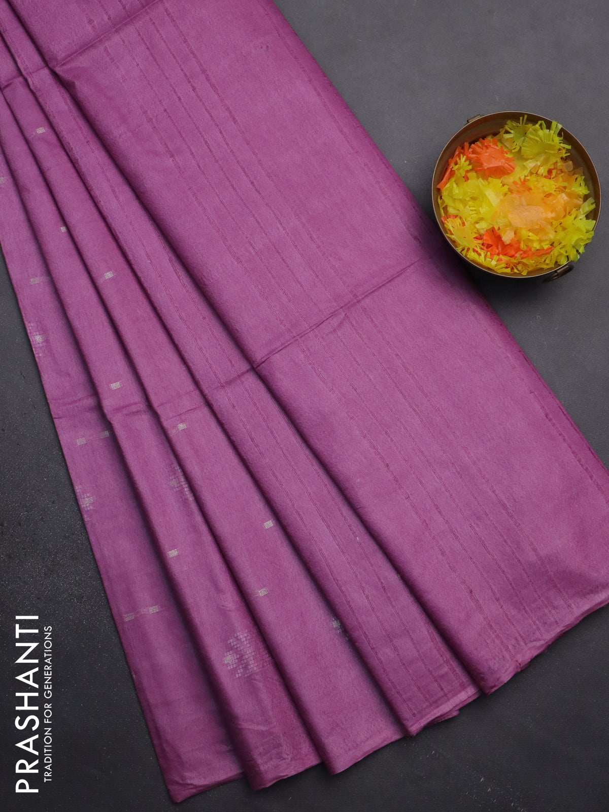 Semi bamboo saree lavender with thread & zari woven buttas in borderless style
