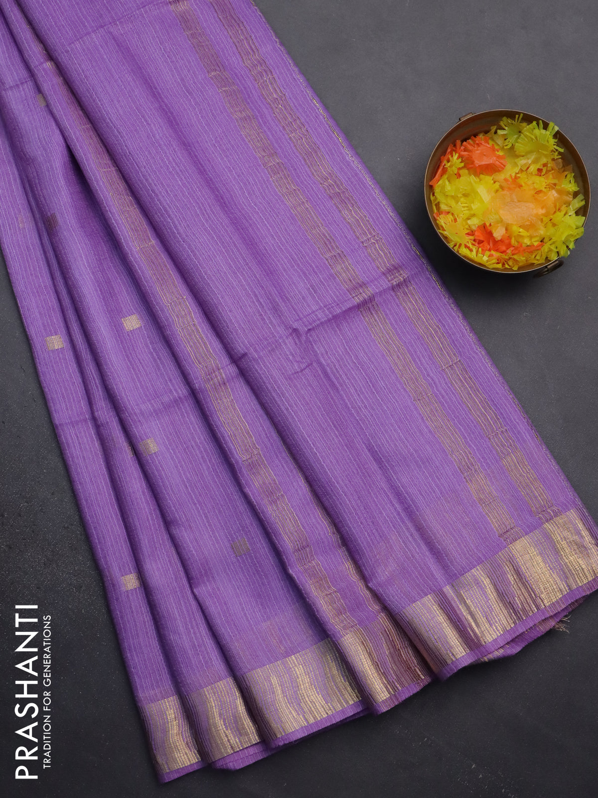 Semi bamboo saree lavender with zari woven buttas and temple design zari woven border