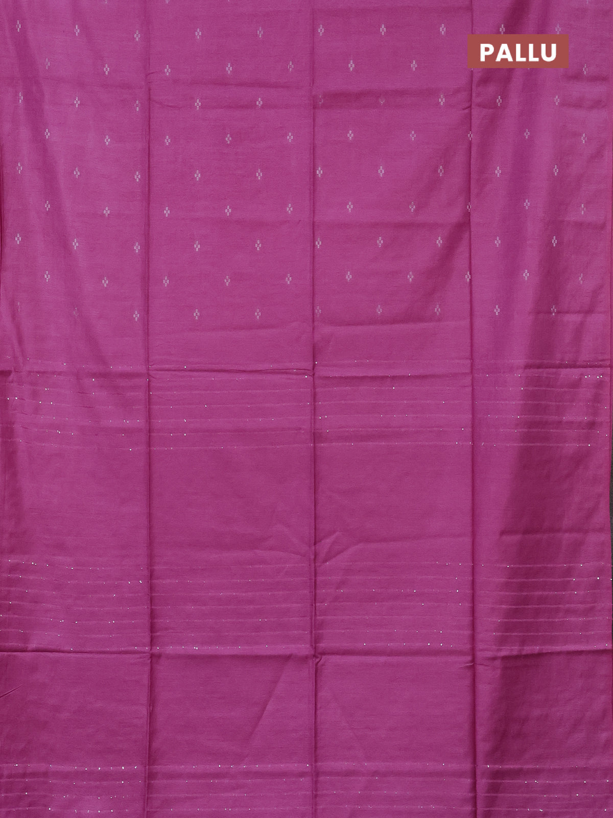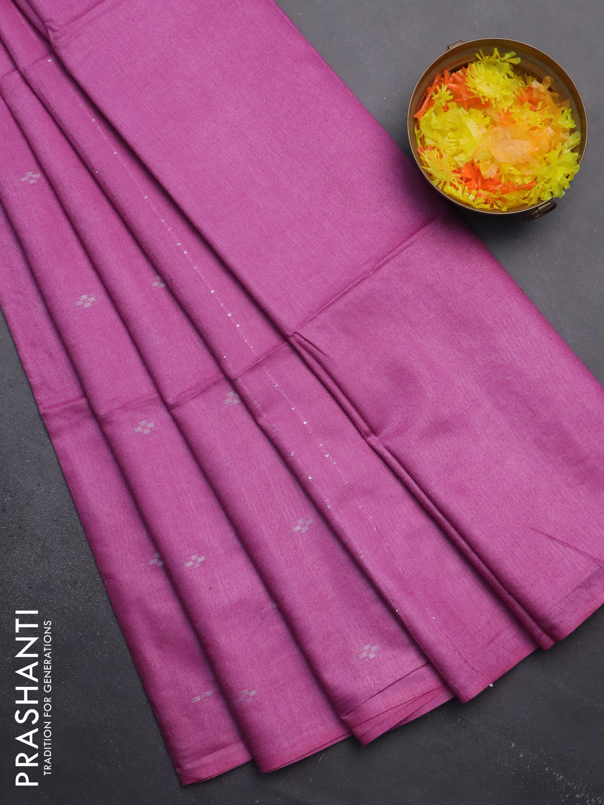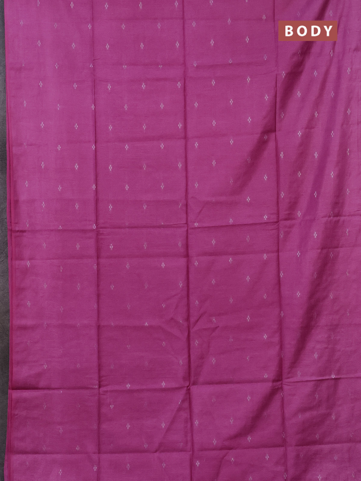 Semi bamboo saree magenta pink with silver zari woven buttas in borderless style