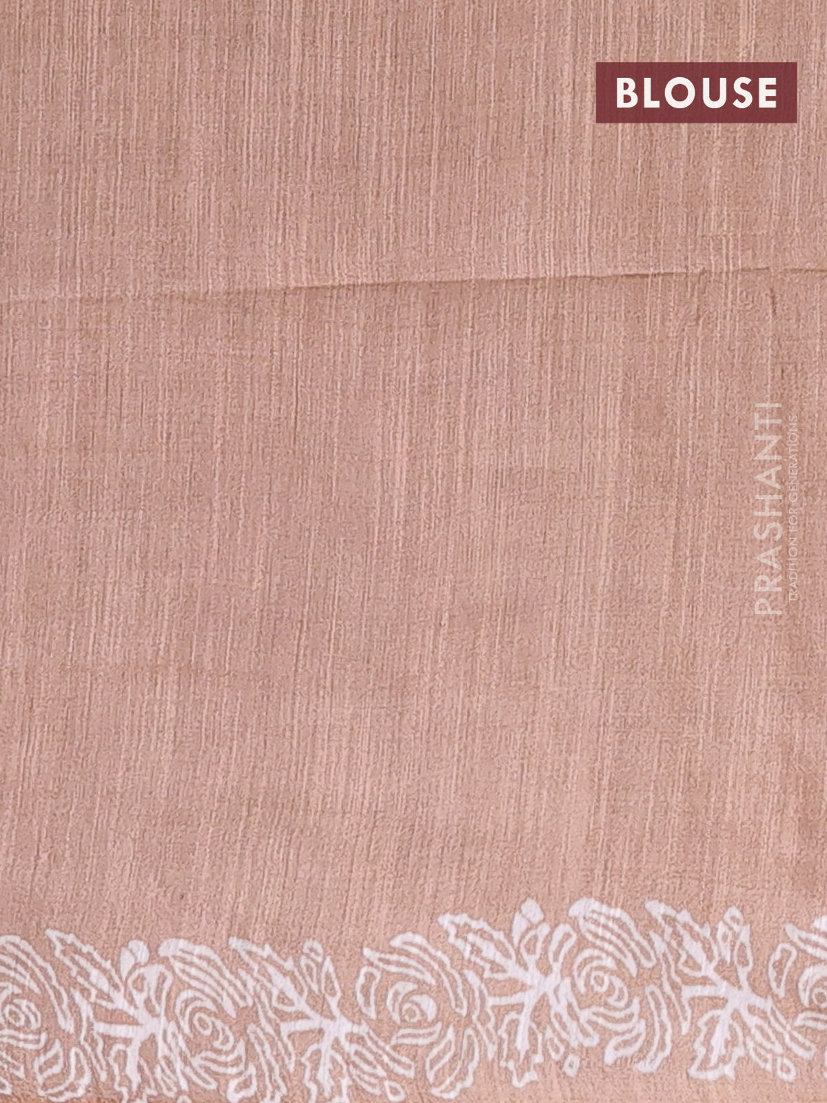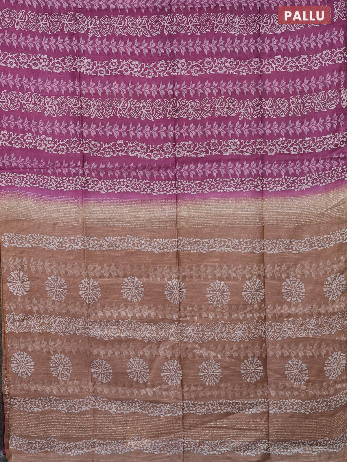Semi bamboo saree mauve pink and sandal with allover thread weaves & prints in borderless style
