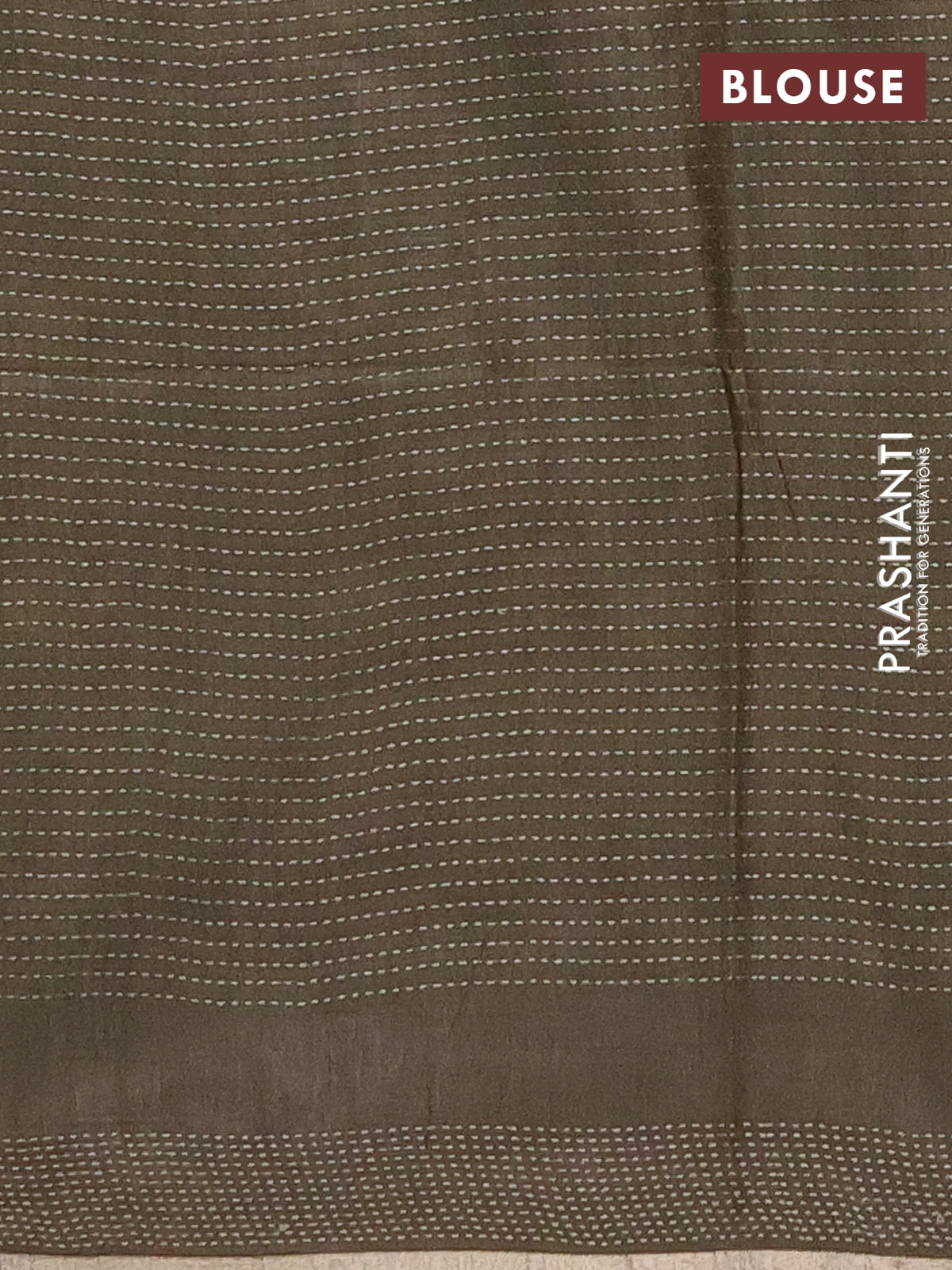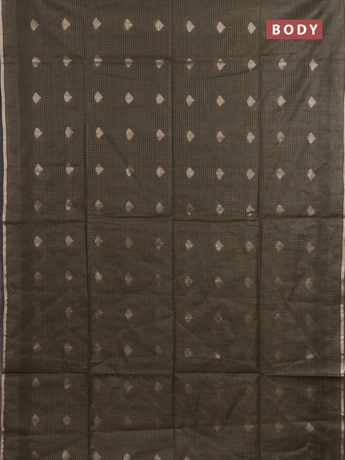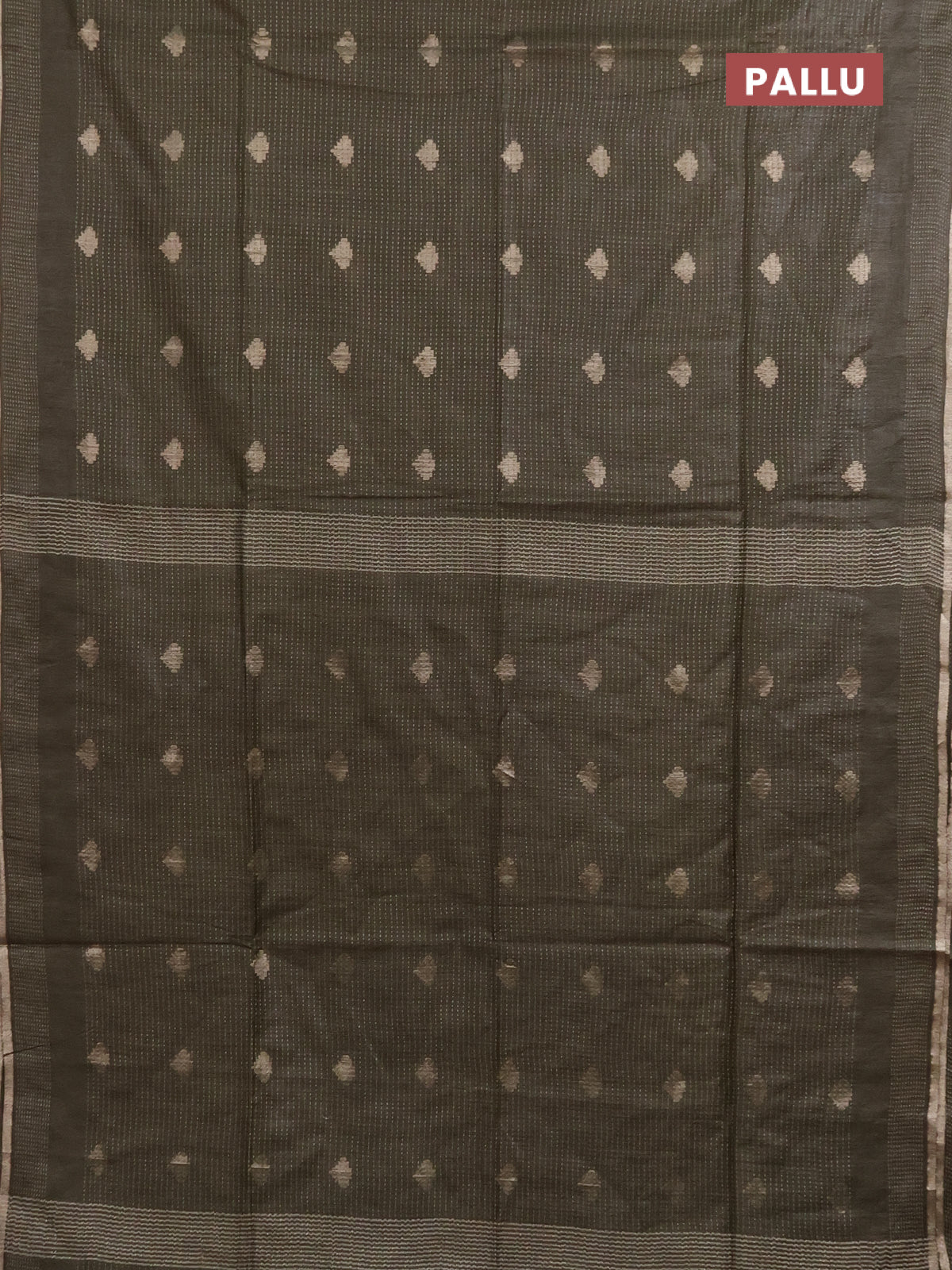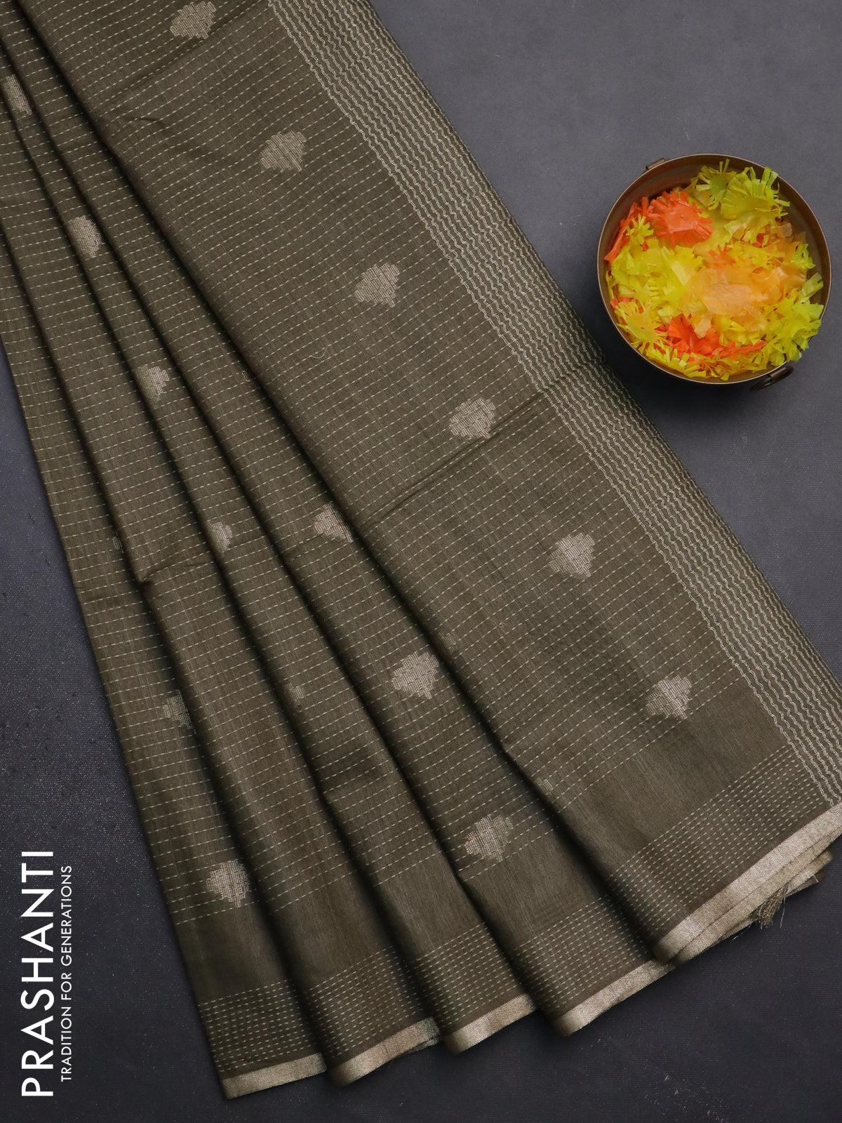 Semi bamboo saree military green with allover thread weaves & zari buttas and zari woven piping border
