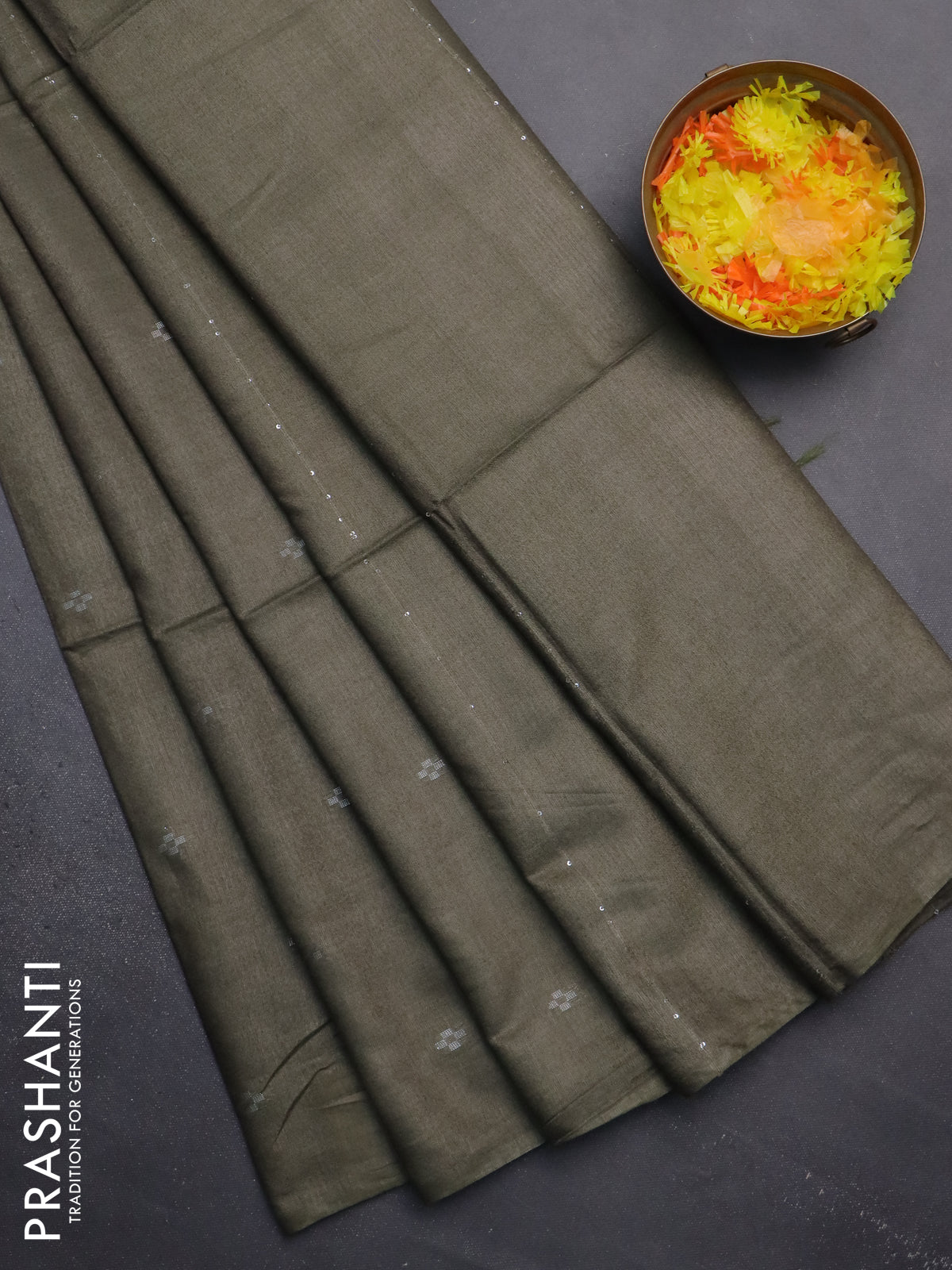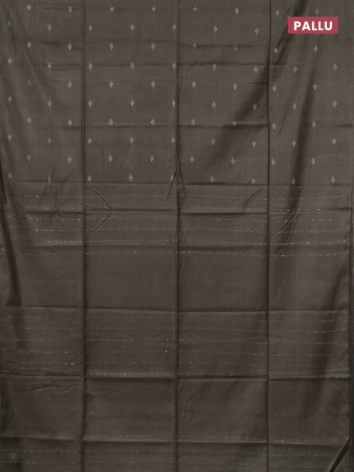 Semi bamboo saree military green with silver zari woven buttas in borderless style