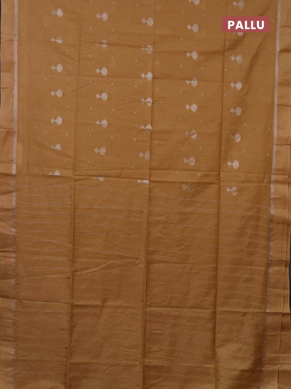 Semi bamboo saree mustard yellow with silver zari woven buttas and zari woven simple border