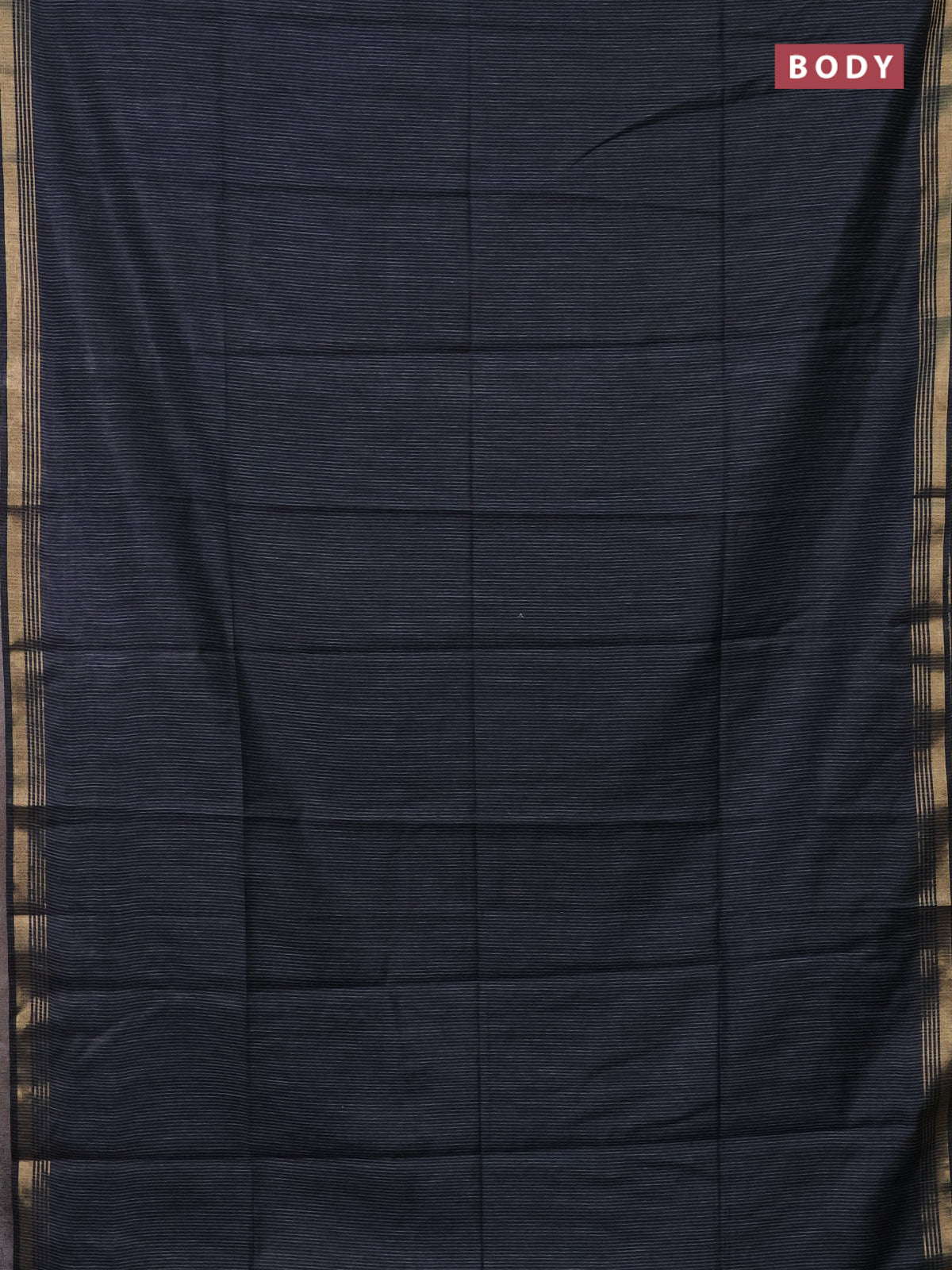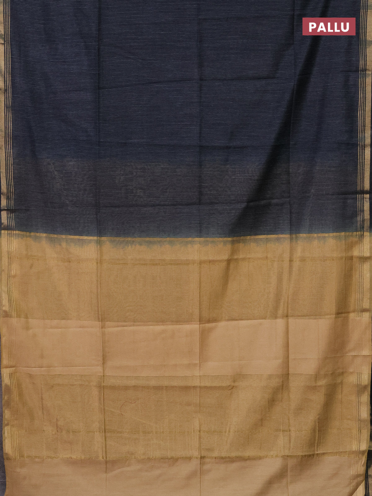 Semi bamboo saree navy blue and sandal and stripes pattern and zari woven border