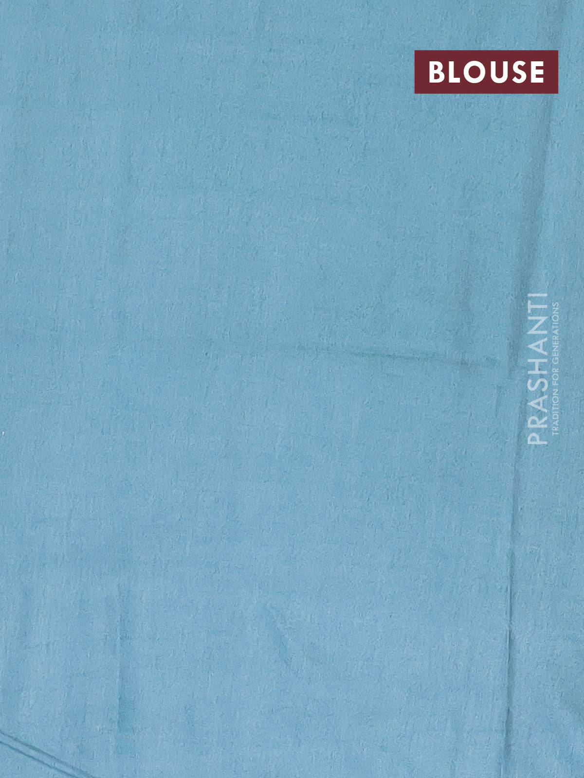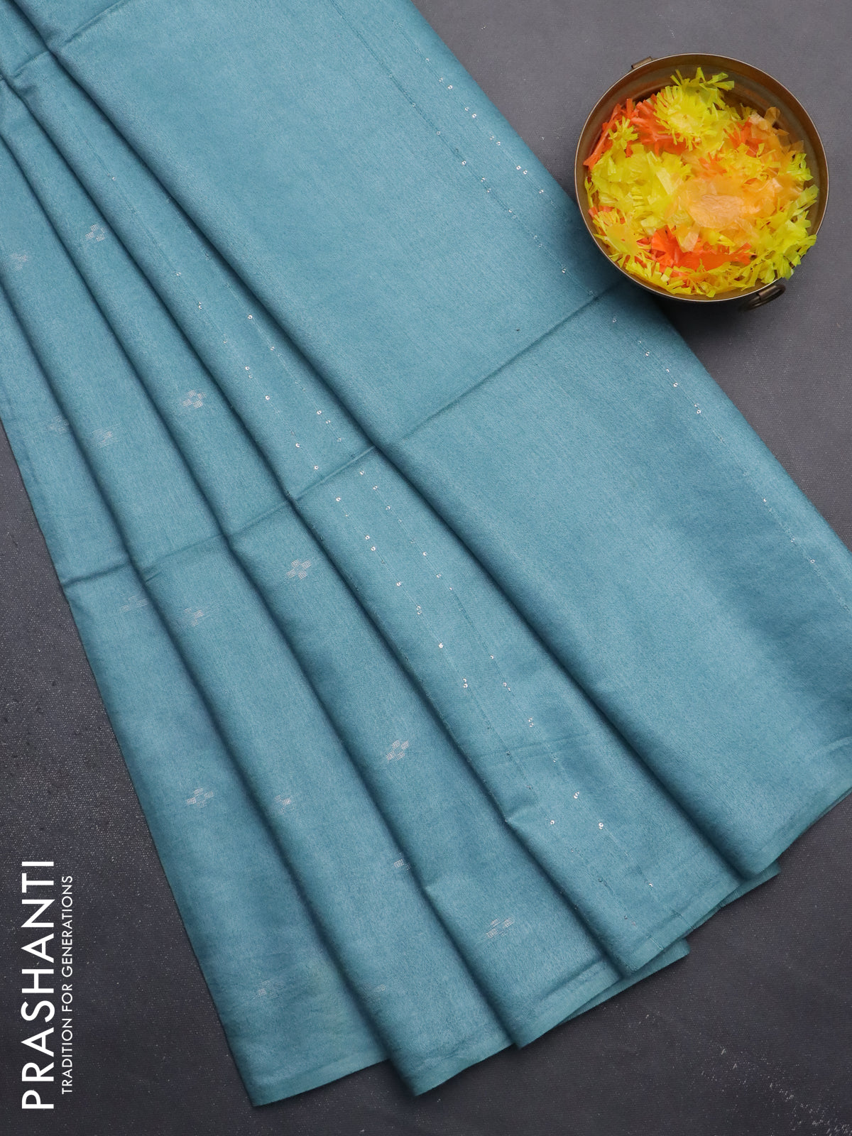 Semi bamboo saree pastel blue with silver zari woven buttas in borderless style