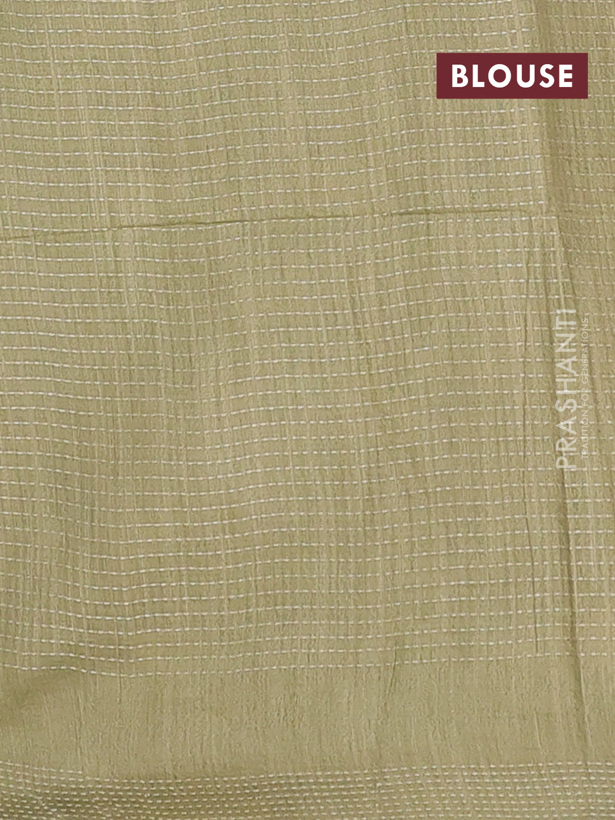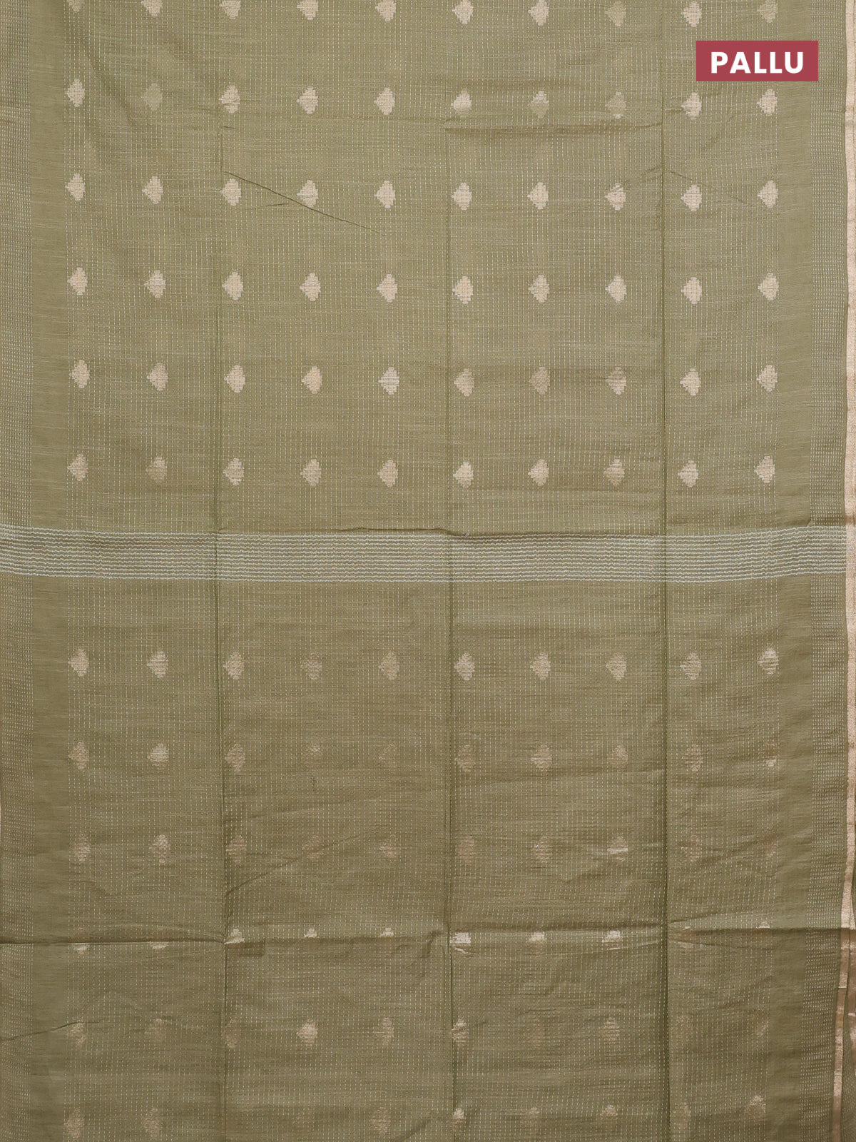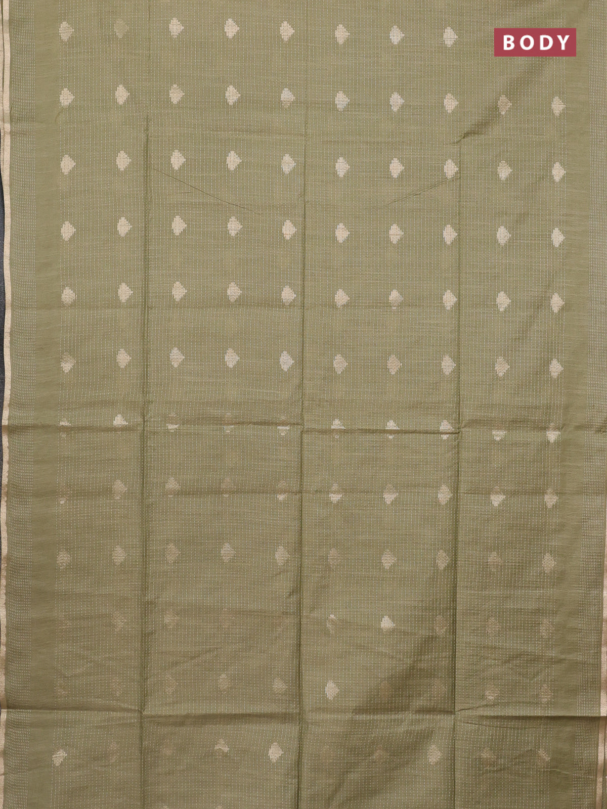 Semi bamboo saree pastel green with allover thread weaves & zari buttas and zari woven piping border
