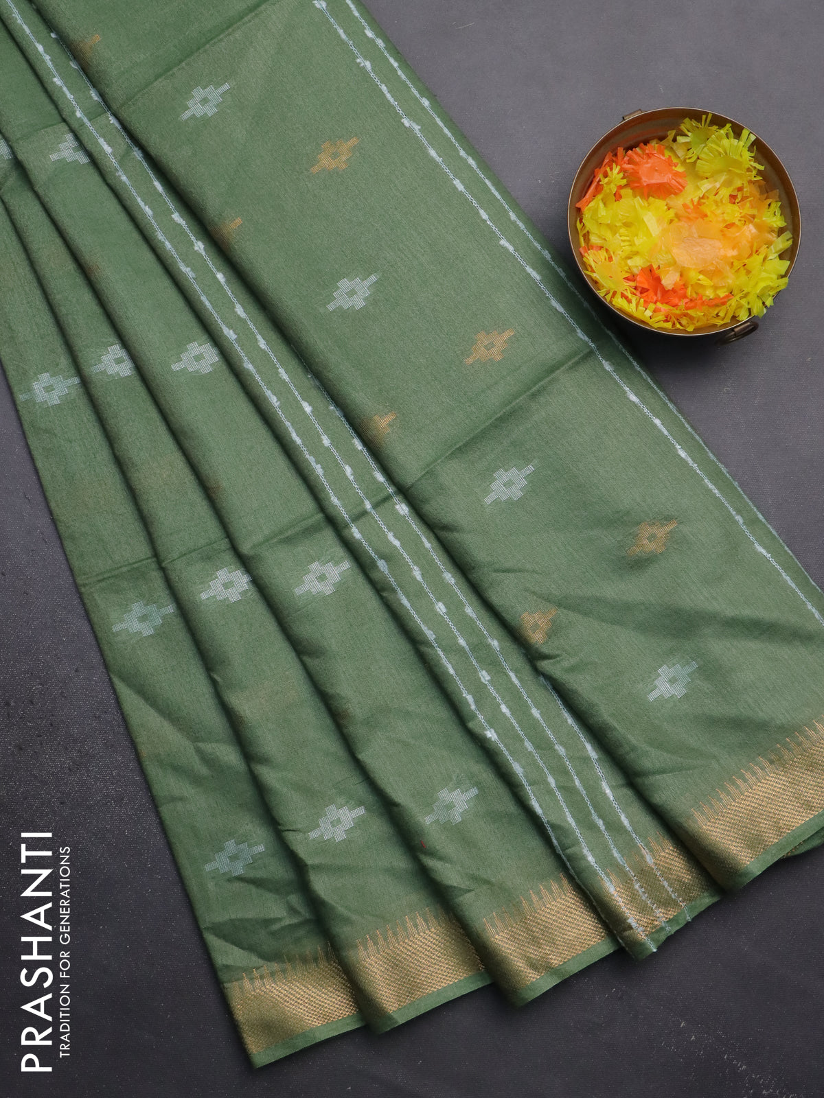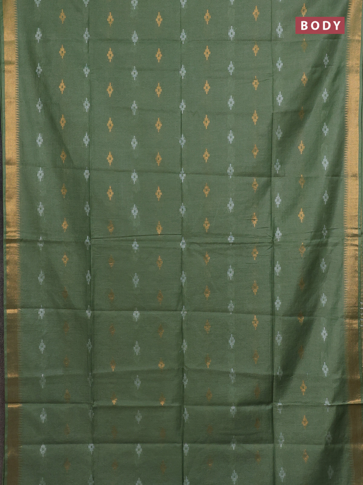 Semi bamboo saree pastel green with thread & zari woven buttas and zari woven border