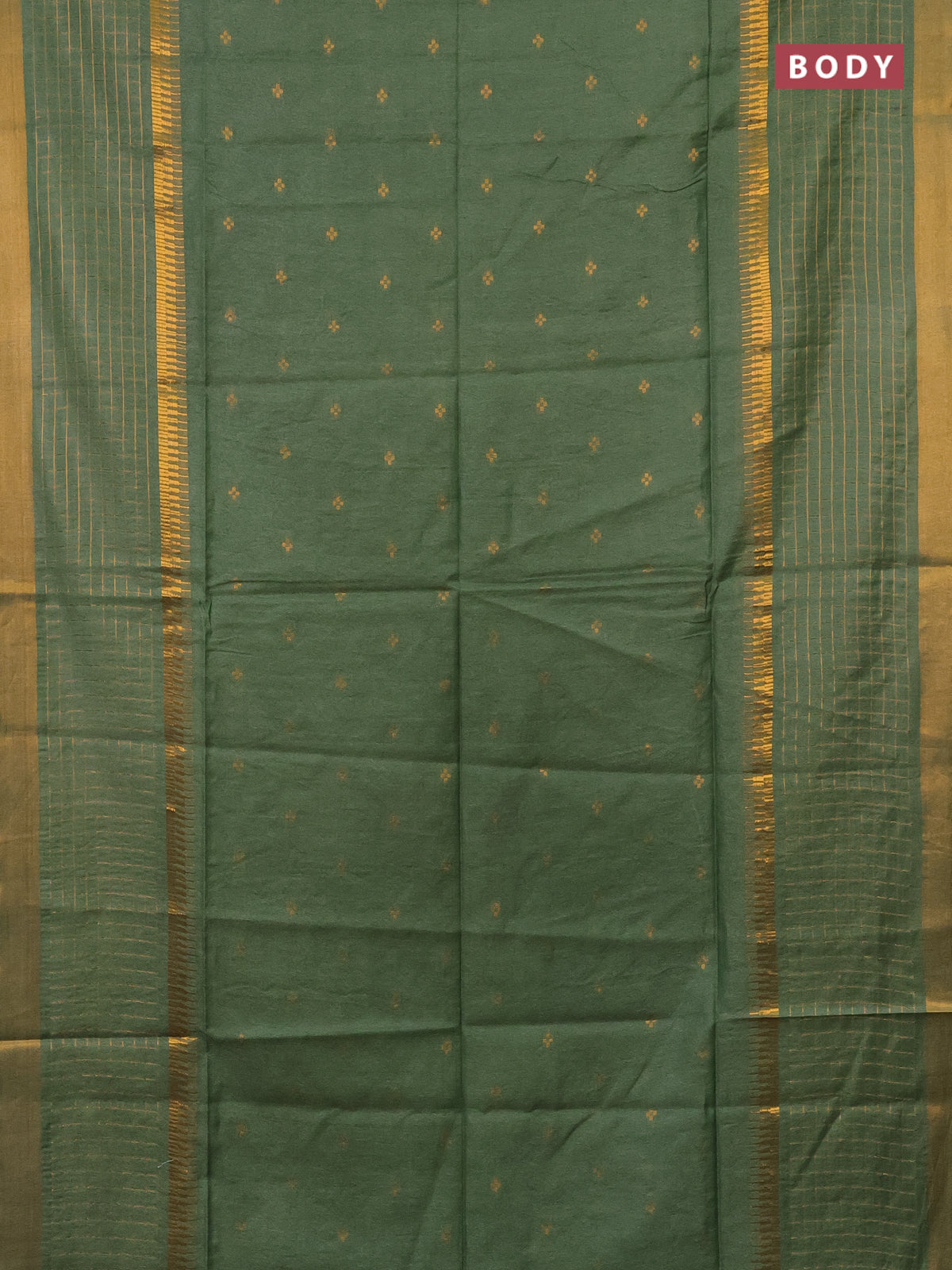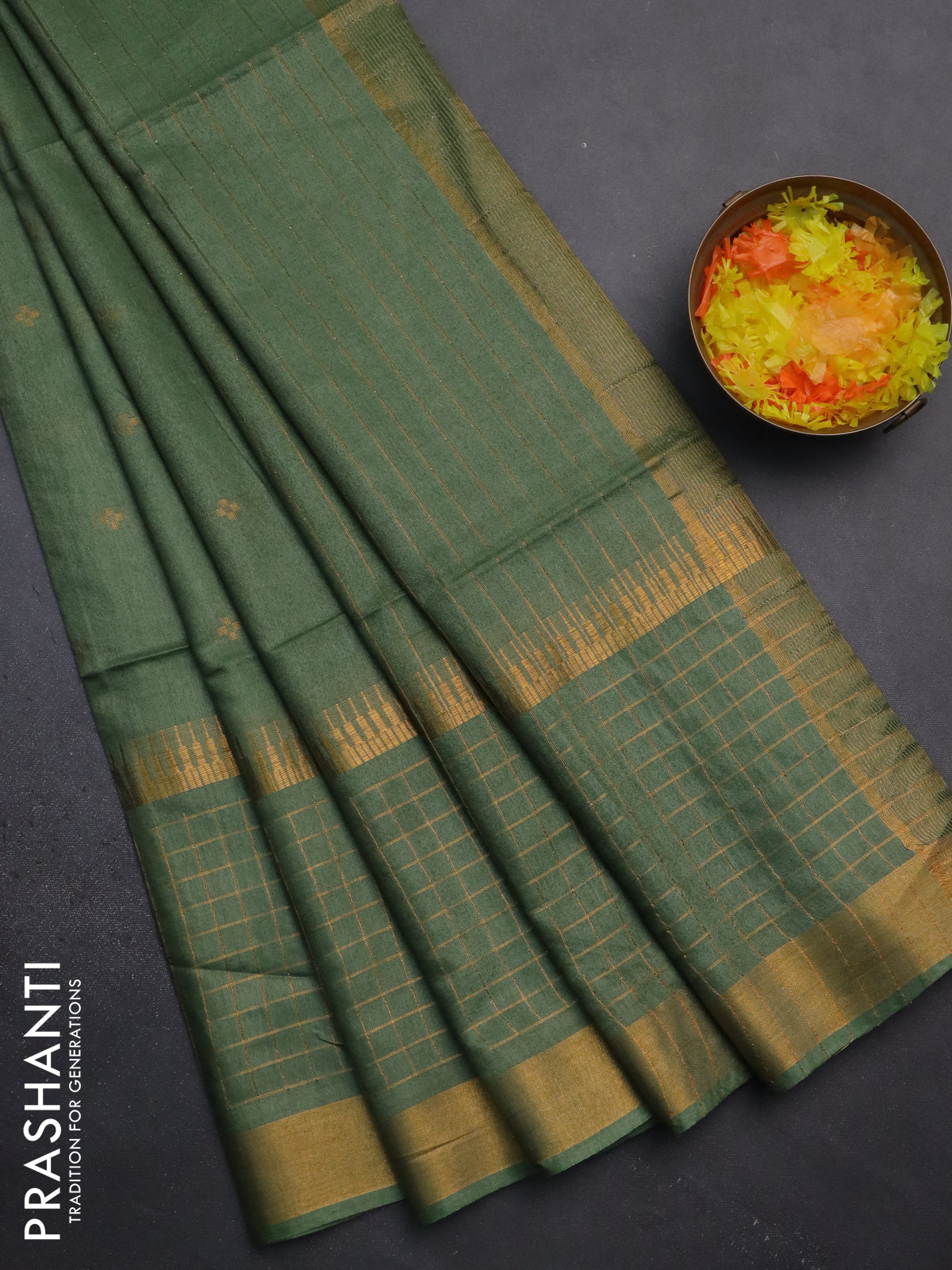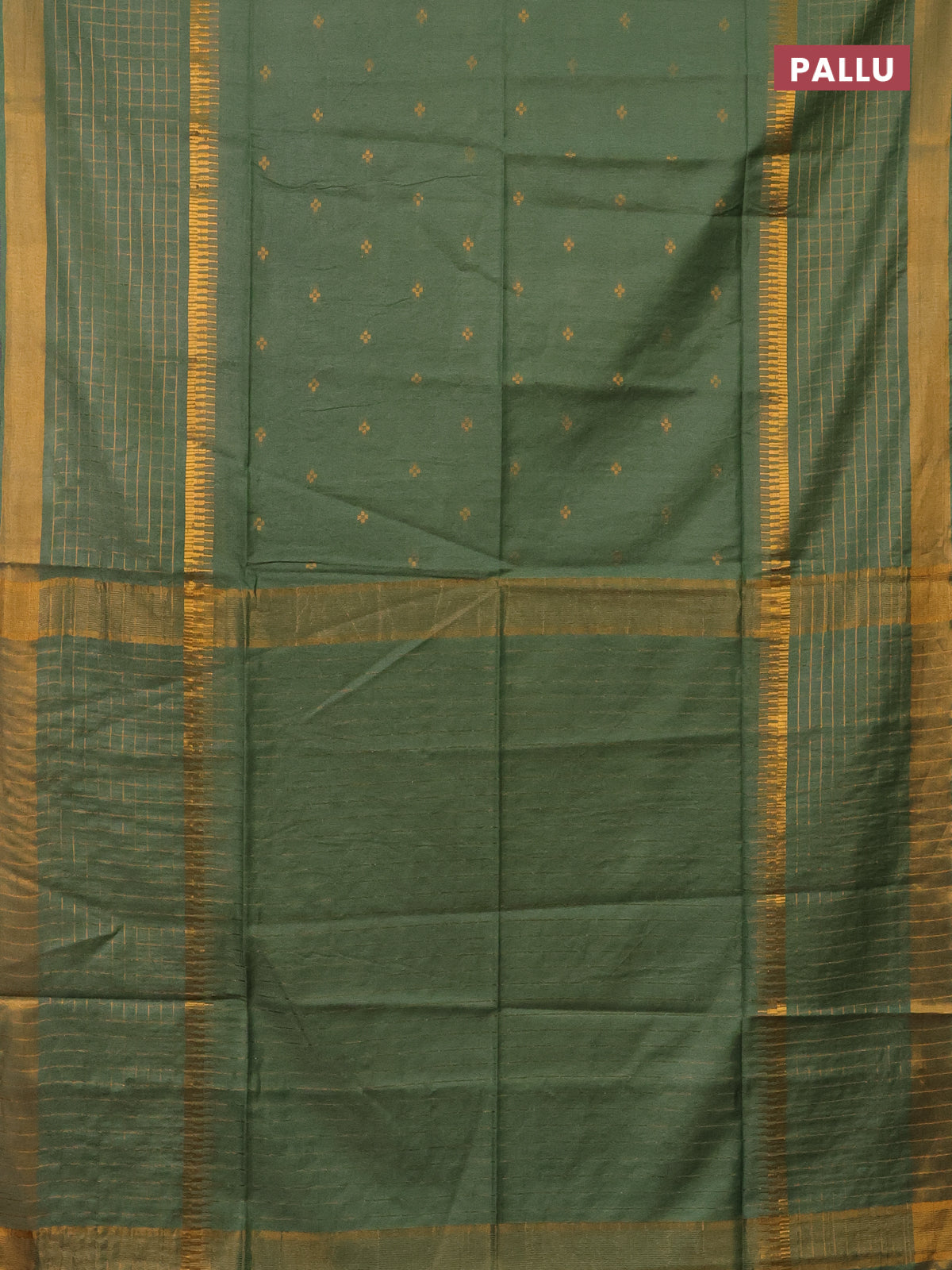Semi bamboo saree pastel green with zari woven buttas and long zari checked border