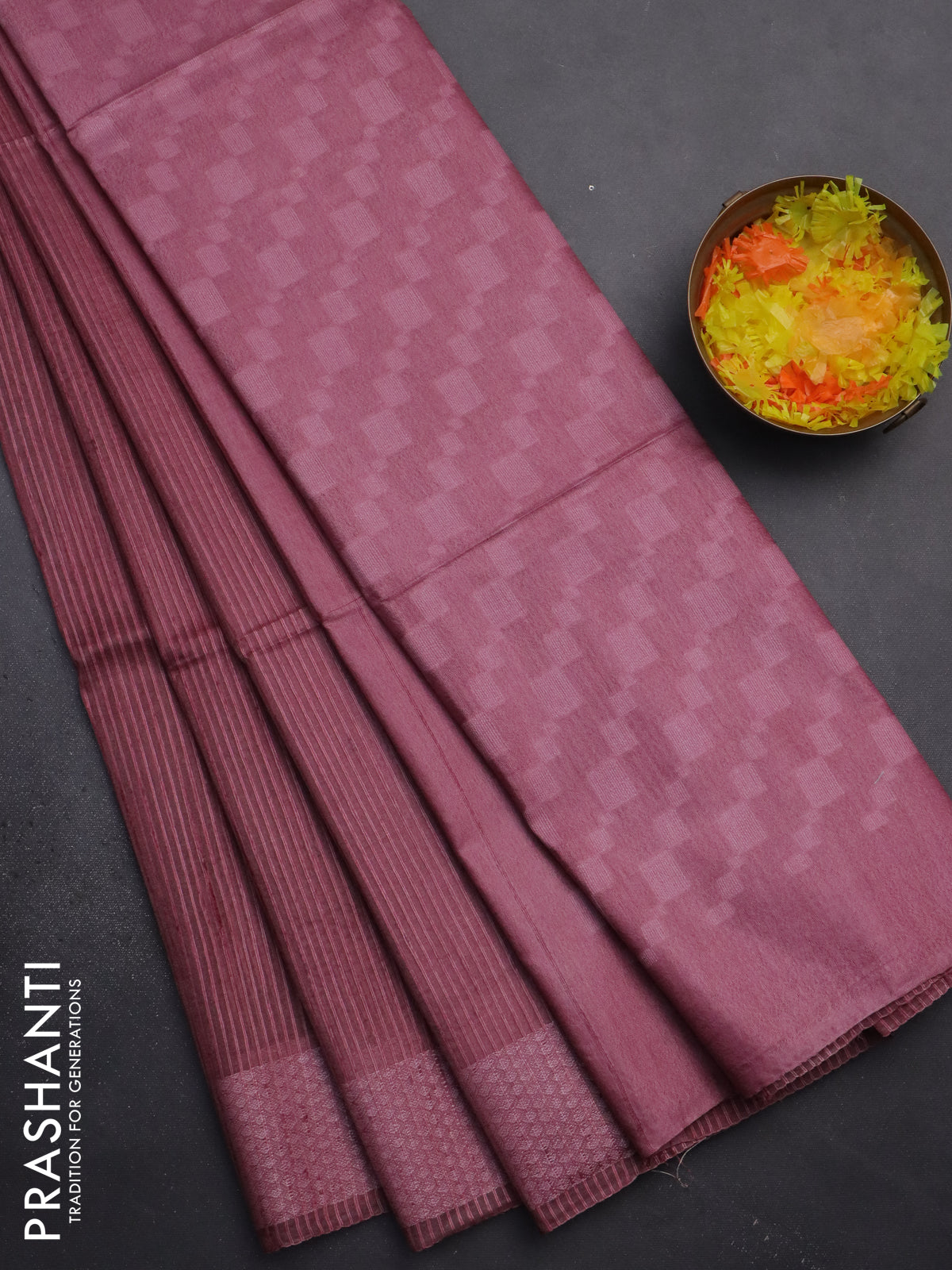 Semi bamboo saree pastel pink with allover stripes pattern and woven border