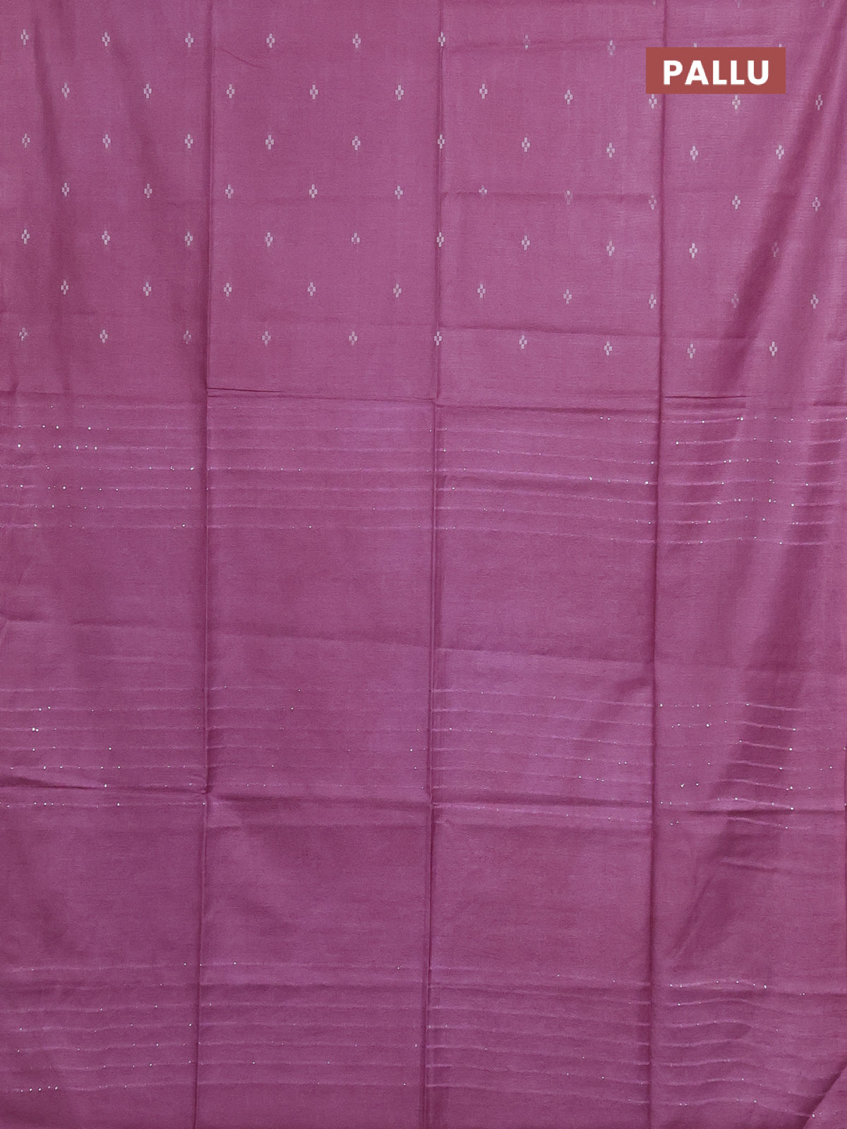 Semi bamboo saree pastel pink with silver zari woven buttas in borderless style