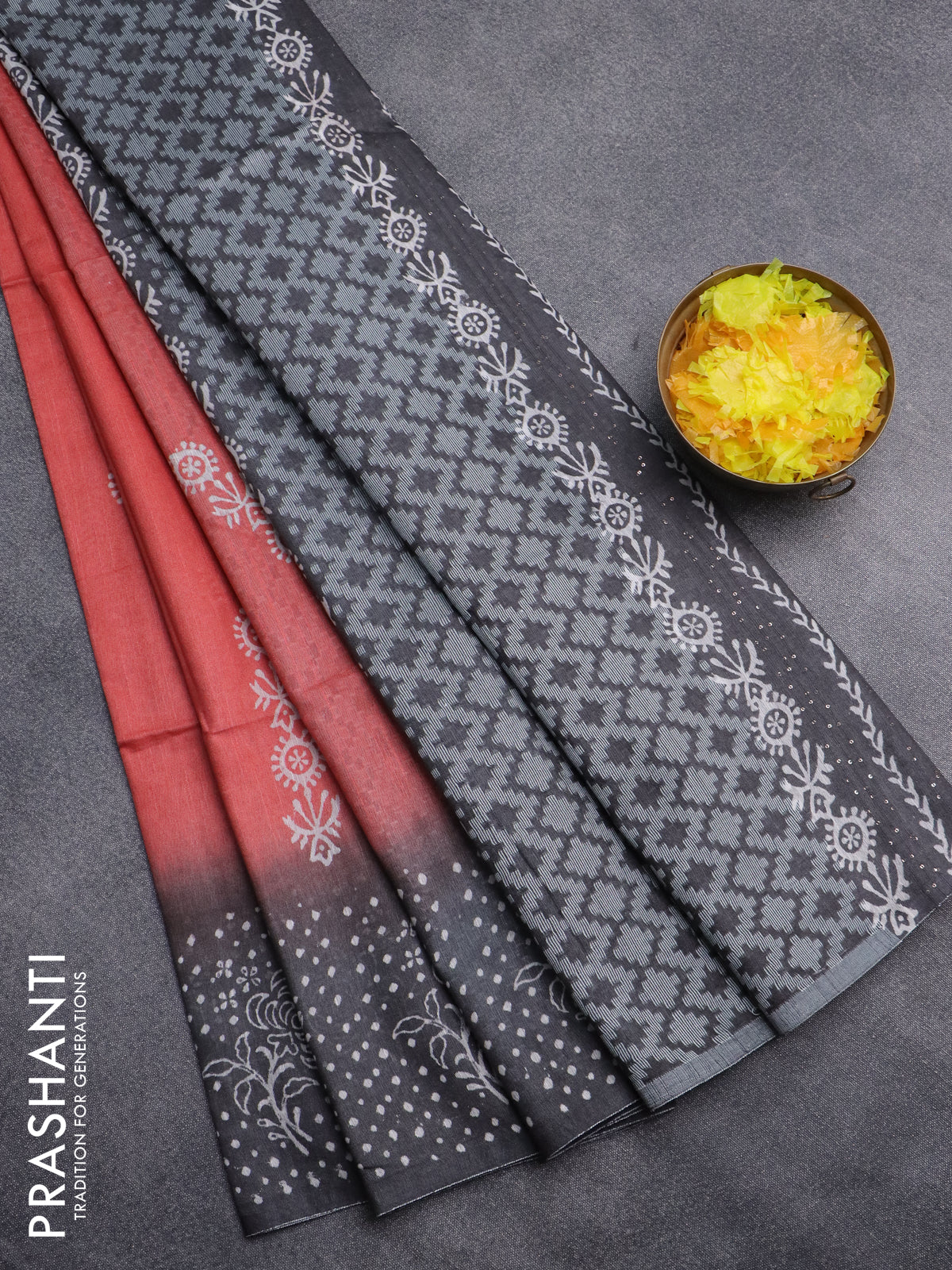 Semi bamboo saree peach pink and elephant grey with allover thread weaves & prints and printed border