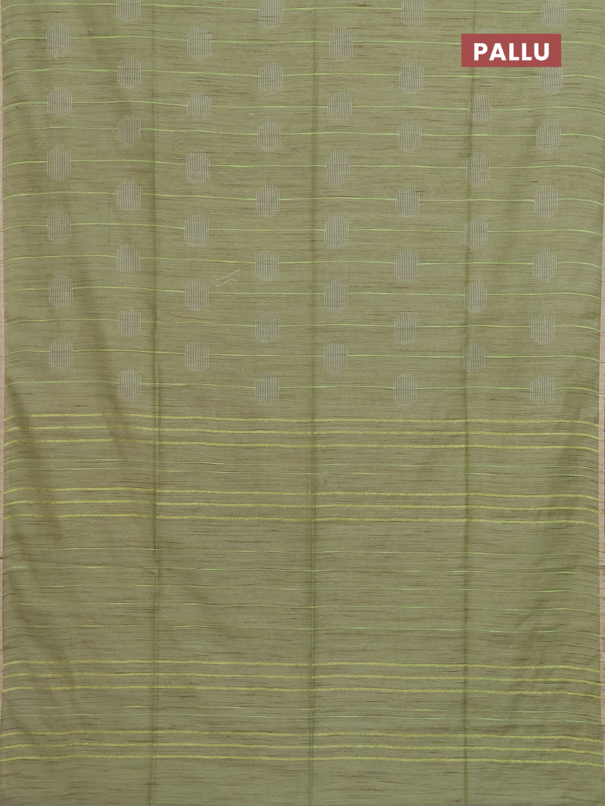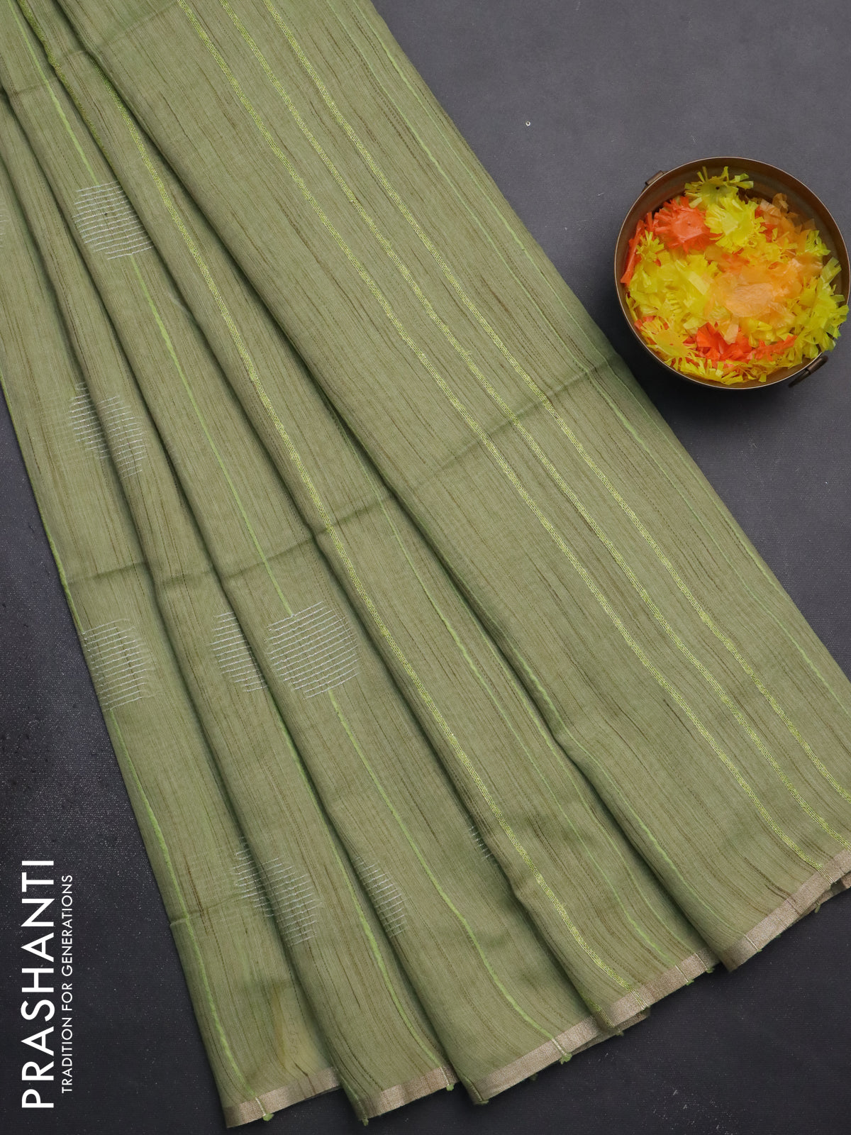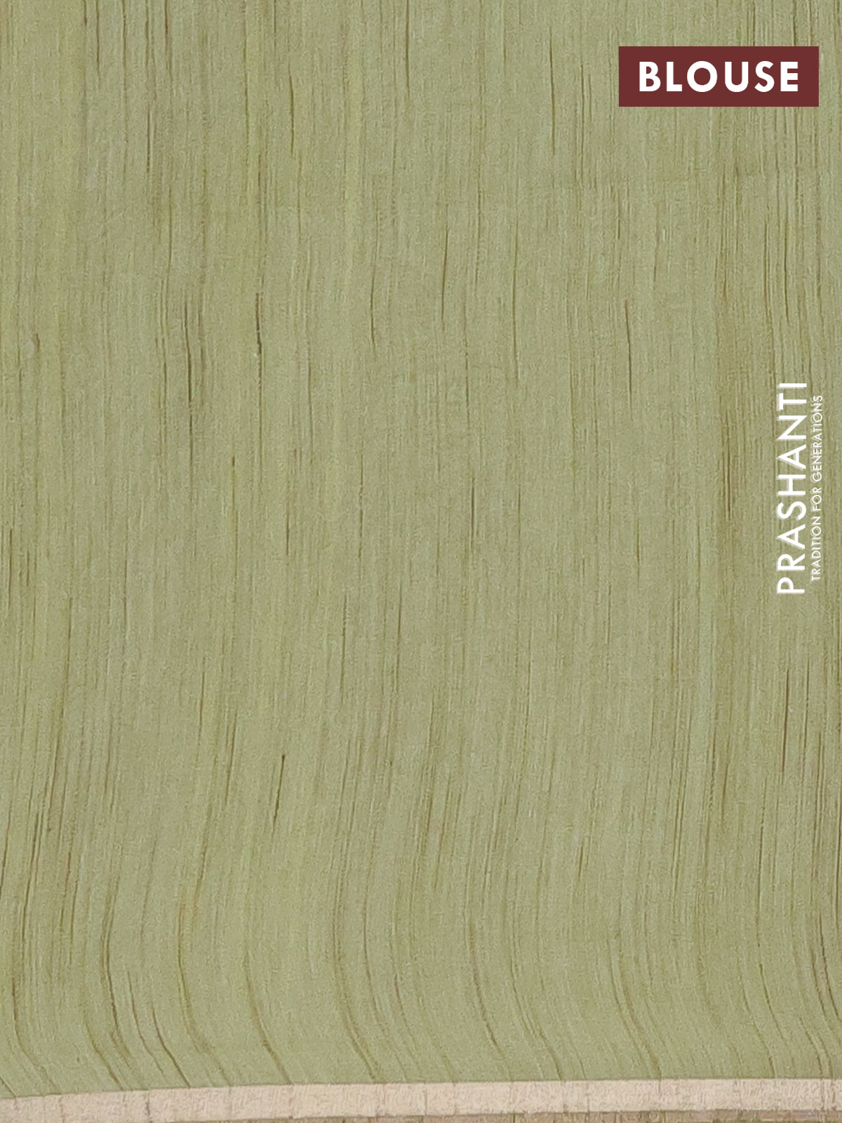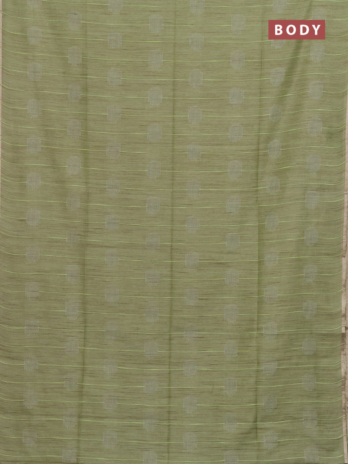 Semi bamboo saree pista green with woven buttas and zari woven piping border