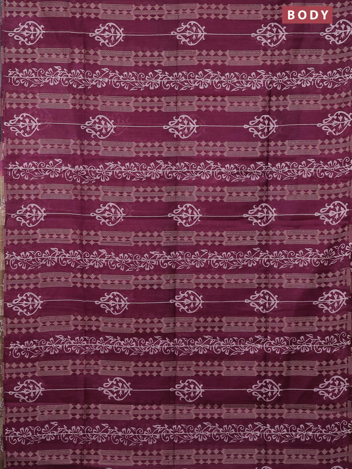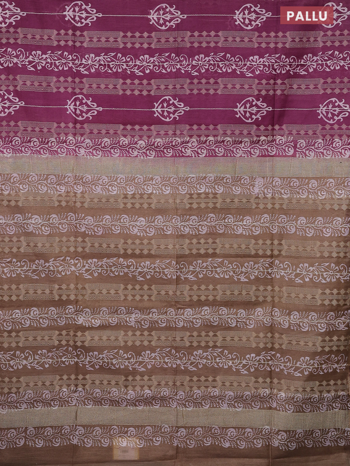 Semi bamboo saree wine shade and dark sandal with allover thread weaves & prints in borderless style