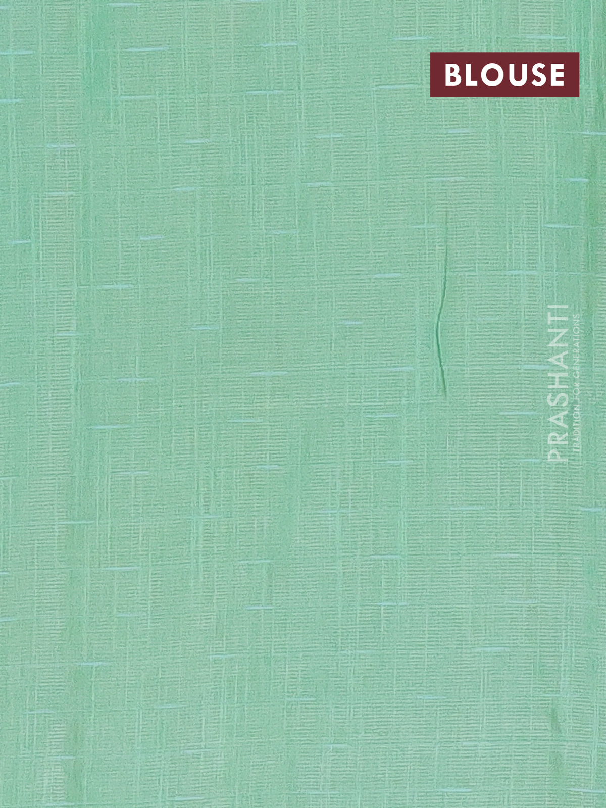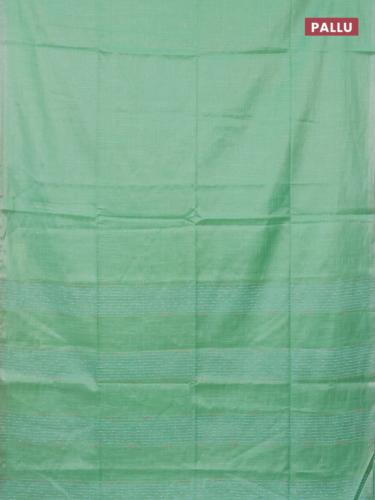 Semi bamboo tissue saree teal green with allover thread weaves in borderless style