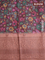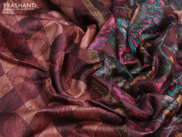 Semi banarasi tussar saree brown and pastel brown with geometric prints & woven buttas and woven border