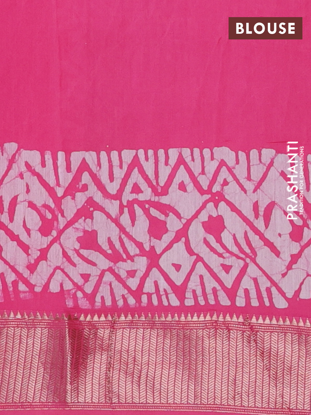 Semi chanderi saree candy pink and off white with barik butta prints and long printed zari border
