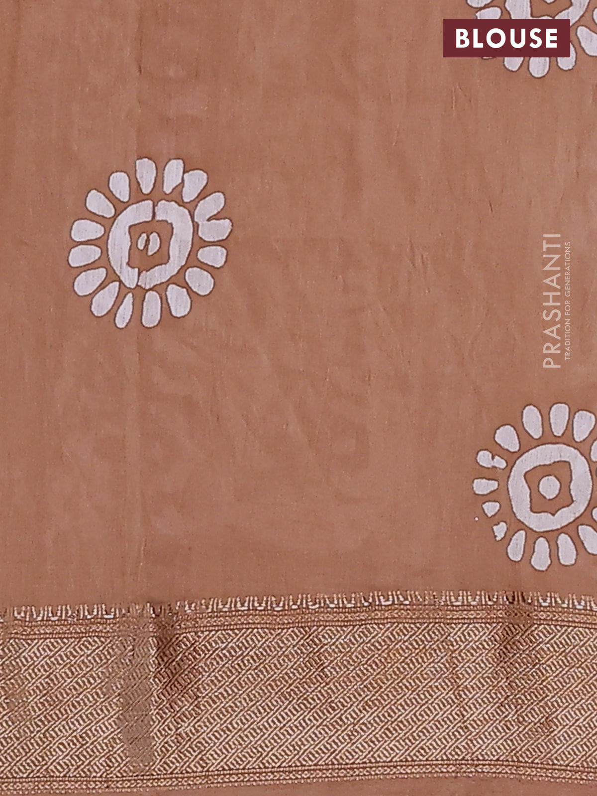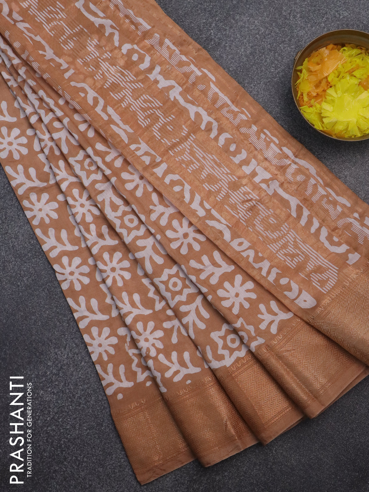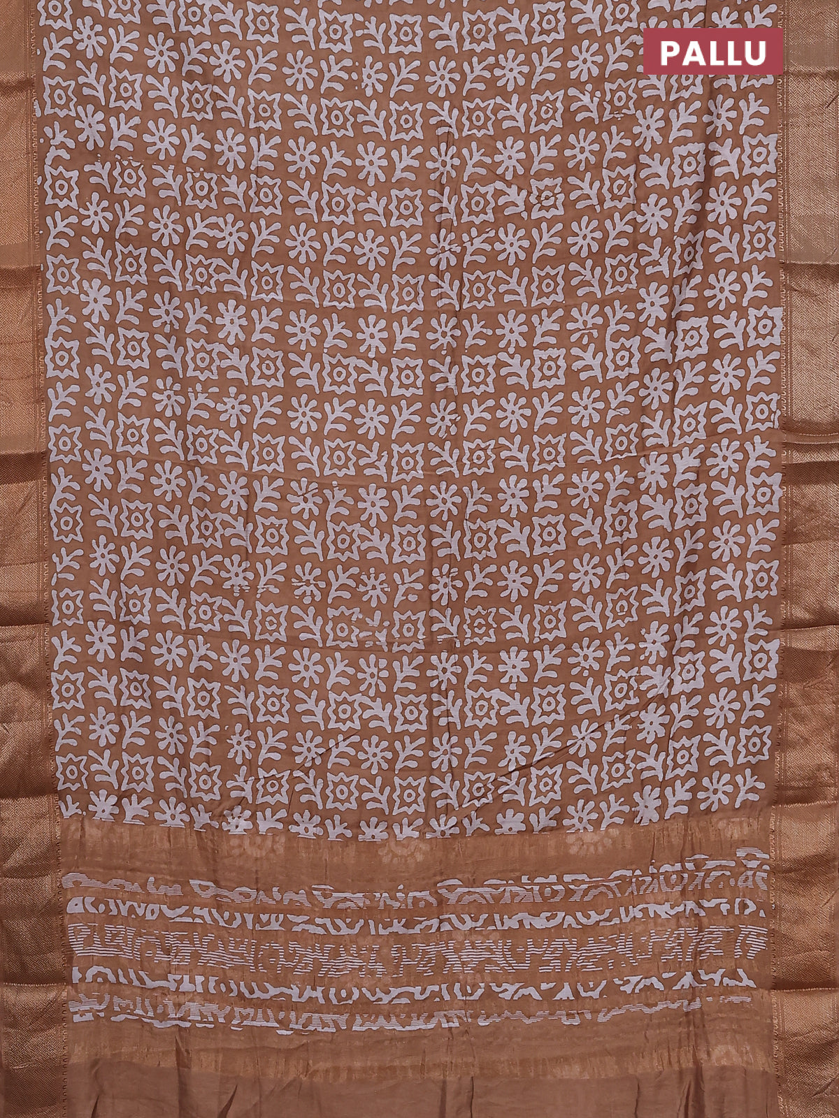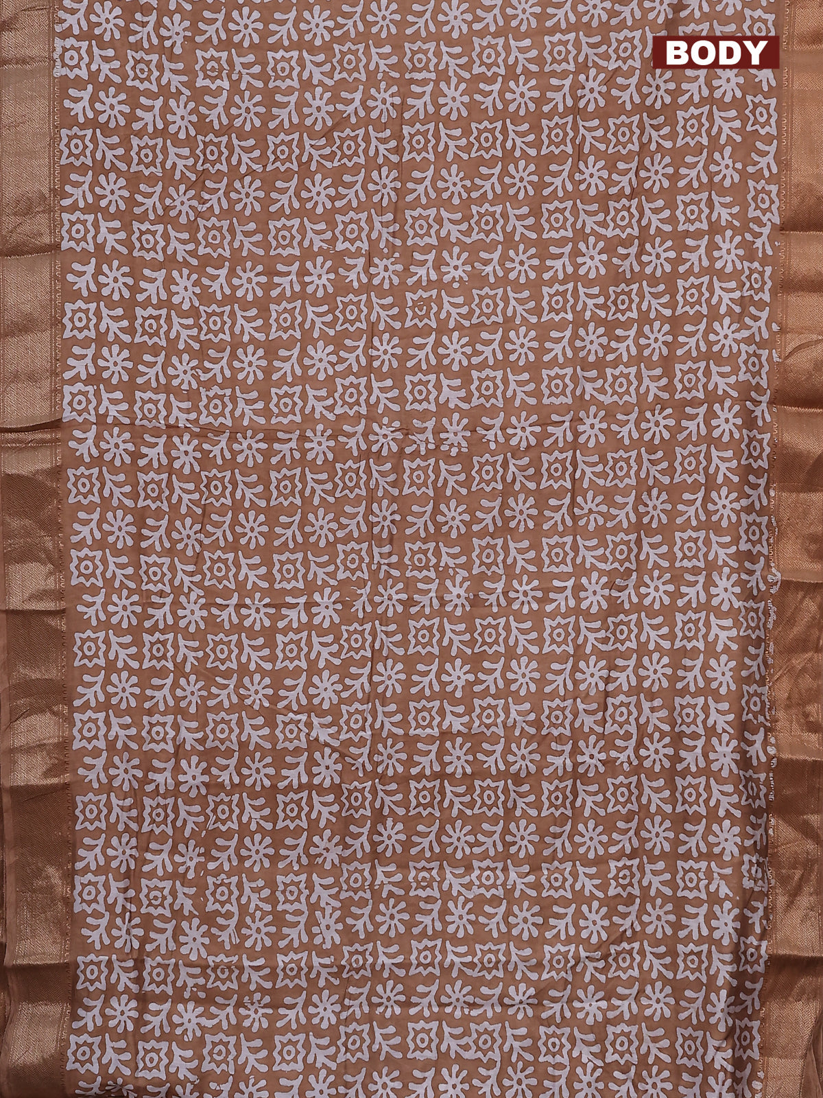 Semi chanderi saree dark sandal and off white with allover batik prints and zari woven border