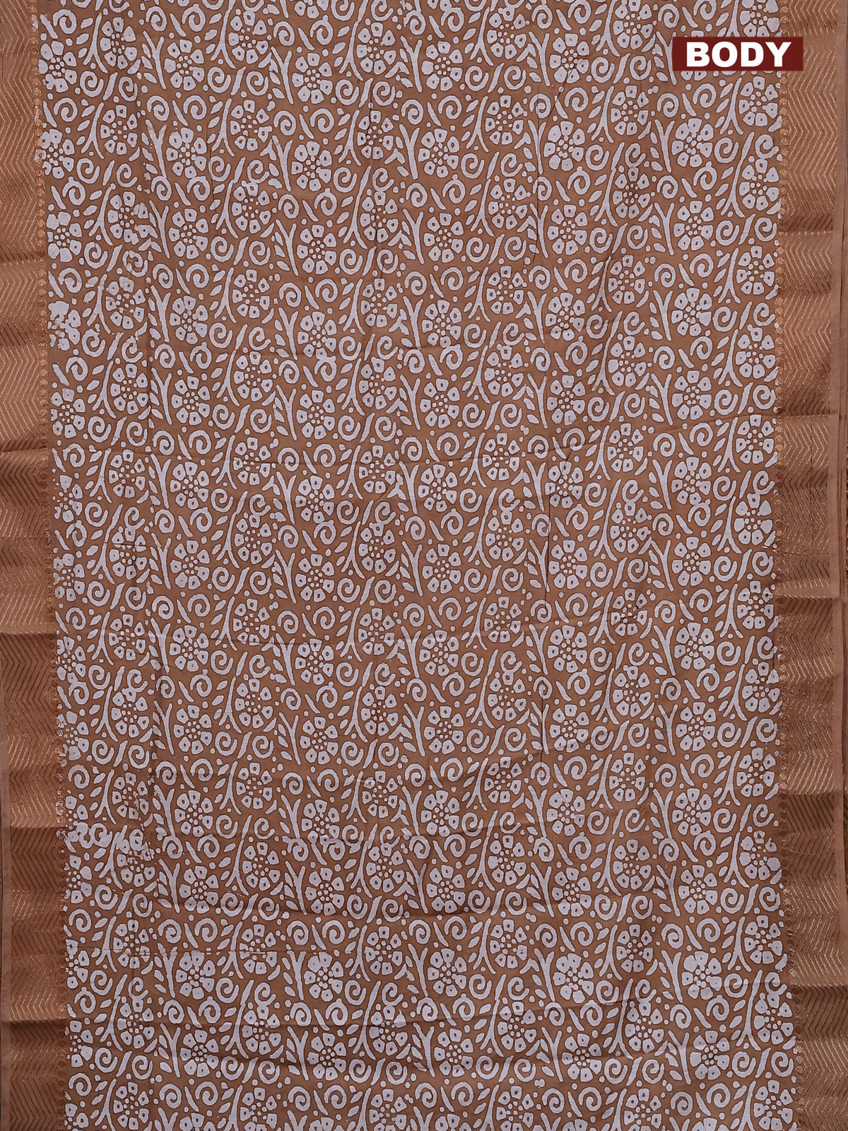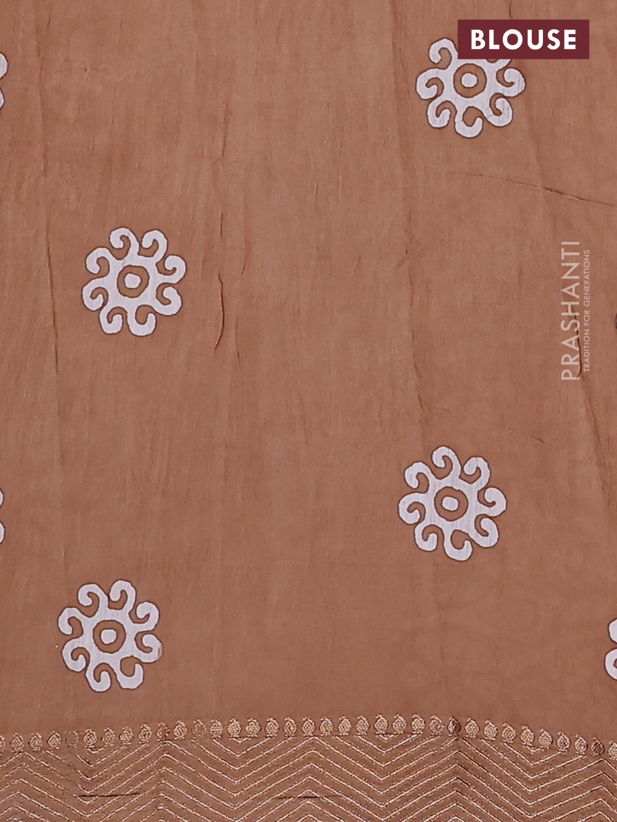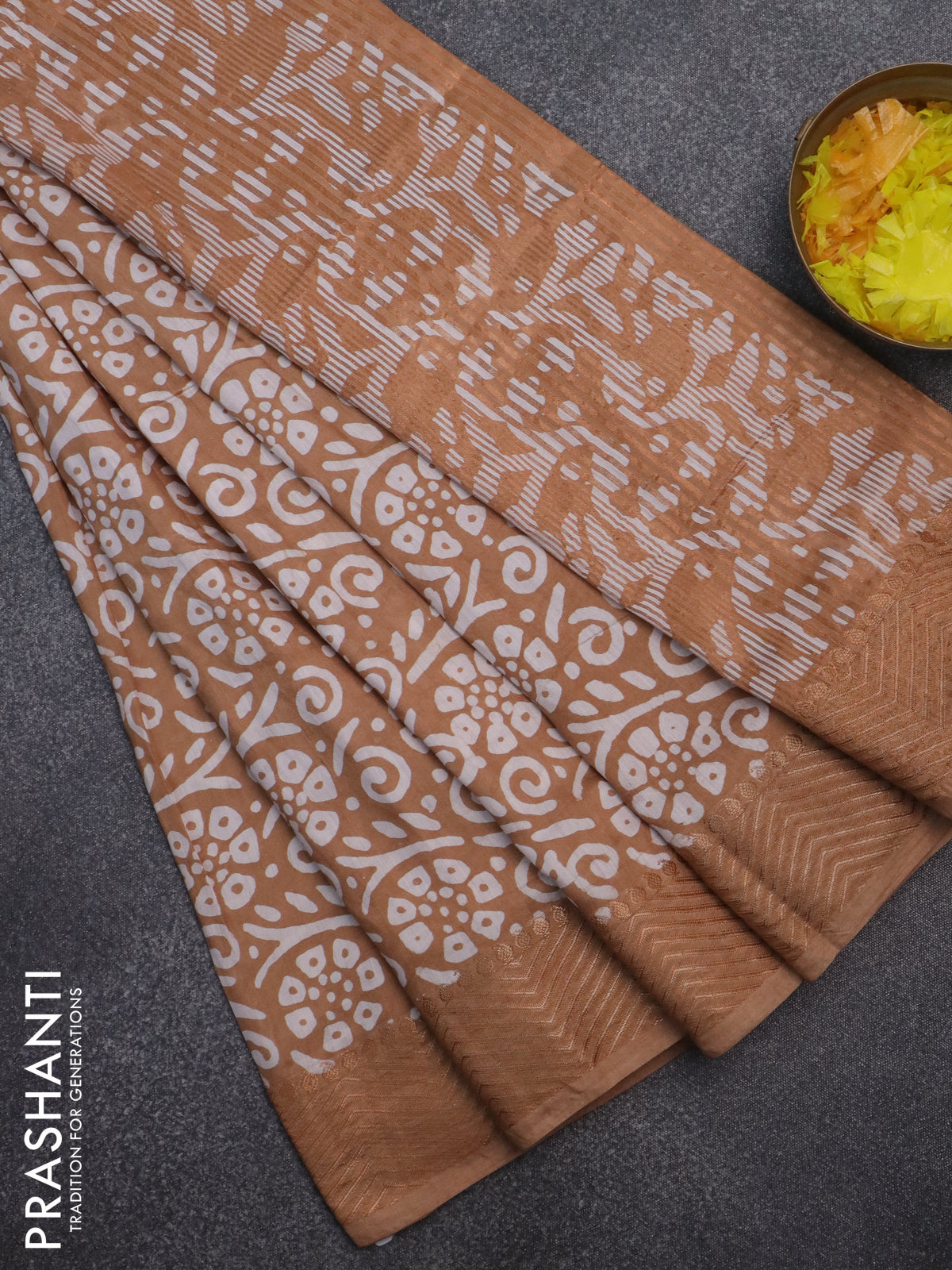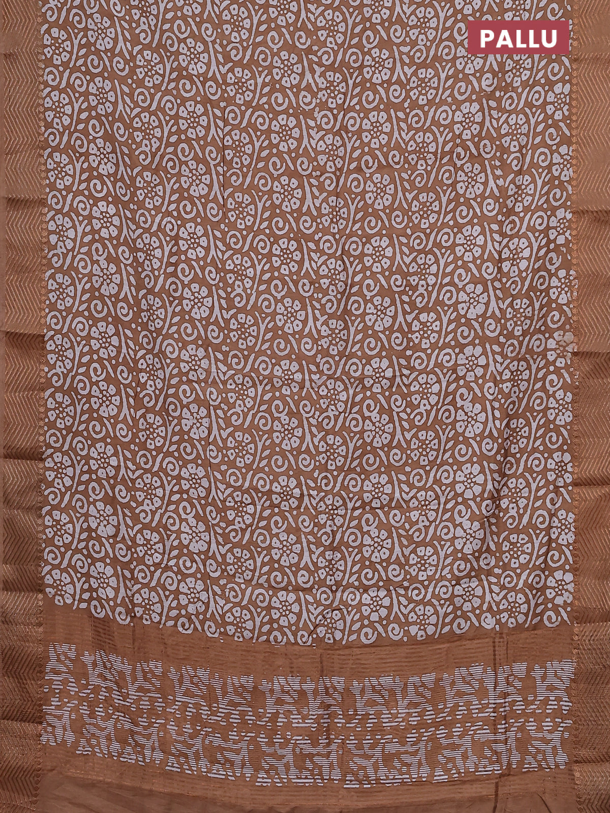 Semi chanderi saree dark sandal and off white with allover batik prints and zari woven border