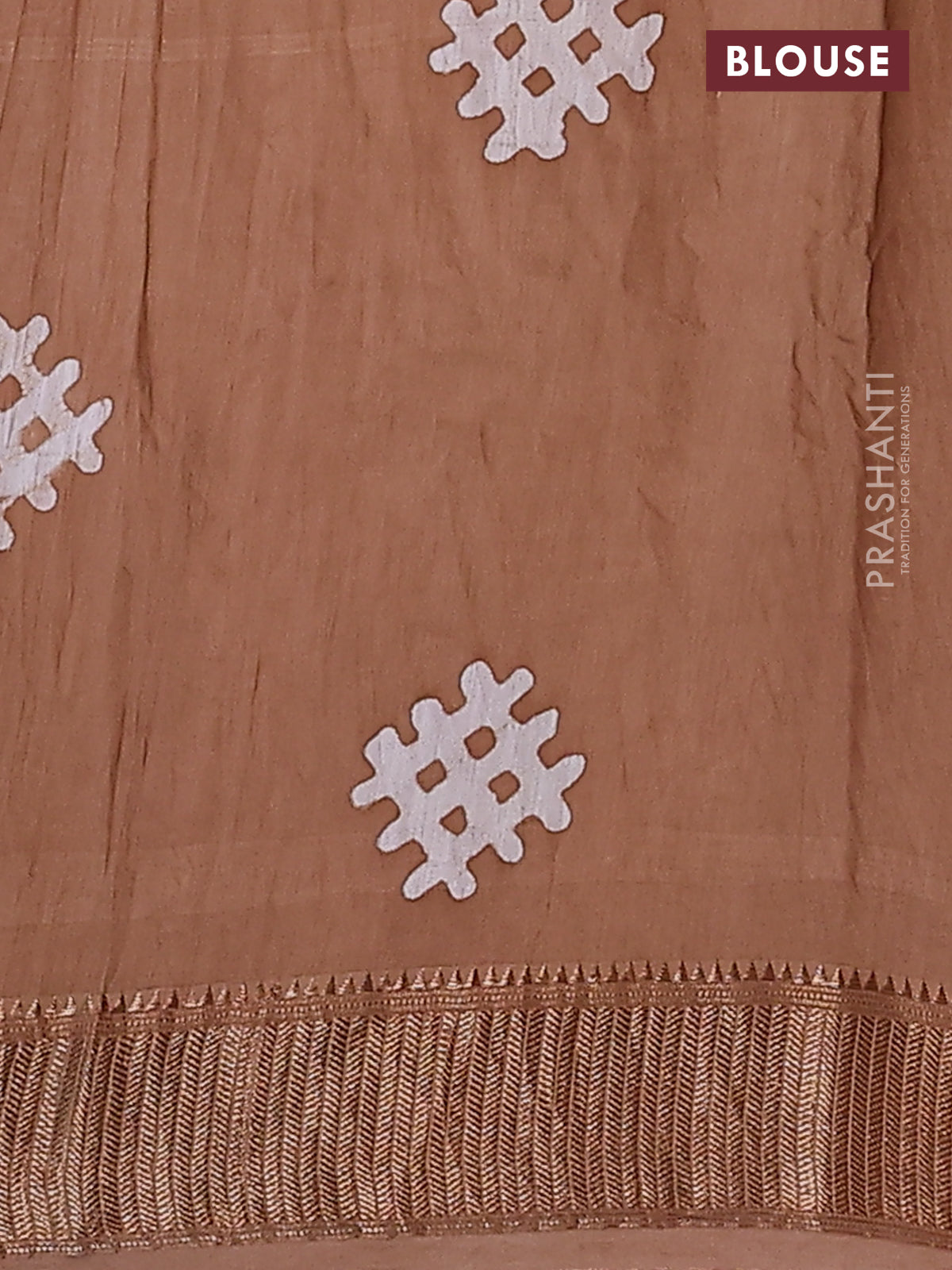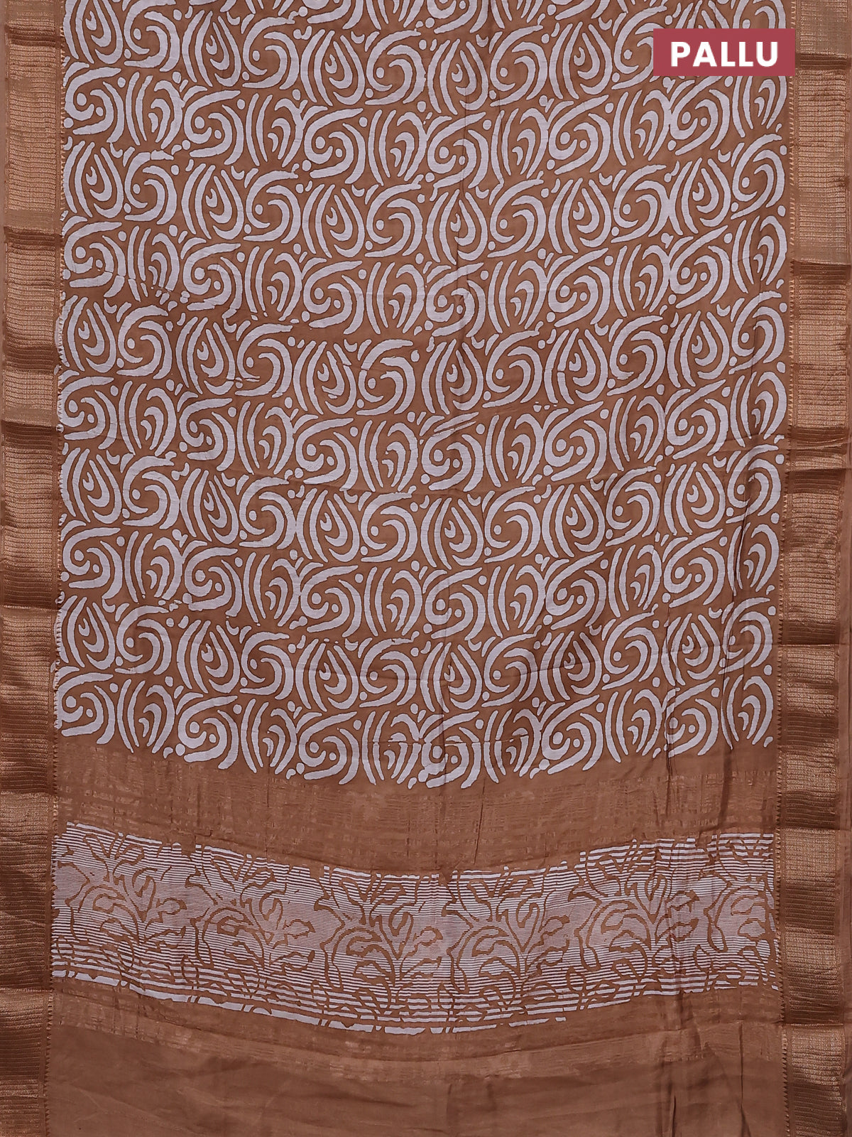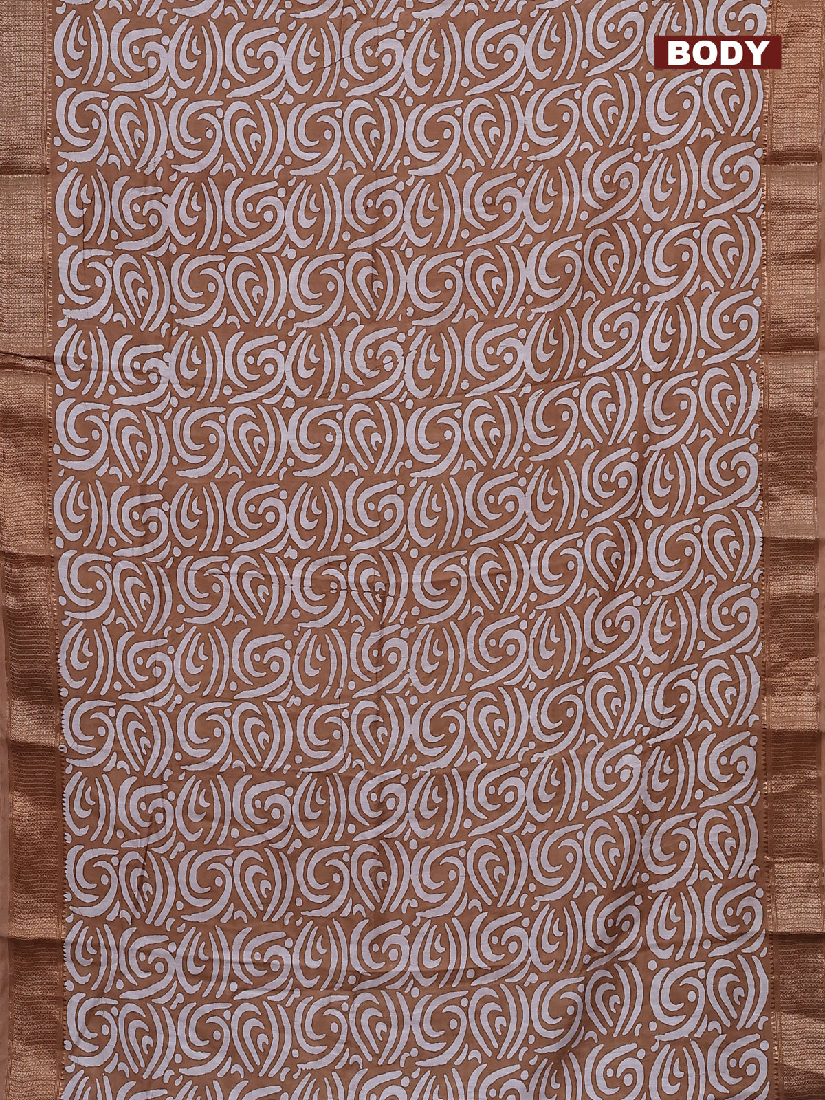 Semi chanderi saree dark sandal and off white with allover batik prints and zari woven border