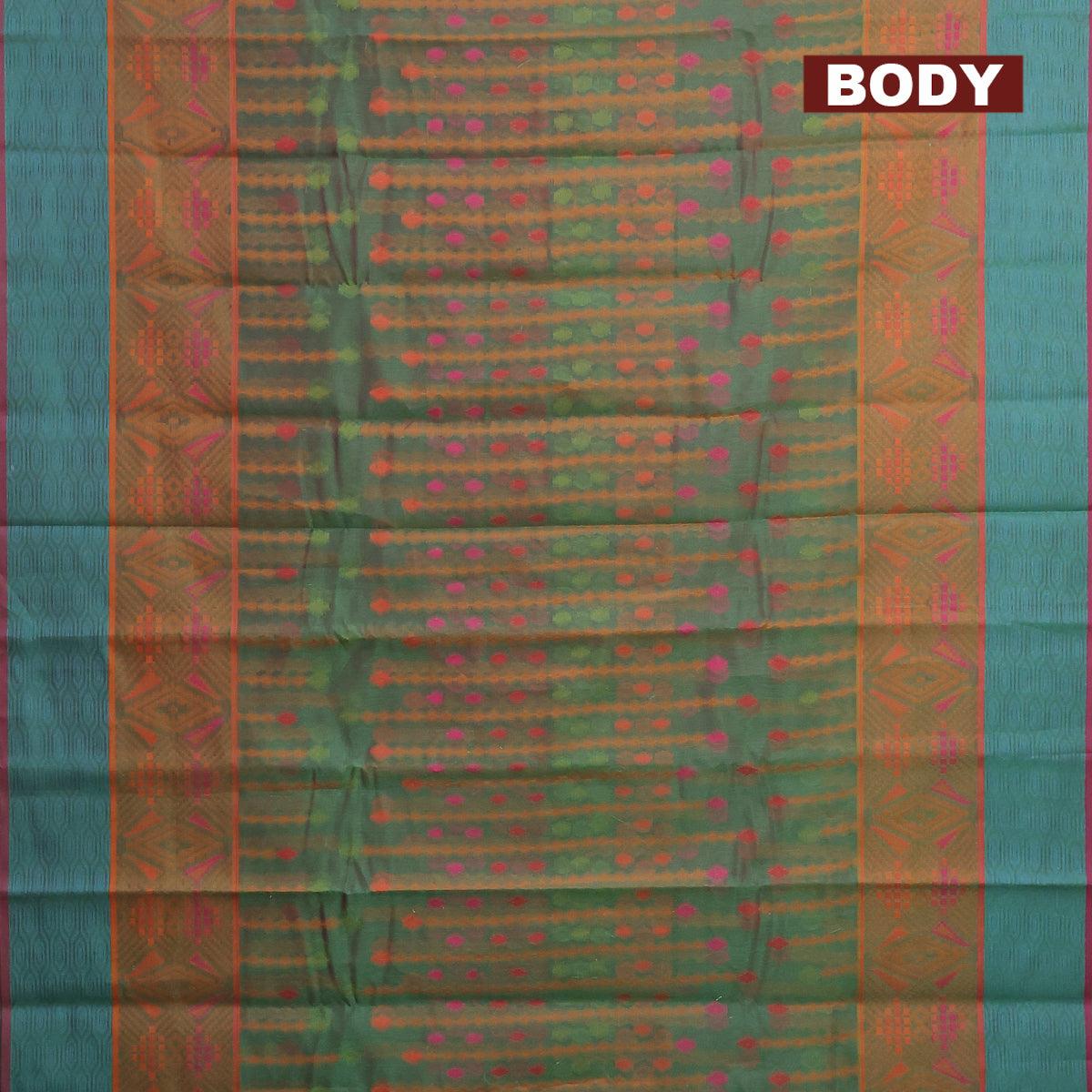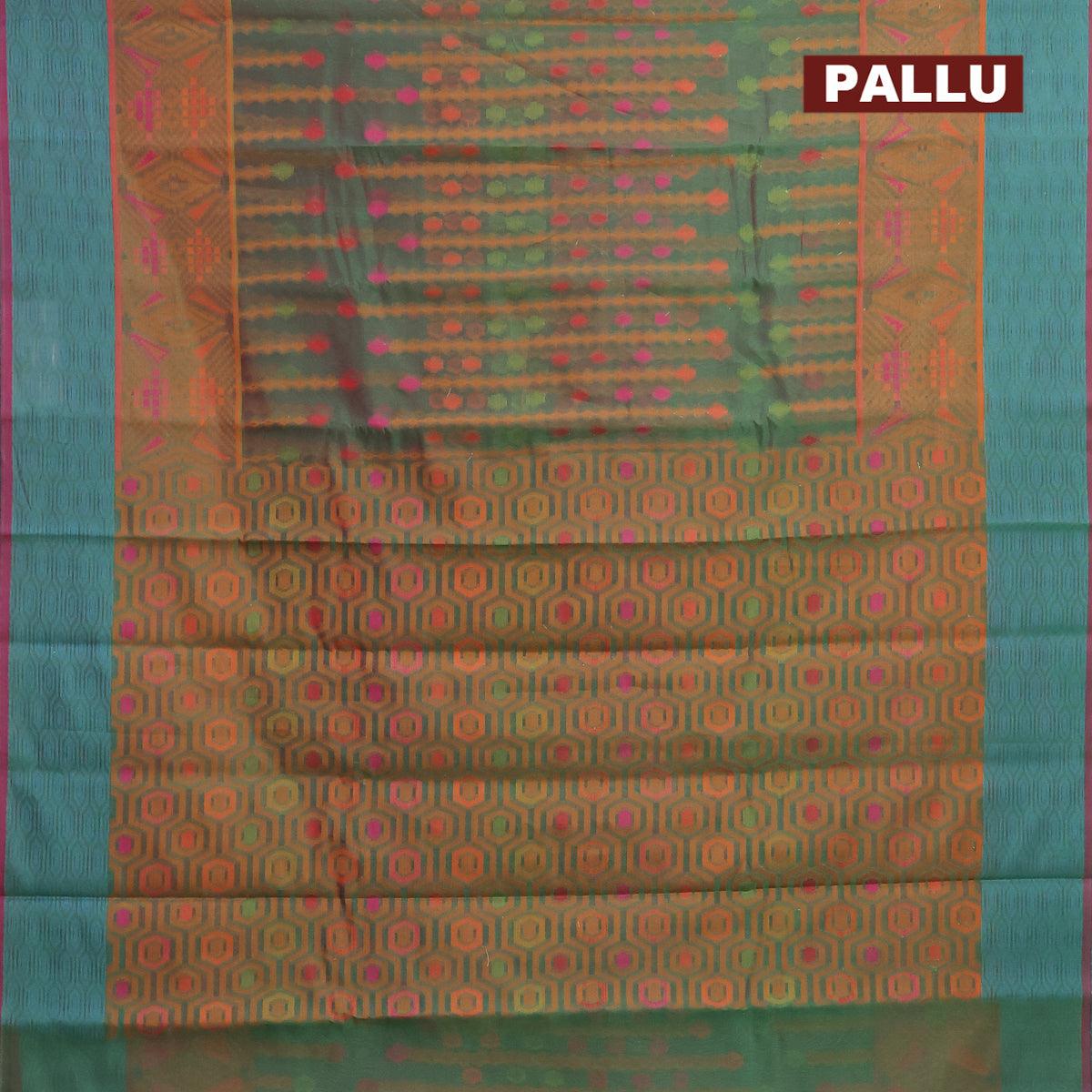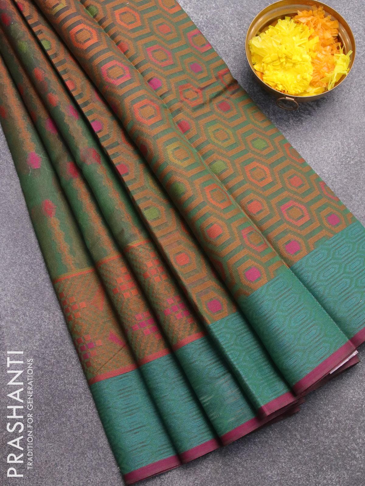 Semi chanderi saree dual shade of green and pink shade with allover thread weaves and woven border