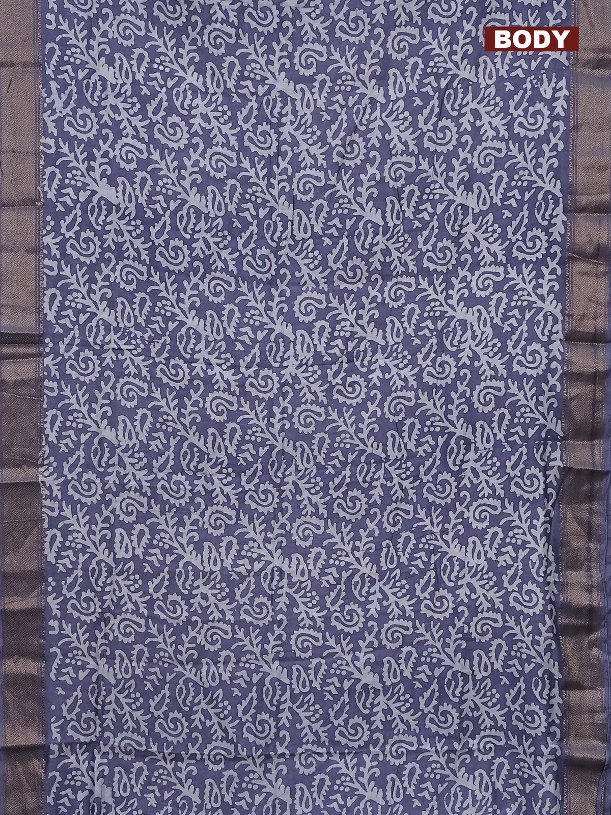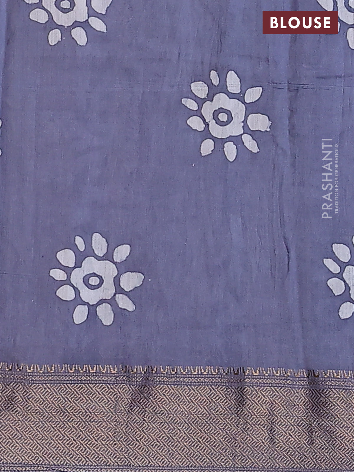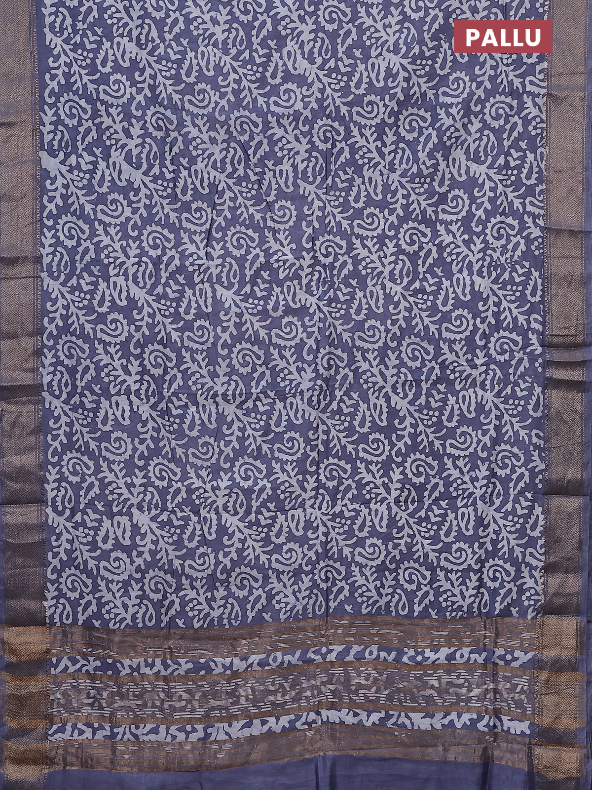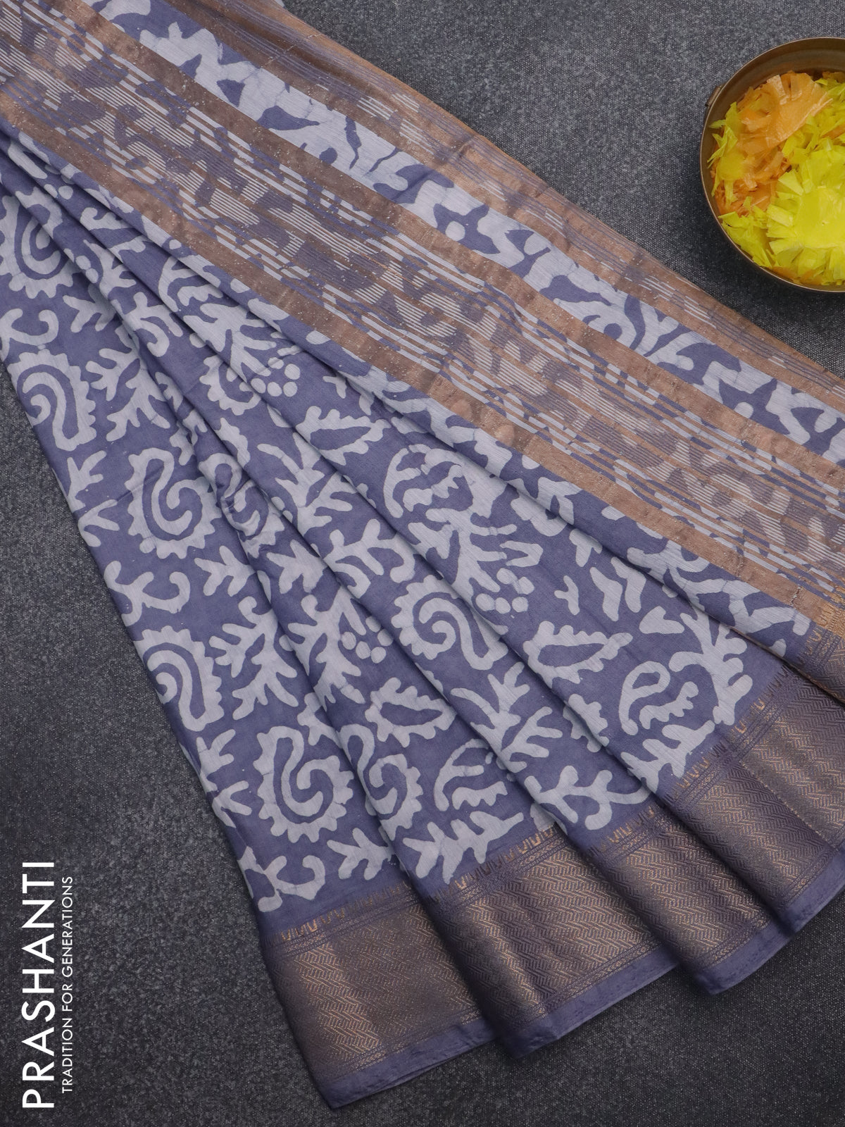 Semi chanderi saree grey and off white with allover batik prints and zari woven border