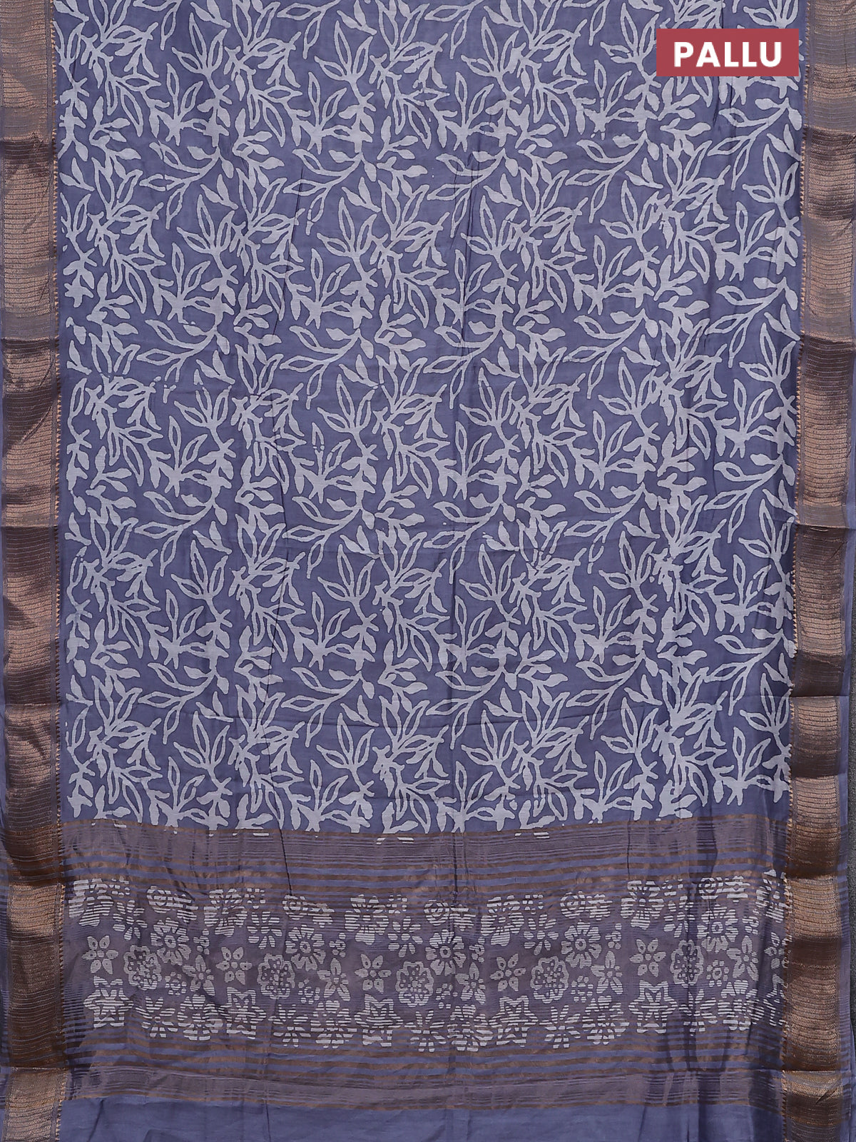 Semi chanderi saree grey and off white with allover batik prints and zari woven border