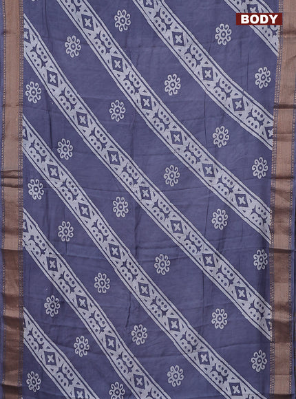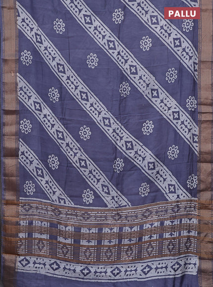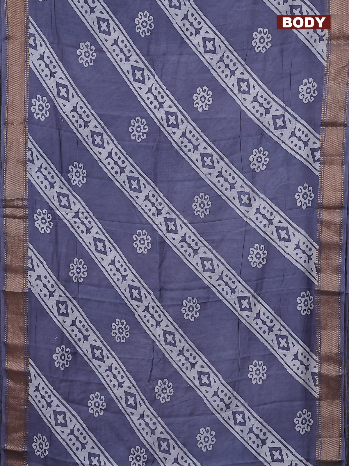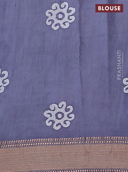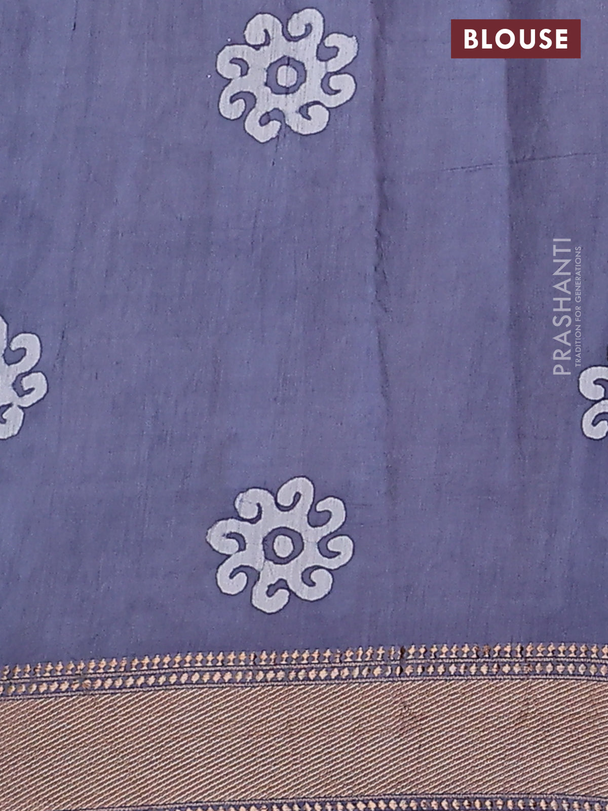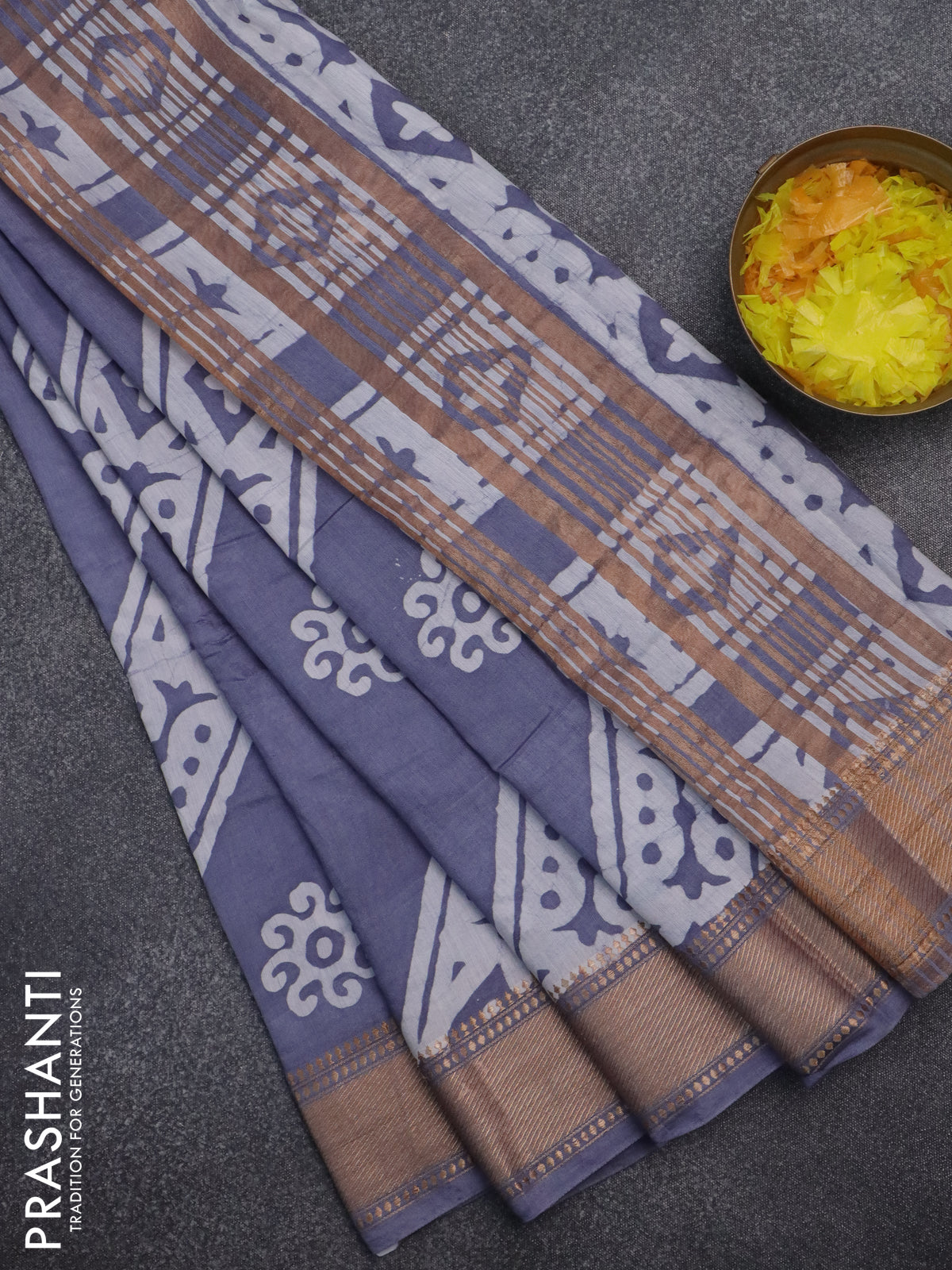 Semi chanderi saree grey and off white with allover batik prints and zari woven border