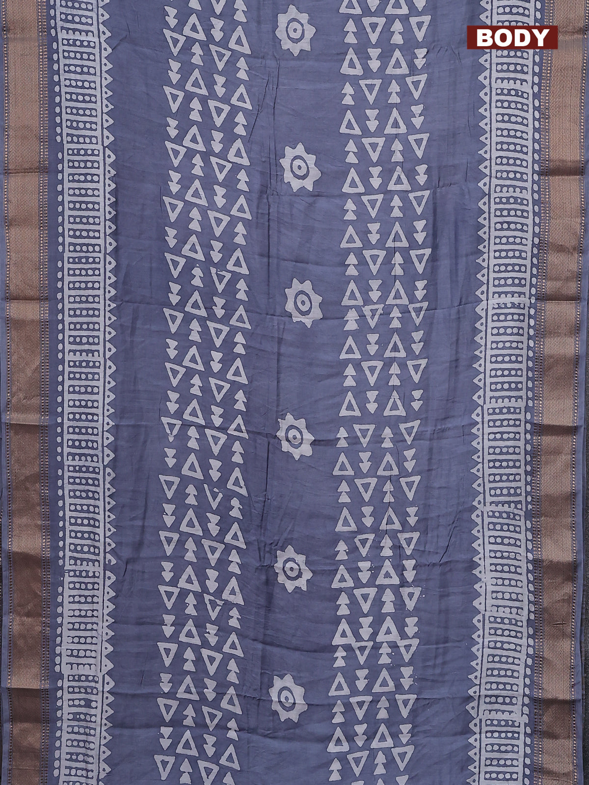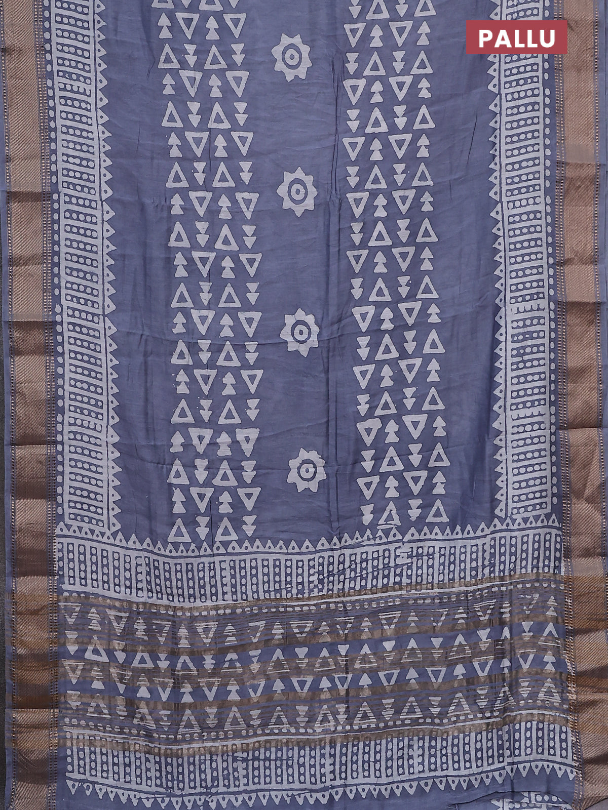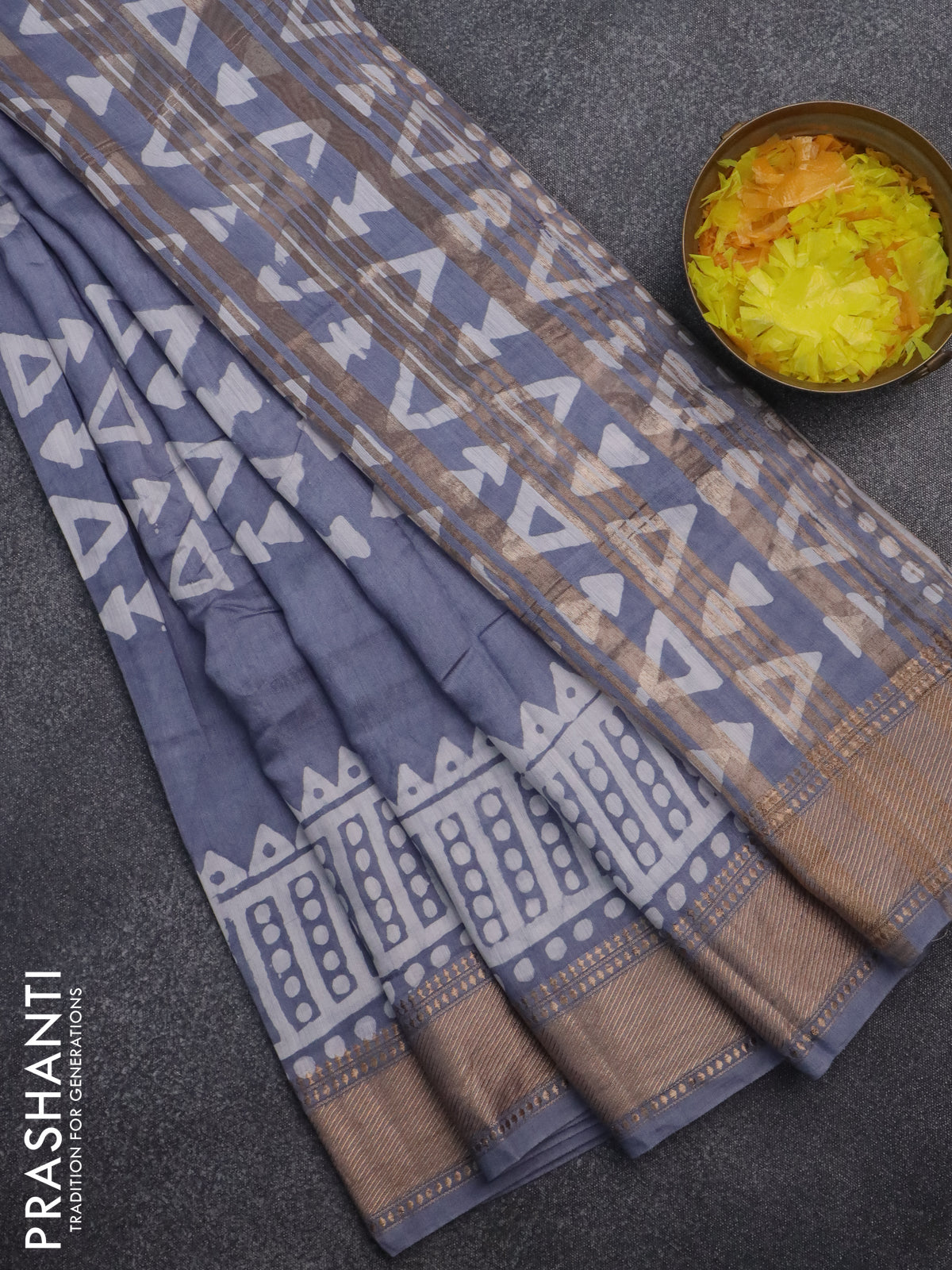 Semi chanderi saree grey and off white with batik prints and zari woven border